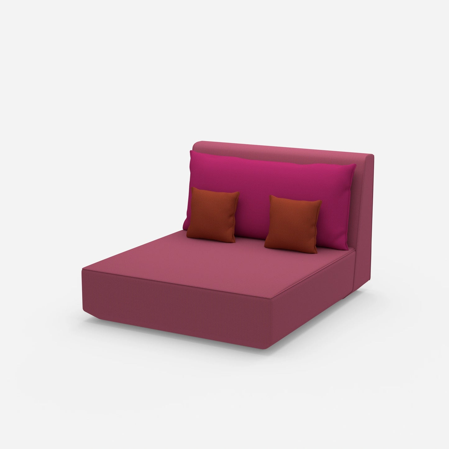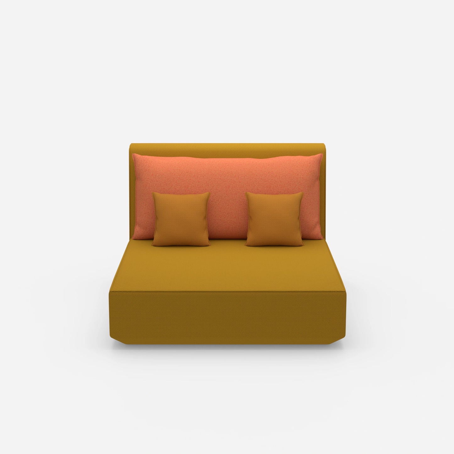 Les couleurs de la double méridienne donnent le ton. Le curry, le denim et le pamplemousse confèrent à chaque pièce une note particulière. D'autres couleurs comme l'ocre et le magenta sont également disponibles. Ainsi, la méridienne s'adapte sans peine à tout concept de couleurs et s'harmonise avec différents styles d'aménagement.
