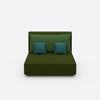 Intérieur d'un Showrooms lumineux avec cheminée et canapés modulaires Cubit dans différentes nuances de vert