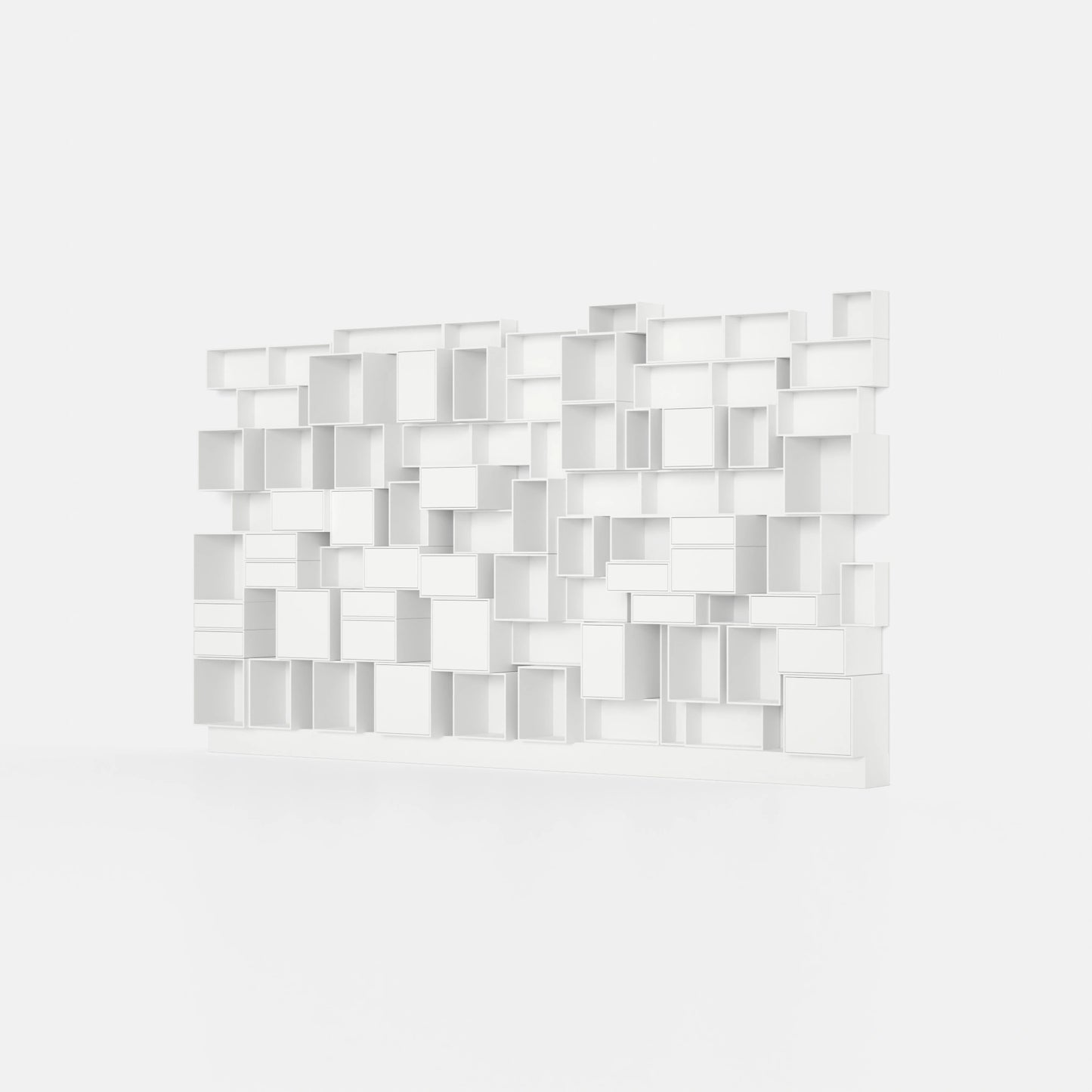 L'Étagère murale RK1006 impressionne avec ses 86 modules pour un maximum de rangement. Sur une surface de 448 cm de large et 248 cm de haut, elle permet de ranger des livres, de la décoration et bien plus encore. Avec une profondeur de 37 cm, elle s'intègre discrètement dans les pièces.