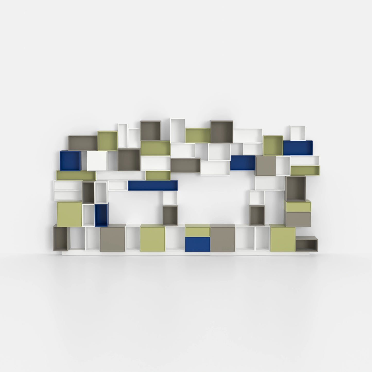 L'Étagère murale RK1091 allie ordre et style dans les grands espaces. Avec une profondeur de 37 cm, une hauteur de 220 cm et une largeur de 428 cm, elle crée un espace de rangement impressionnant grâce à ses 65 modules. Vous choisissez parmi les couleurs blanc, gris fange Light, pistache et bleu atlantique. Chaque couleur confère à votre pièce une ambiance particulière.