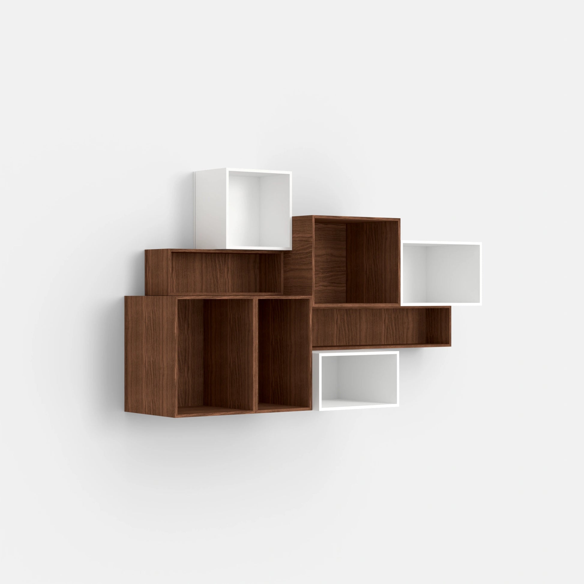 L'étagère suspendue RK011 offre un design intemporel et une fonctionnalité pratique. Avec une largeur de 136 cm, une hauteur de 84 cm et une profondeur de 37 cm, elle est idéale pour diverses configurations de pièces. Ses huit modules offrent beaucoup de place pour une présentation et un rangement élégants. La combinaison du bois de noyer et du blanc crée des contrastes impressionnants dans les espaces de vie ou de travail.