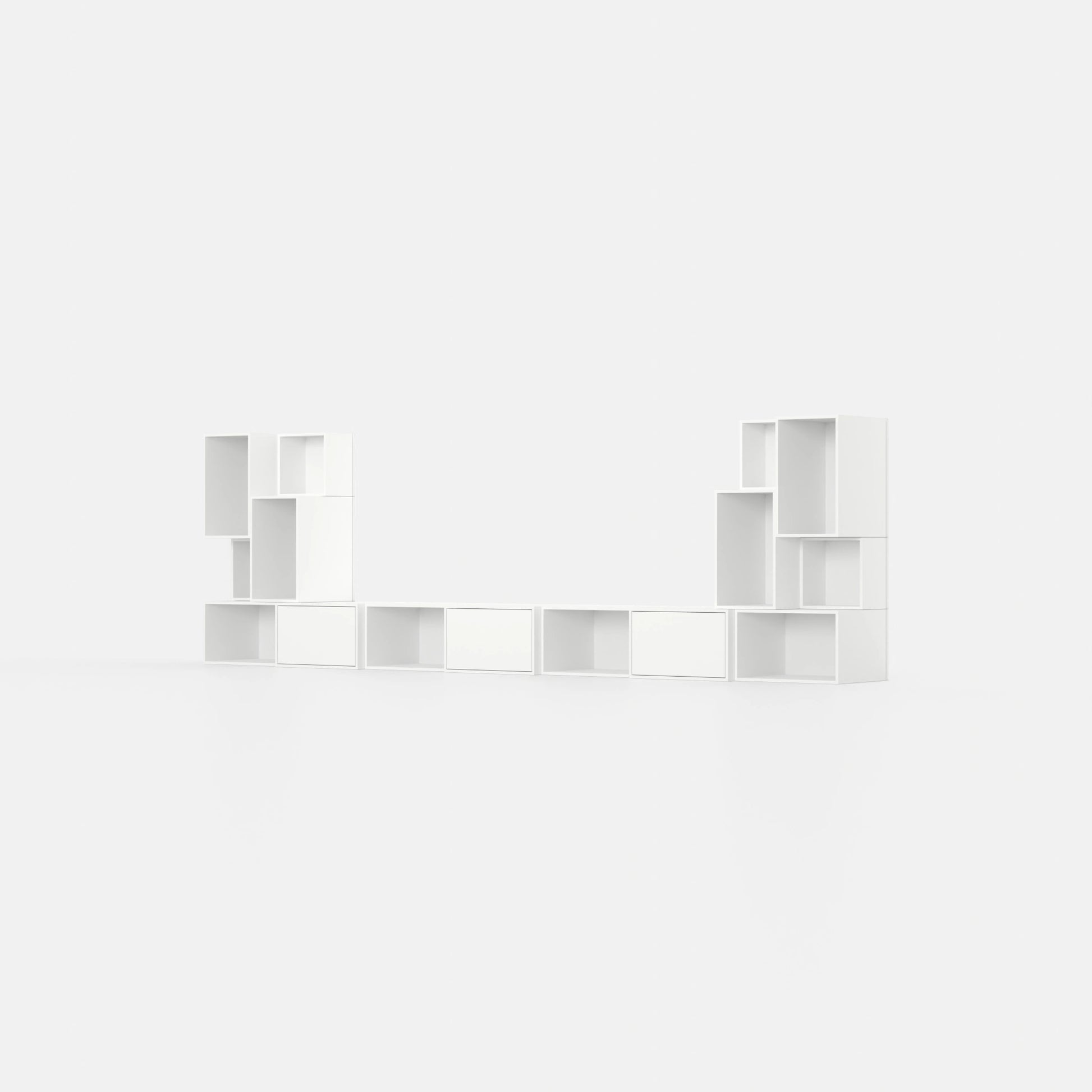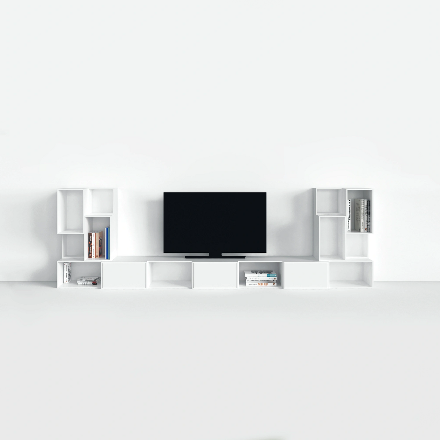 L'Étagère pour TV RK121 allie élégance et fonctionnalité. Avec des dimensions de 280 cm de large, 37 cm de profondeur et 88 cm de hauteur, elle offre 15 modules pour vos appareils de divertissement. Vous avez besoin de plus d'ordre ? Alors cette étagère à tout faire est idéale.