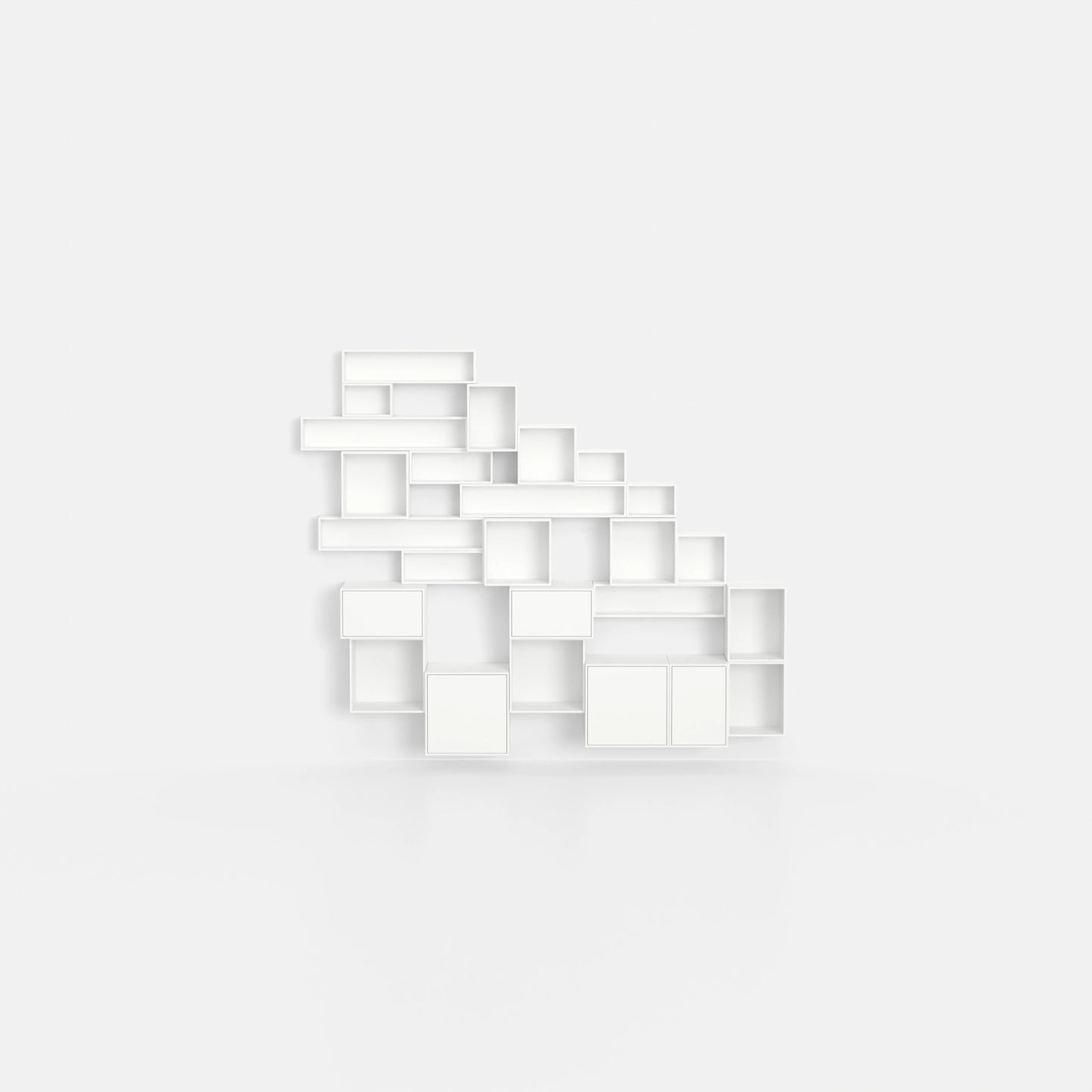 25 modules permettent une utilisation variée. Stockez des livres, montrez des décorations ou conservez des objets du quotidien à portée de main. La structure flexible utilise au mieux l'espace. Le blanc clair permet de mettre en valeur les accents personnels.