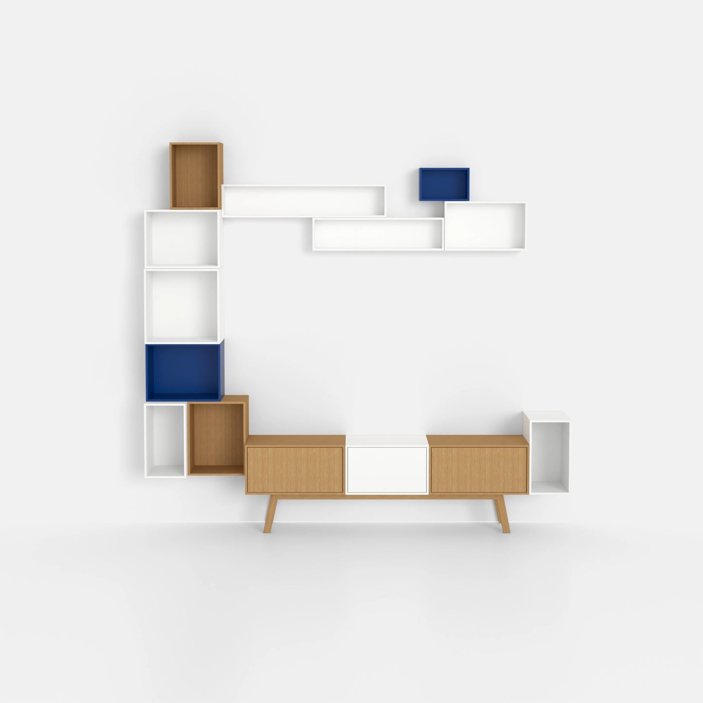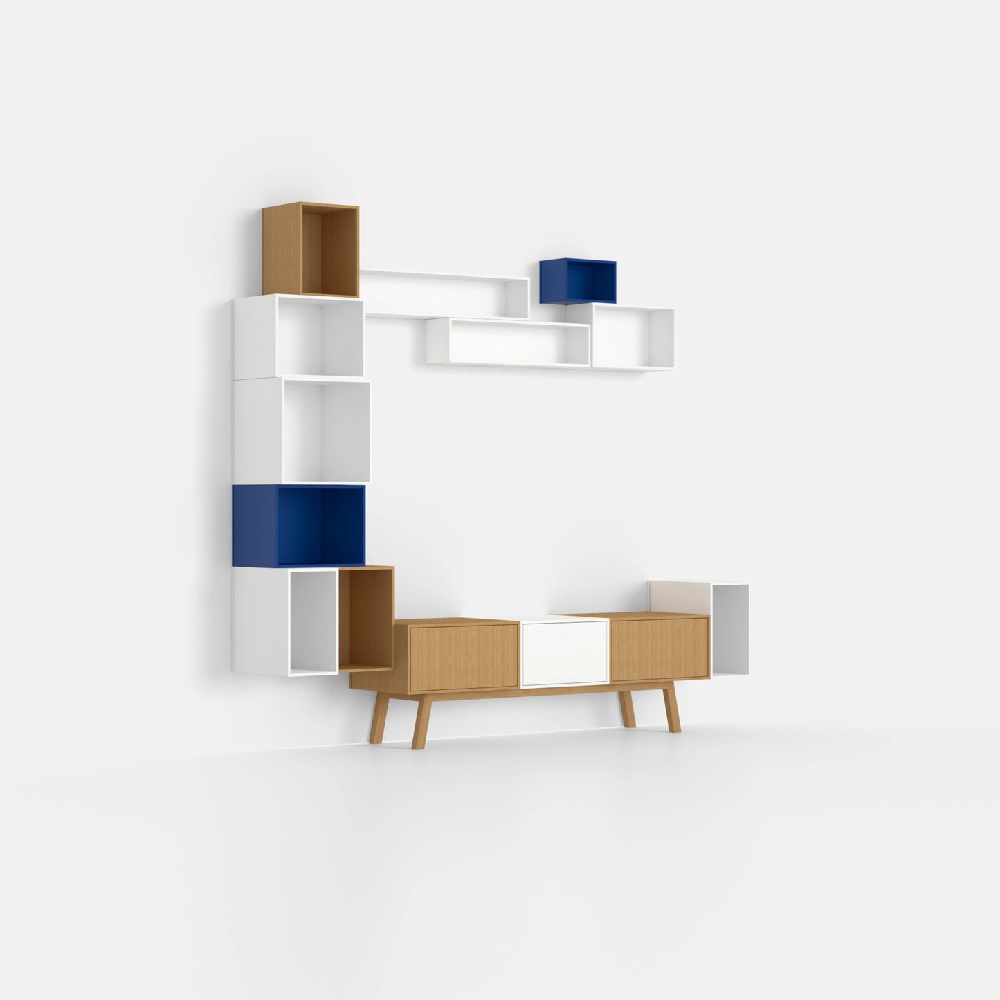 L'étagère dispose de 15 modules pour vos appareils multimédias et vos objets préférés. Utilisez les possibilités de rangement flexibles pour mettre de l'ordre. Sa construction robuste contribue à créer une ambiance ordonnée.