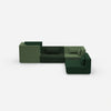Intérieur d'un Showrooms lumineux avec cheminée et canapés modulaires Cubit dans différentes nuances de vert