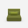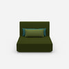 Intérieur d'un Showrooms lumineux avec cheminée et canapés modulaires Cubit dans différentes nuances de vert
