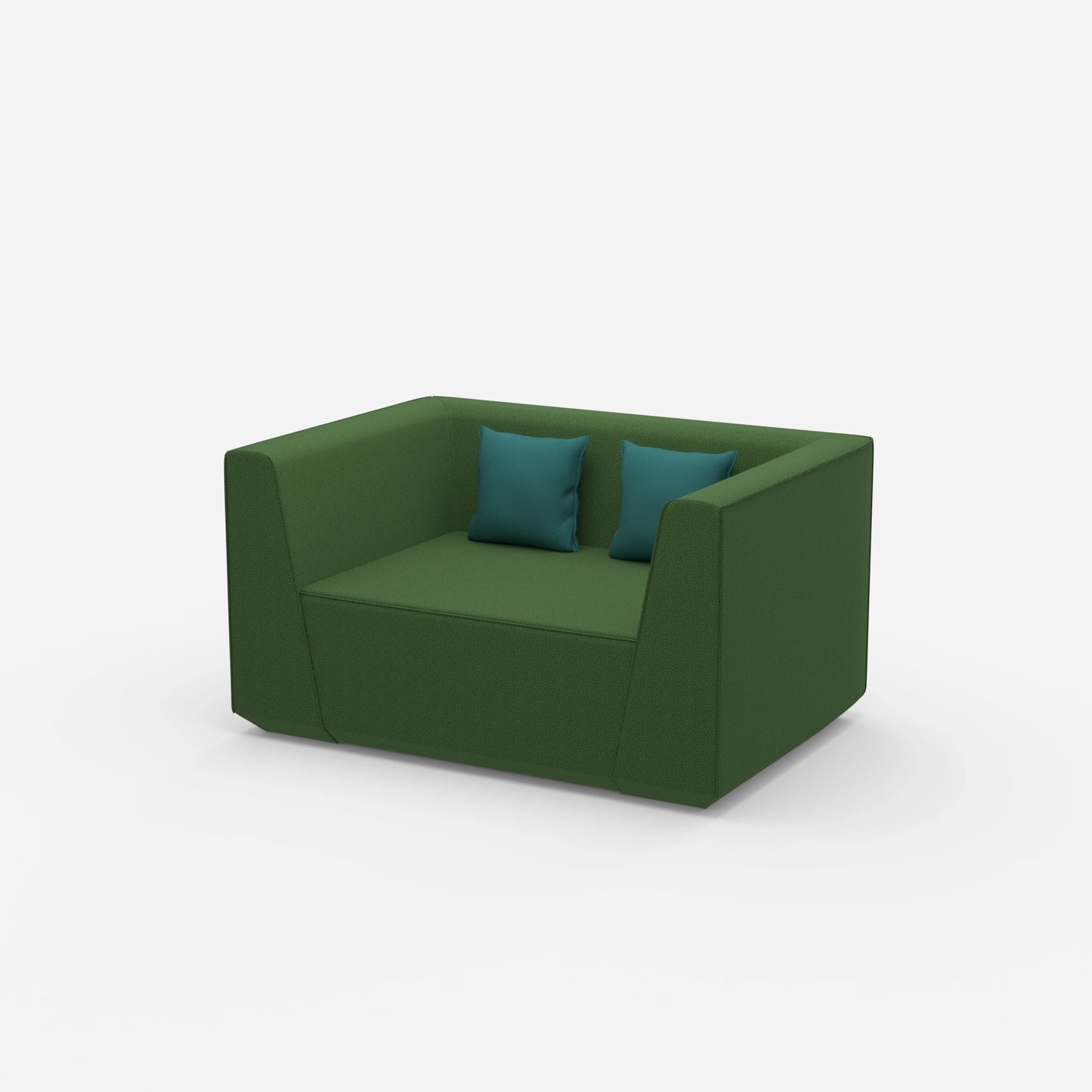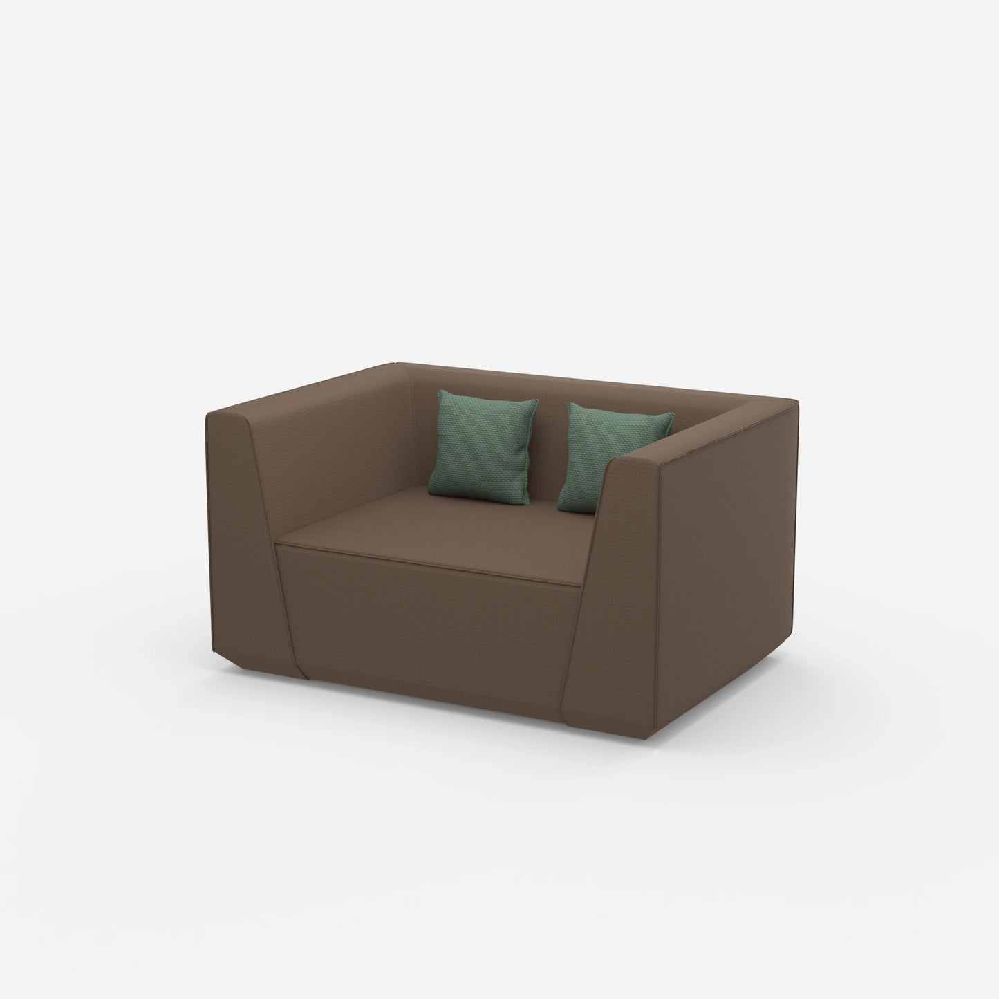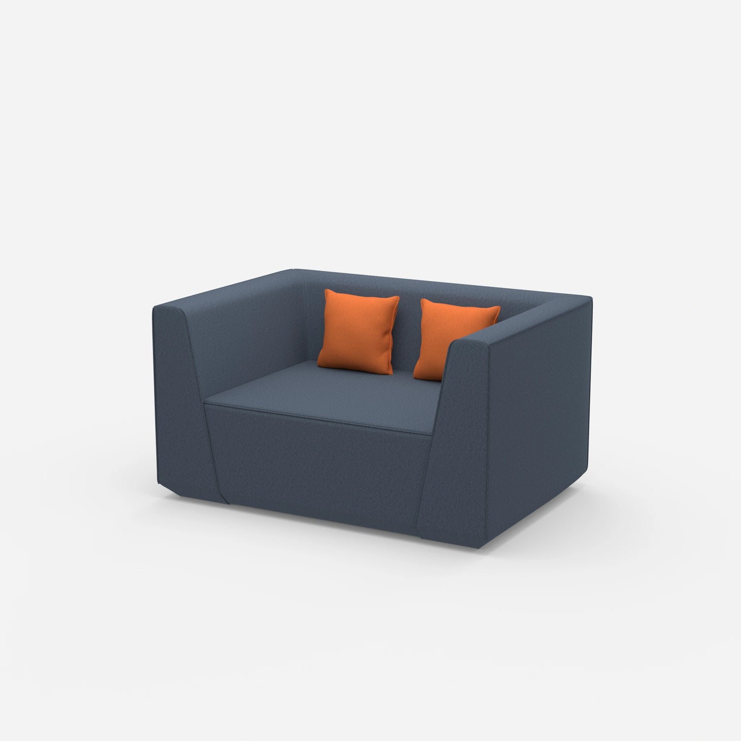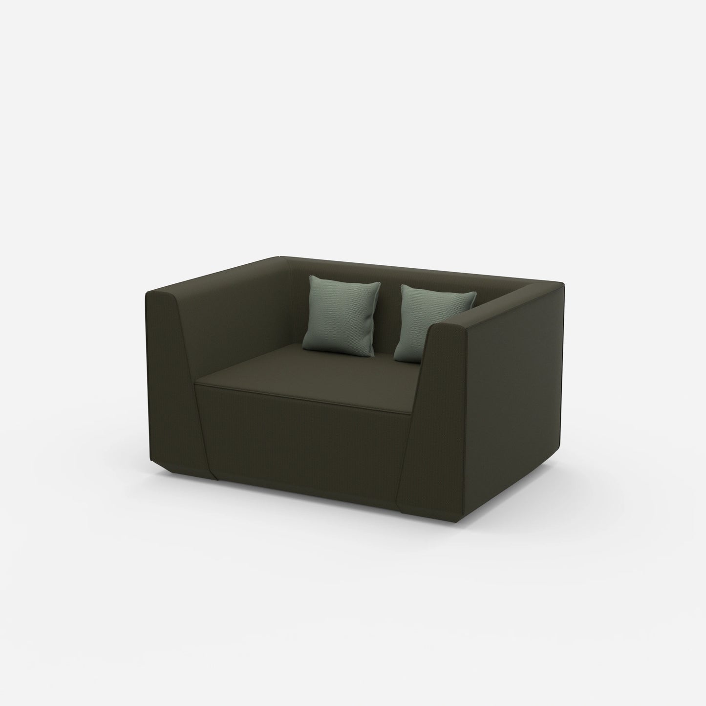 Le Lovechair modulaire est un meuble polyvalent dans le domaine des canapés modulaires. Il se compose d'un module de fauteuil et de deux coussins. Ensemble, ces éléments créent une unité flexible.
