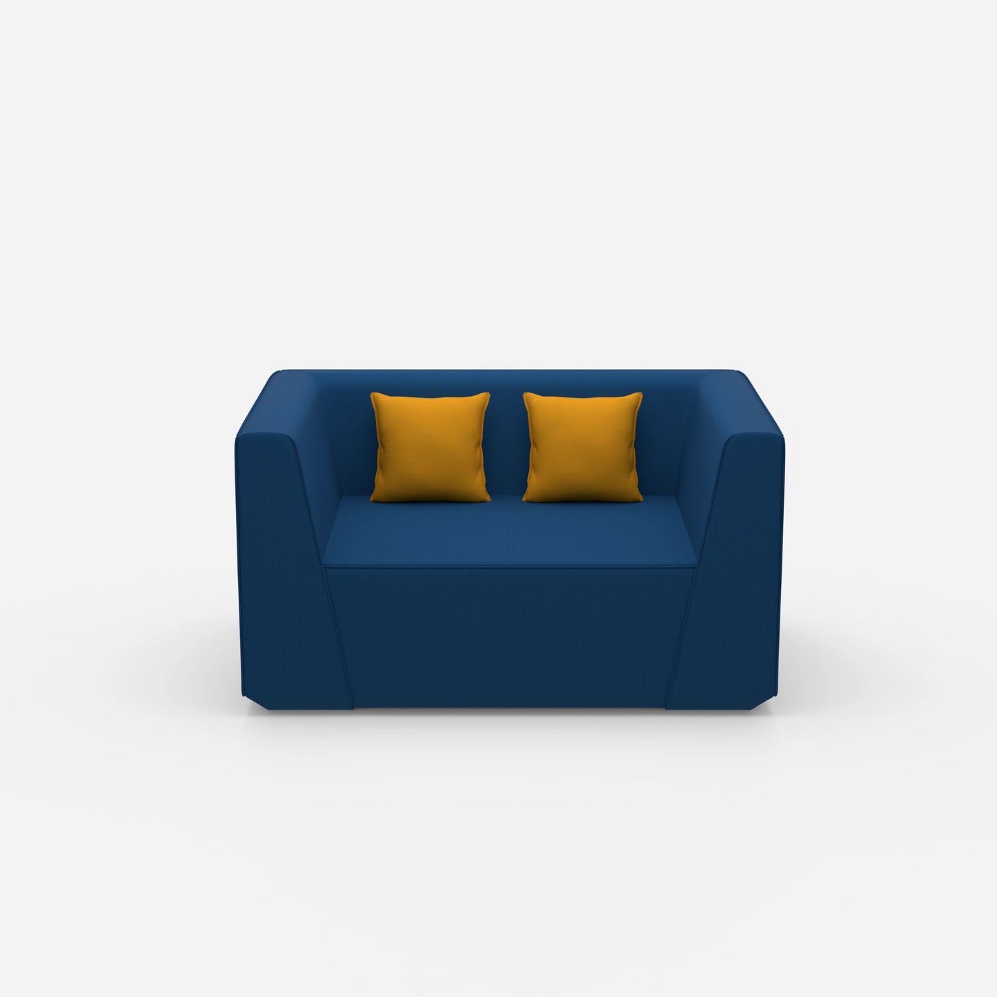 Canapé modulaire Cubit avec deux éléments d'assise côte à côte en jaune vif et bleu