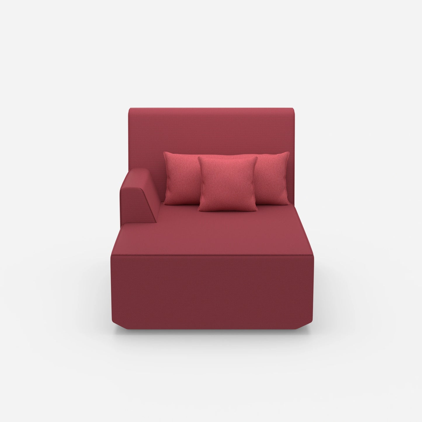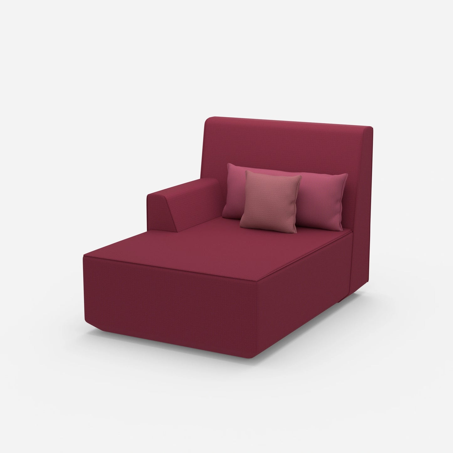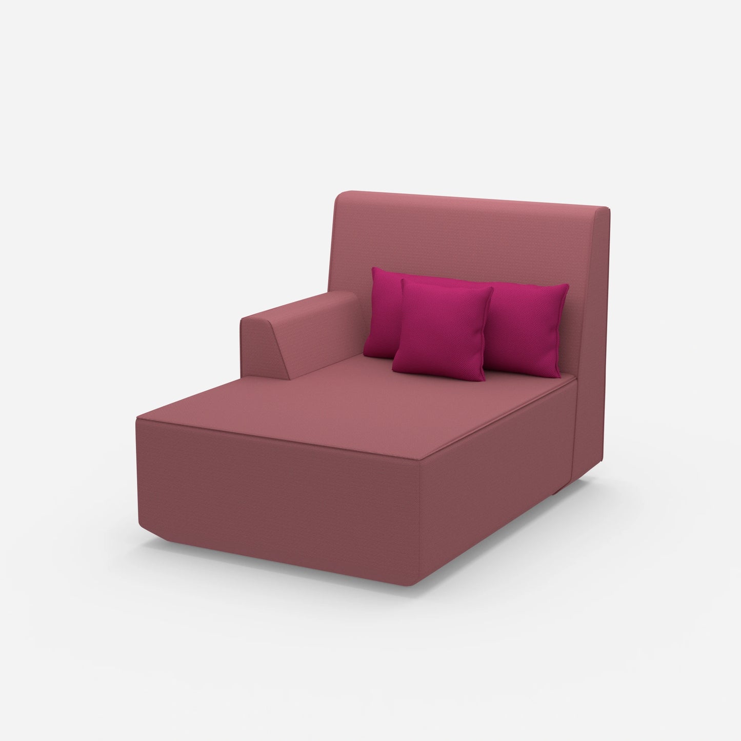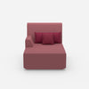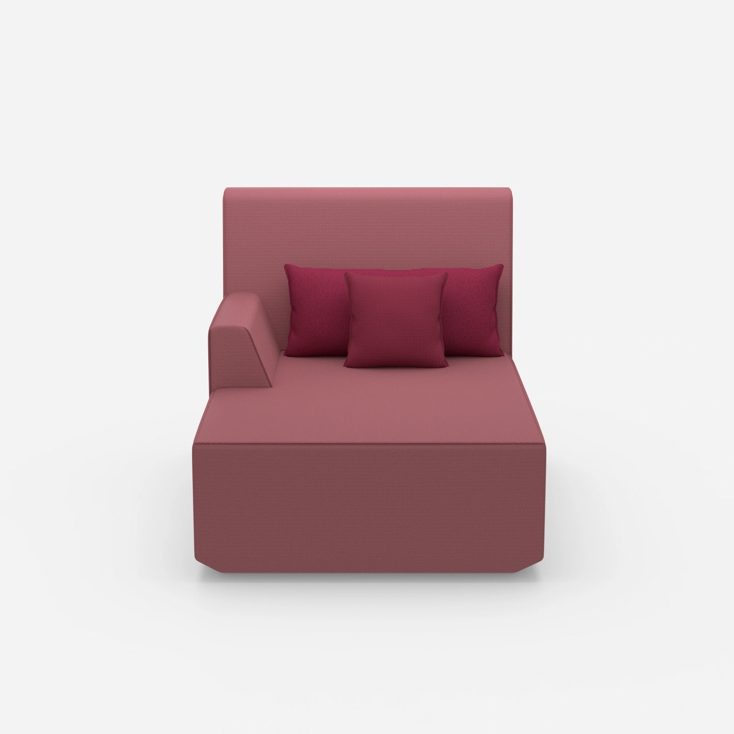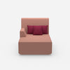 La méridienne rose de 100 cm de large est un élément phare pour les salons stylés. Cette méridienne combine un module gauche avec deux coussins. Cette structure offre confort et flexibilité dans un design compact.
