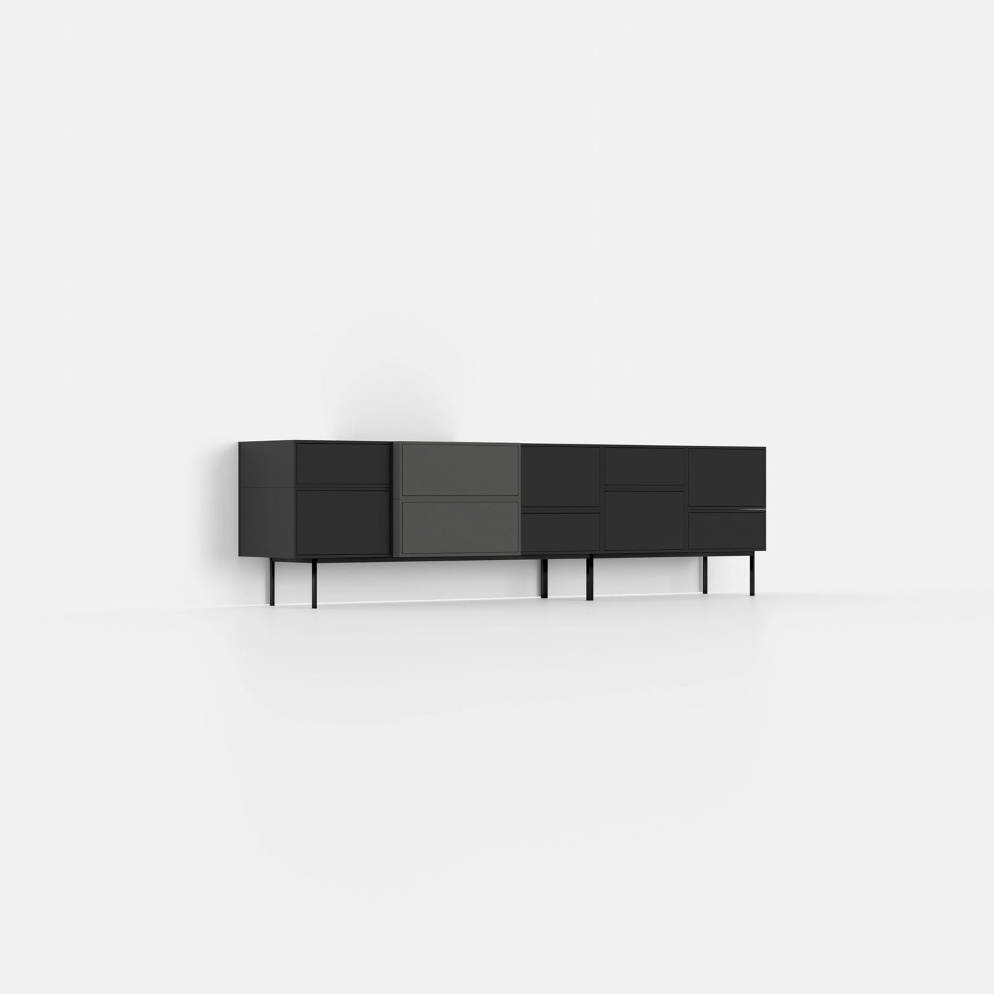 Les modules d'étagères s'orientent vers les formats courants de littérature et de musique, par exemple Din A4, A5, classeurs, atlas, livres d'images & disques. Cette grille de tailles provenant du contenu permet d'obtenir un look sculptural unique.