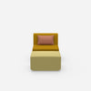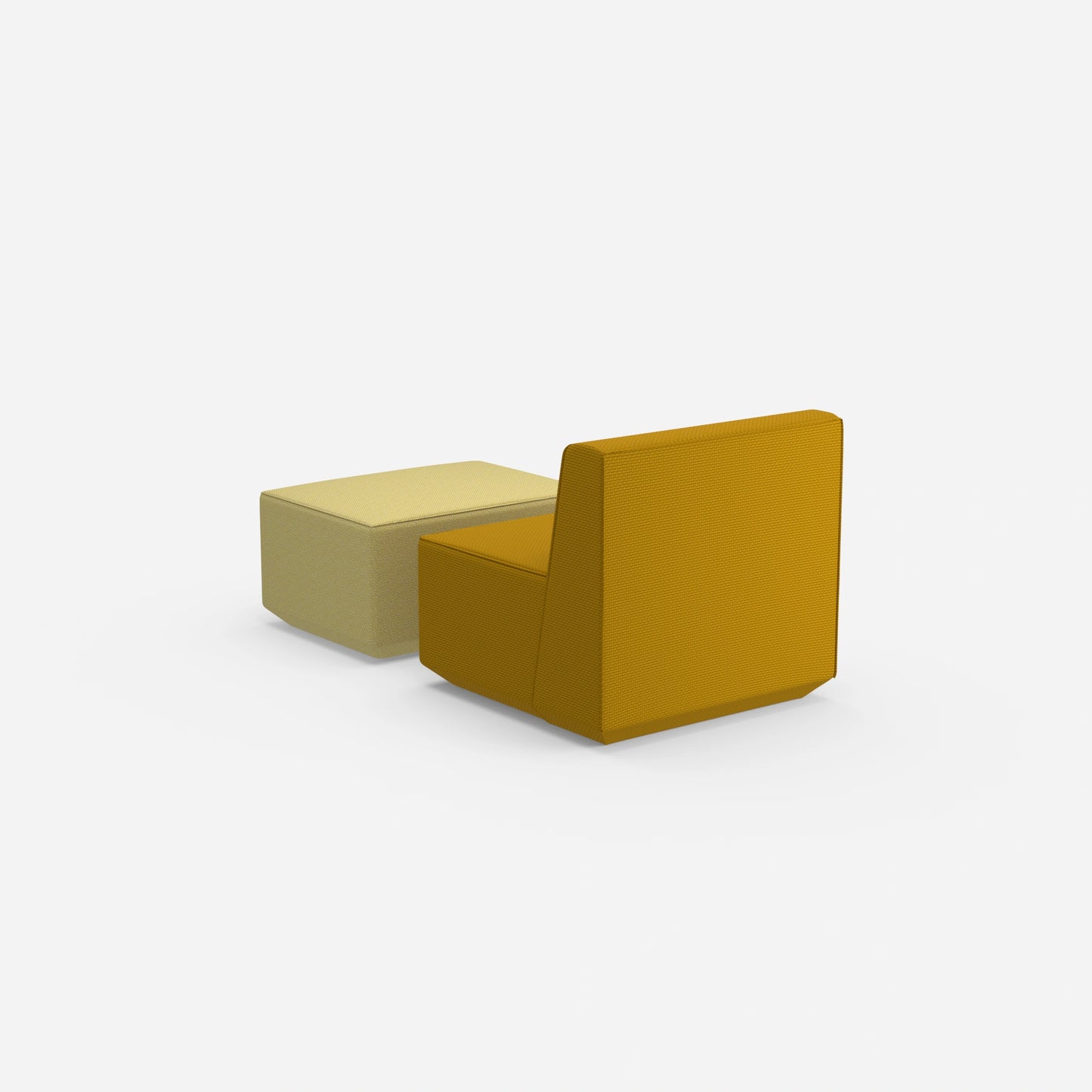 Modulares Cubit Sofa mit zwei nebeneinander stehenden Sitzelementen in kräftigem Gelb und Blau