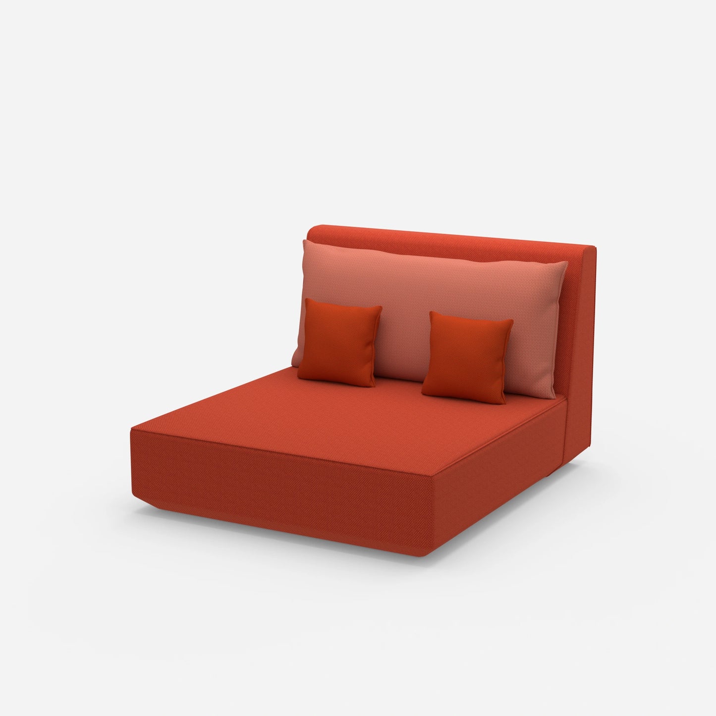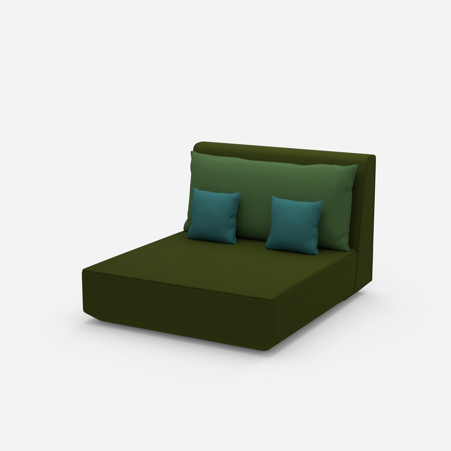 Die Doppelrecamiere ist ein Meisterwerk der Recamiere-Kunst. Sie besteht aus einem einzigen Modul, das durch drei weiche Kissen und ein stabiles Rückenmodul überzeugt. Diese Kombination bietet Flexibilität und Komfort. Perfekt für ein dynamisches Wohnambiente, das sich leicht an verschiedene Bedürfnisse anpasst.