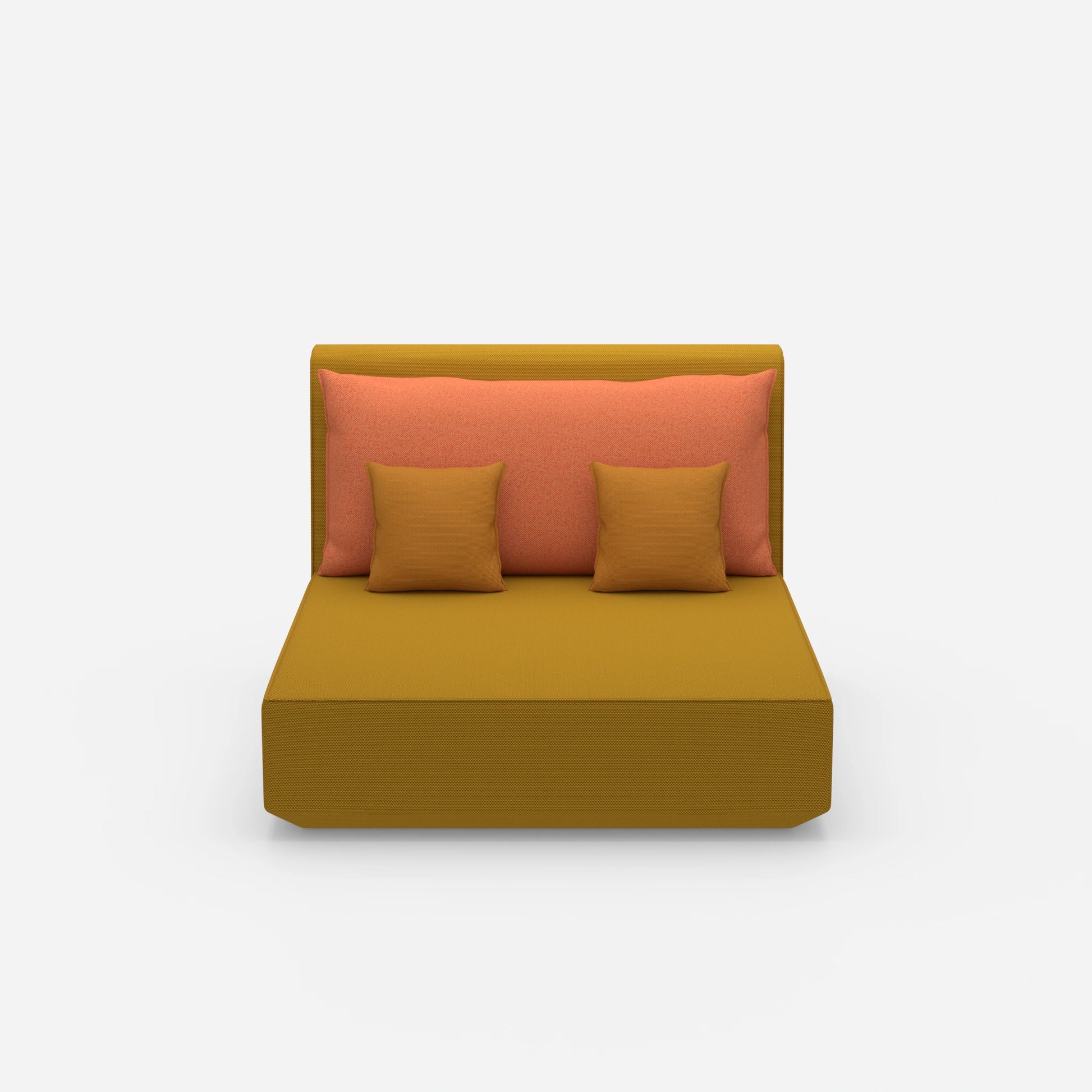 Modulares Cubit Sofa mit zwei nebeneinander stehenden Sitzelementen in kräftigem Gelb und Blau