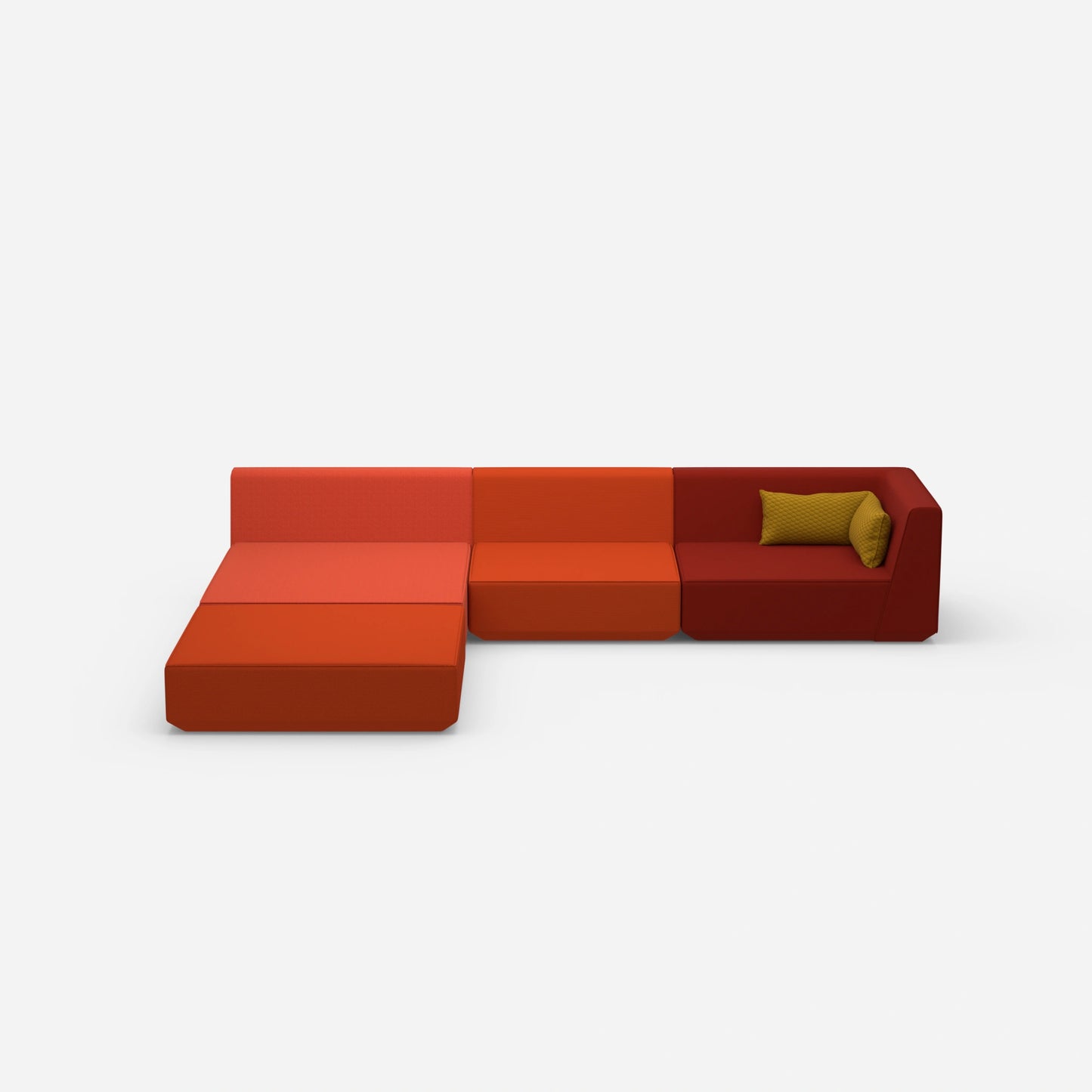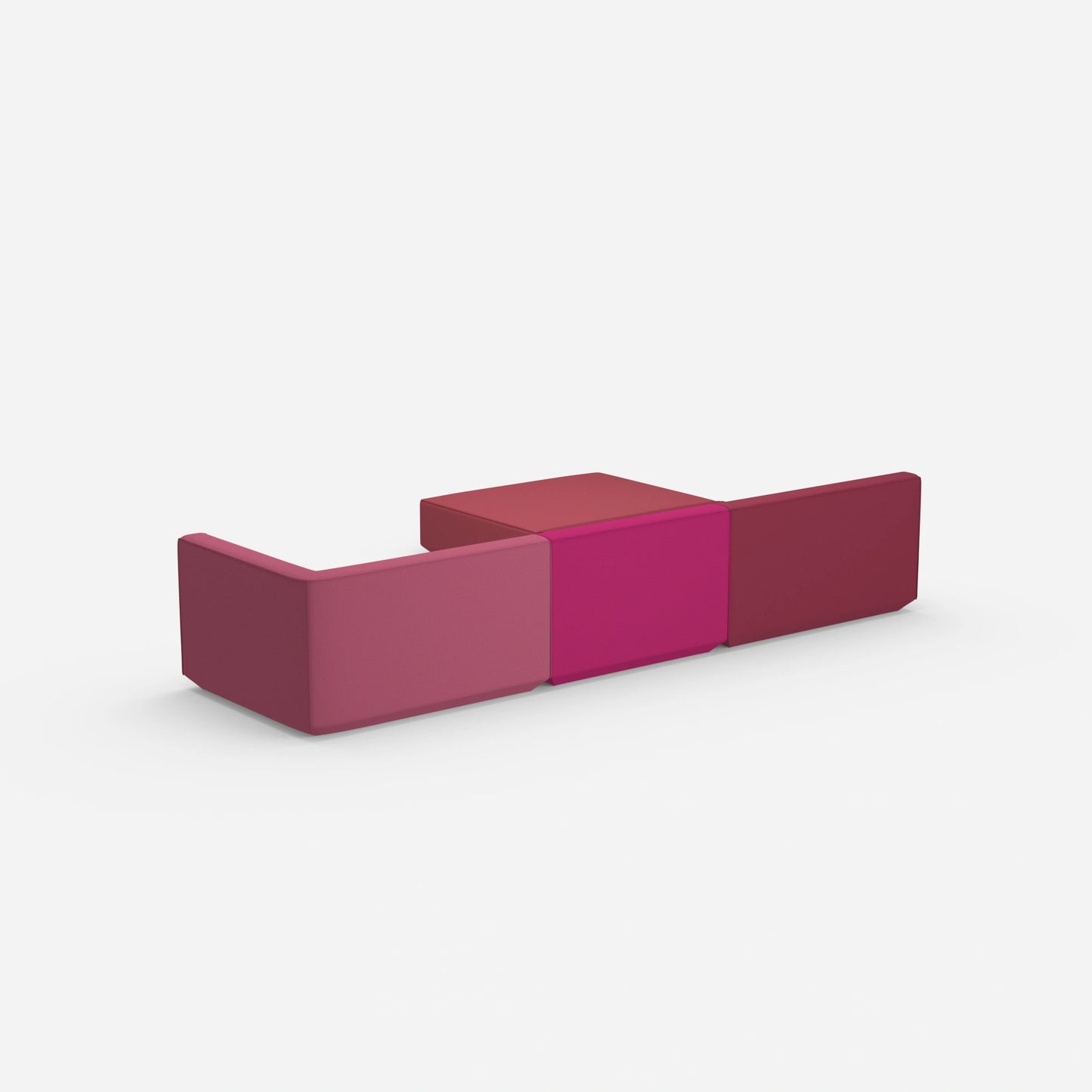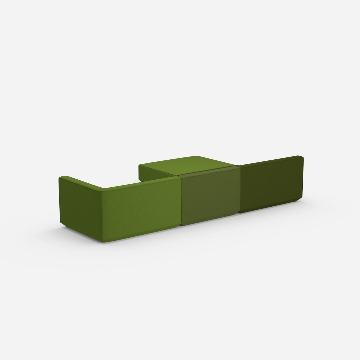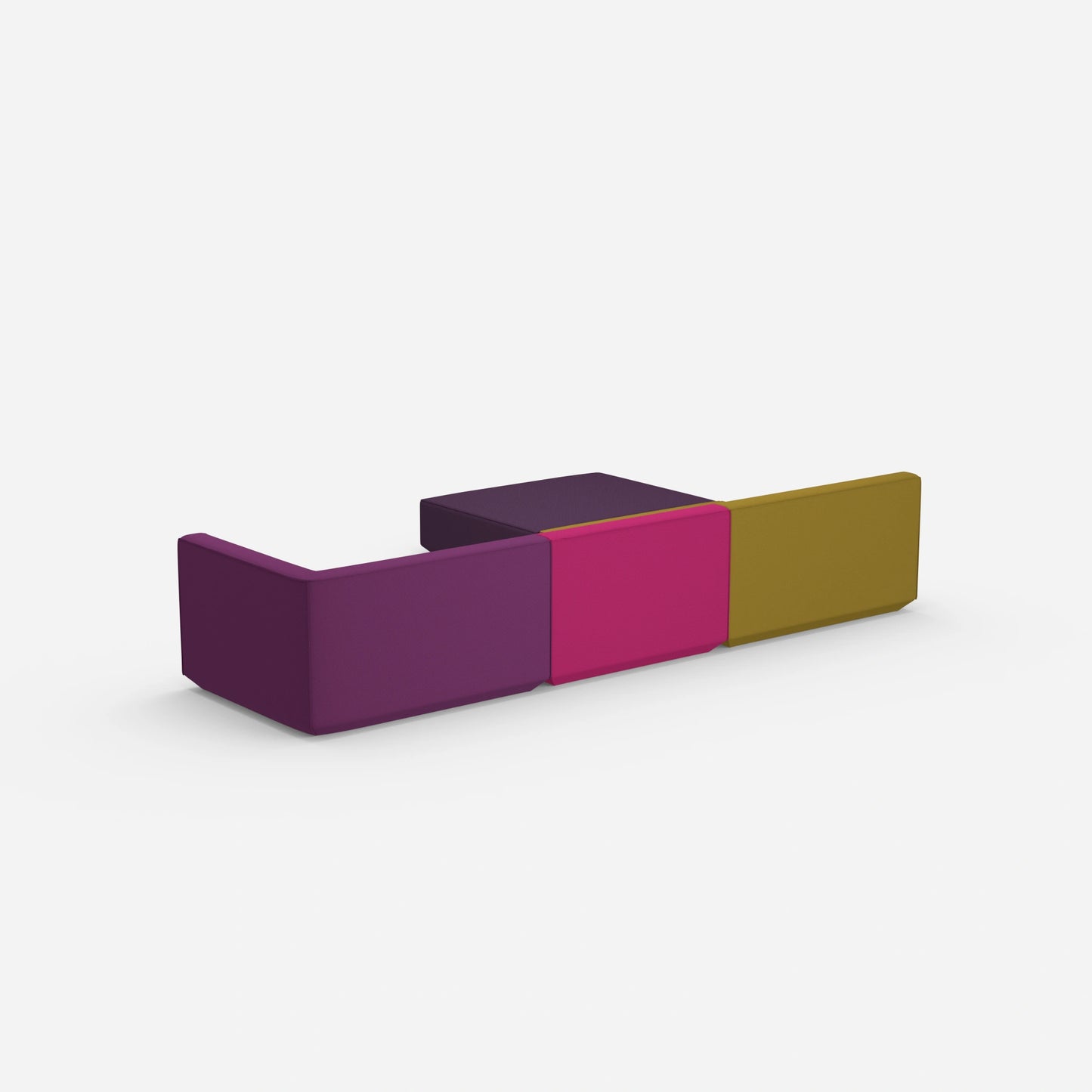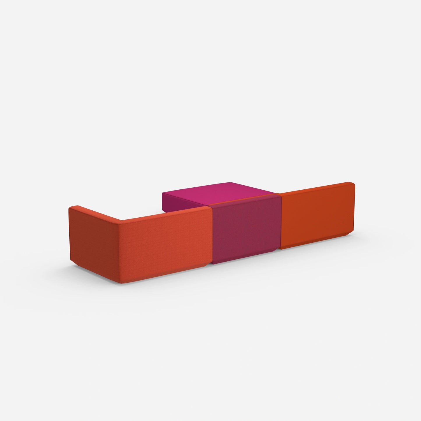 Verschieden konfigurierte Cubit Sofa Module in einem großen, offenen Raum – zeigt die Vielfalt an Kombinationsmöglichkeiten und Farben