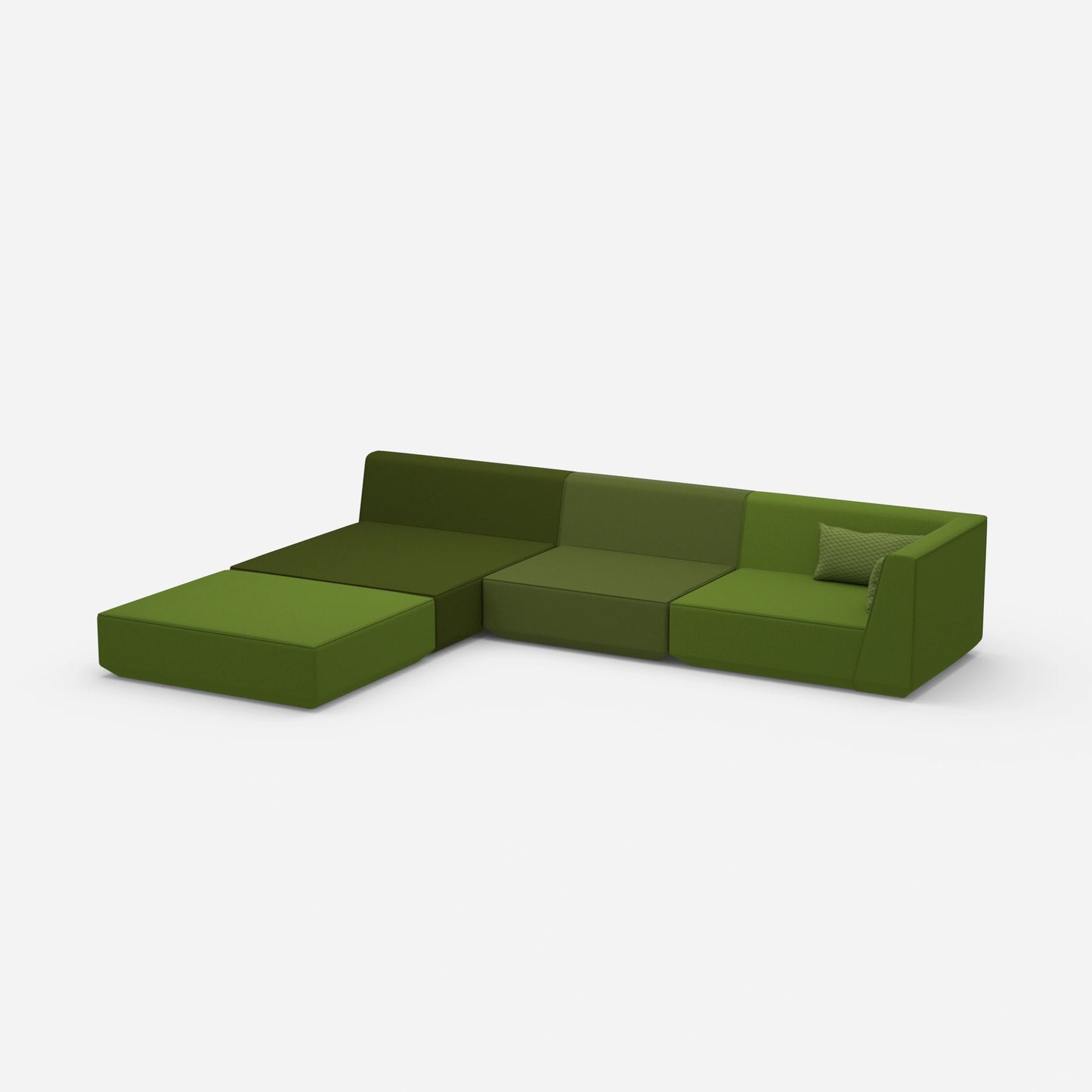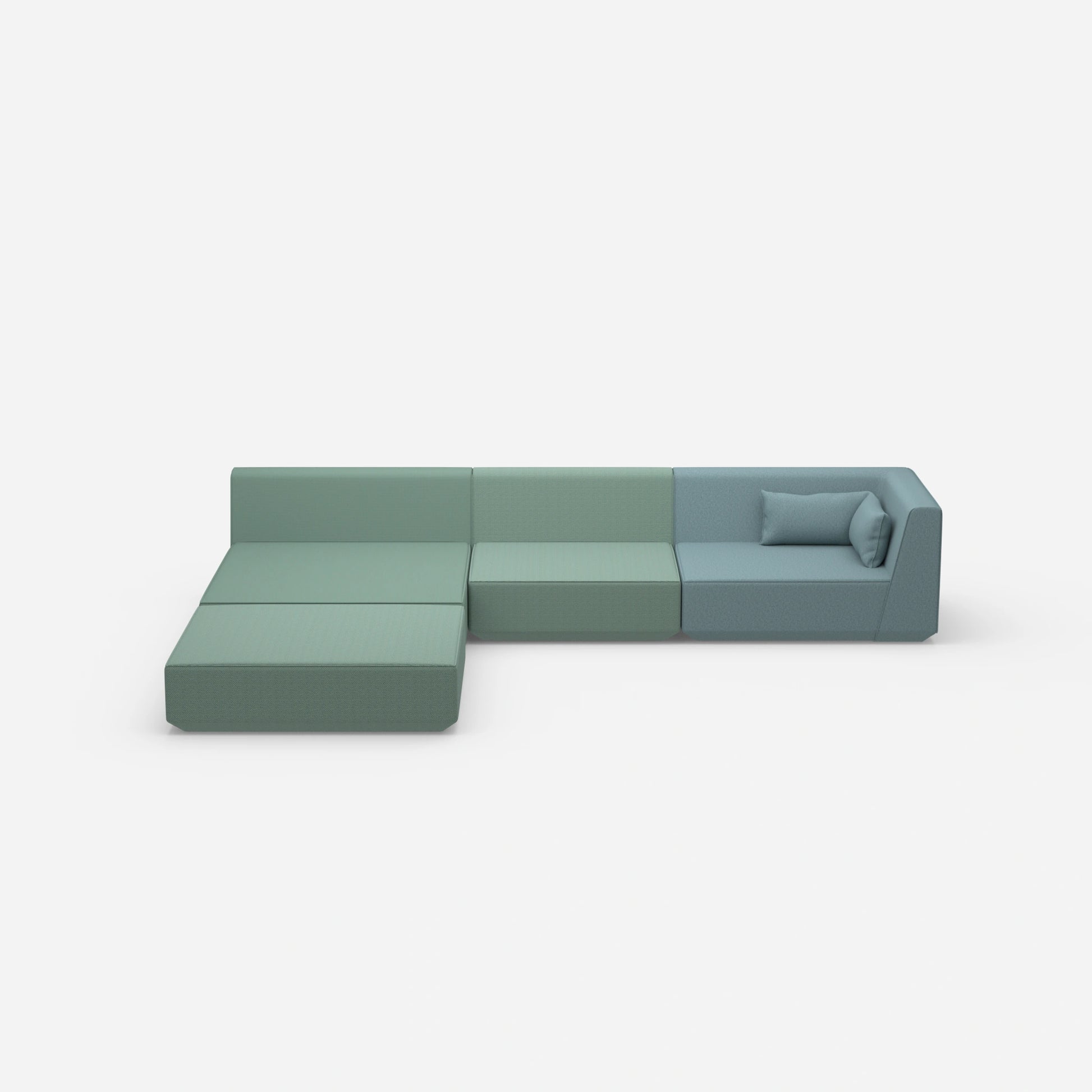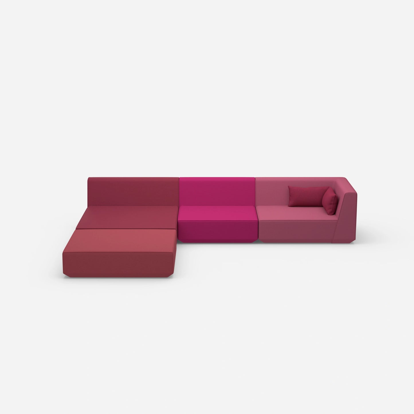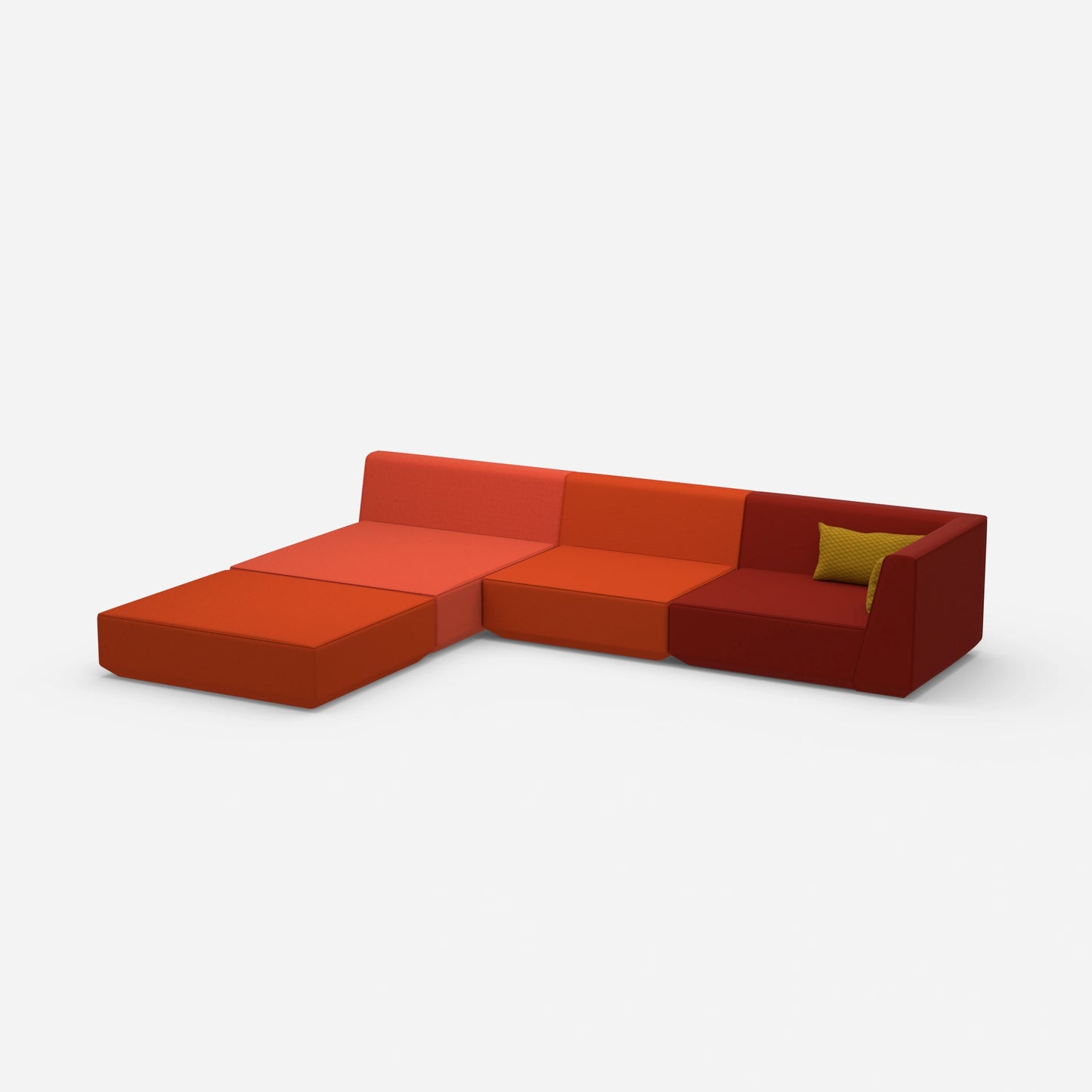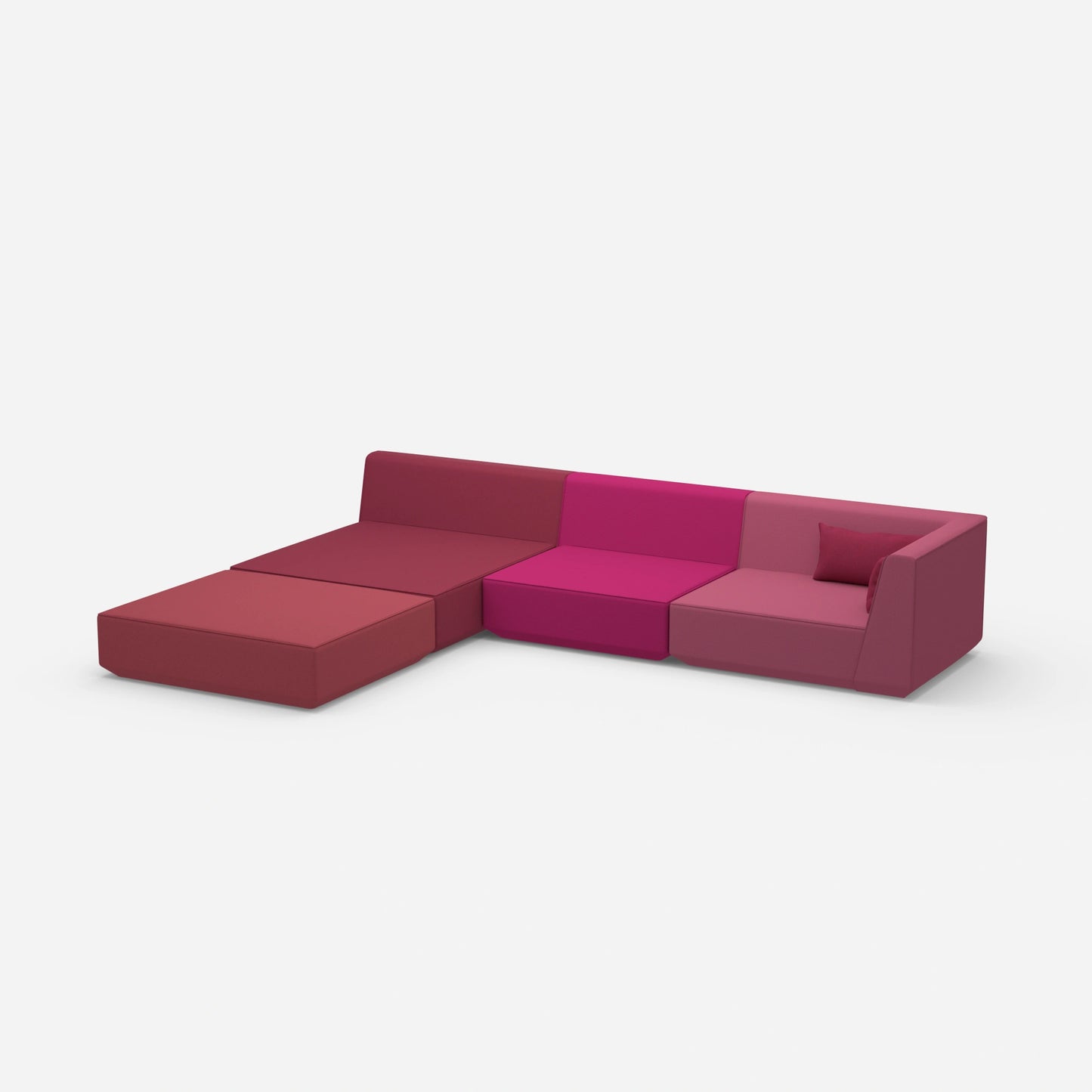 Verschieden konfigurierte Cubit Sofa Module in einem großen, offenen Raum – zeigt die Vielfalt an Kombinationsmöglichkeiten und Farben