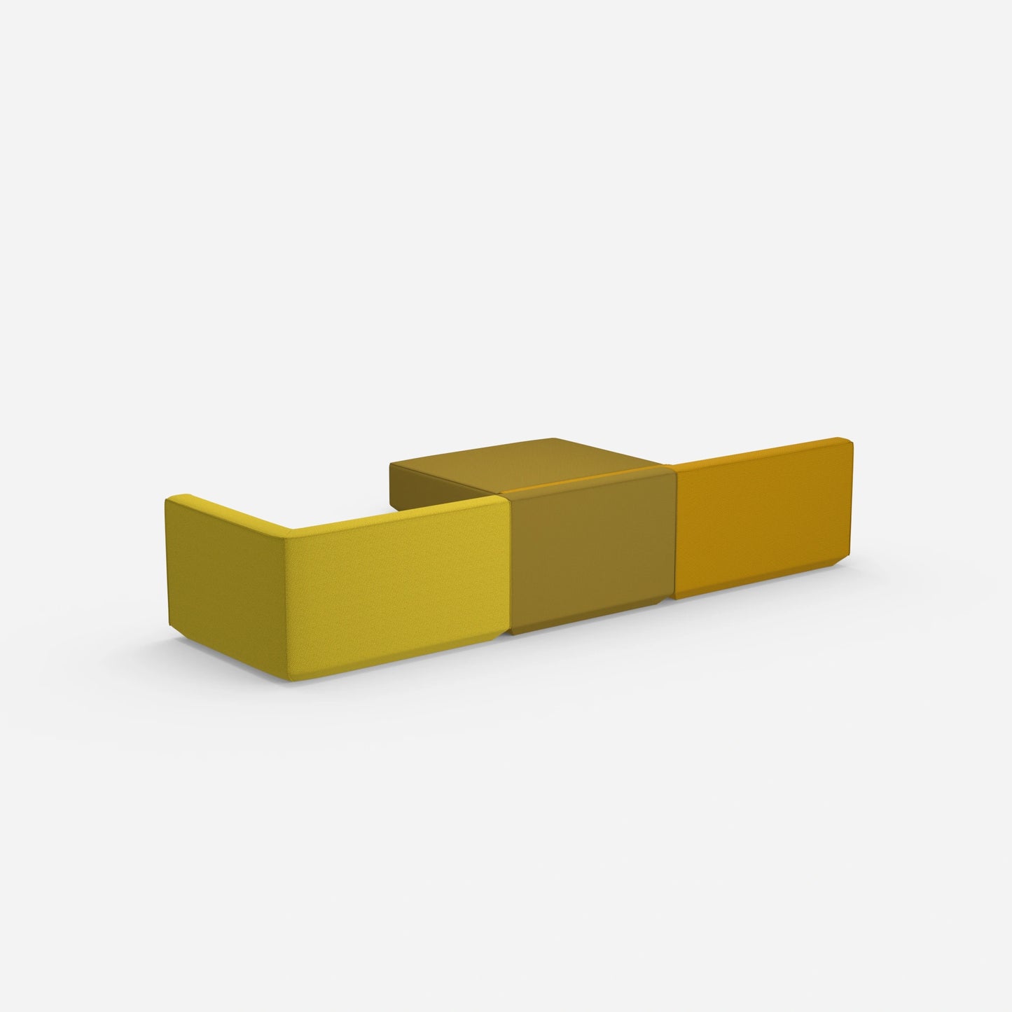 Modulares Cubit Sofa mit zwei nebeneinander stehenden Sitzelementen in kräftigem Gelb und Blau