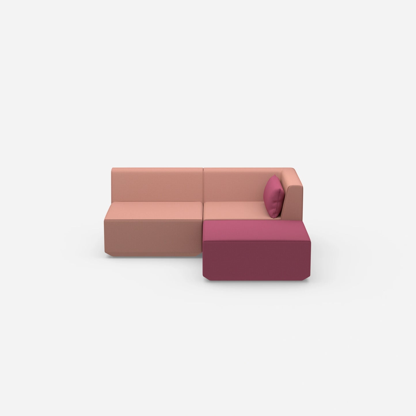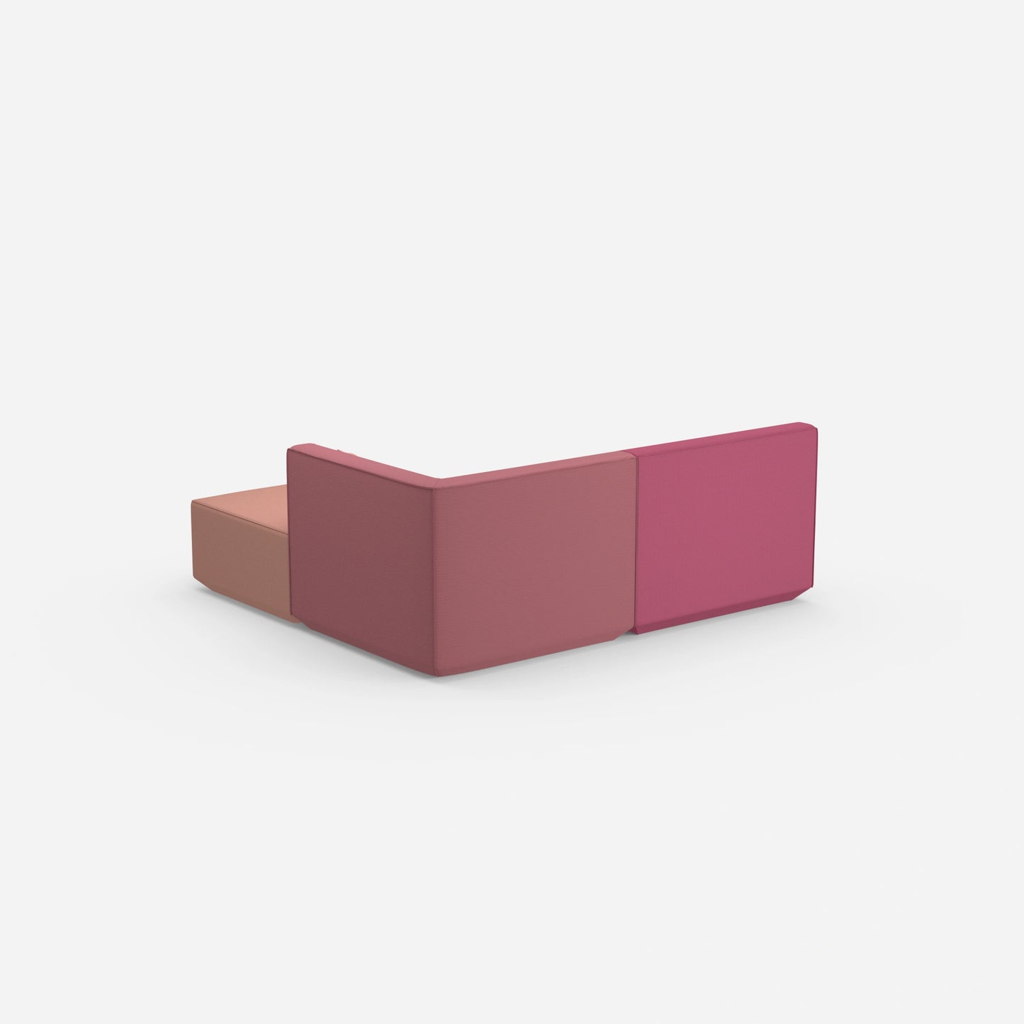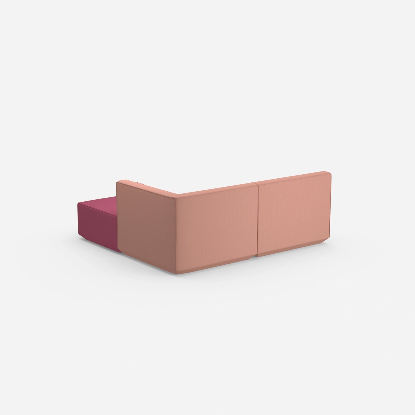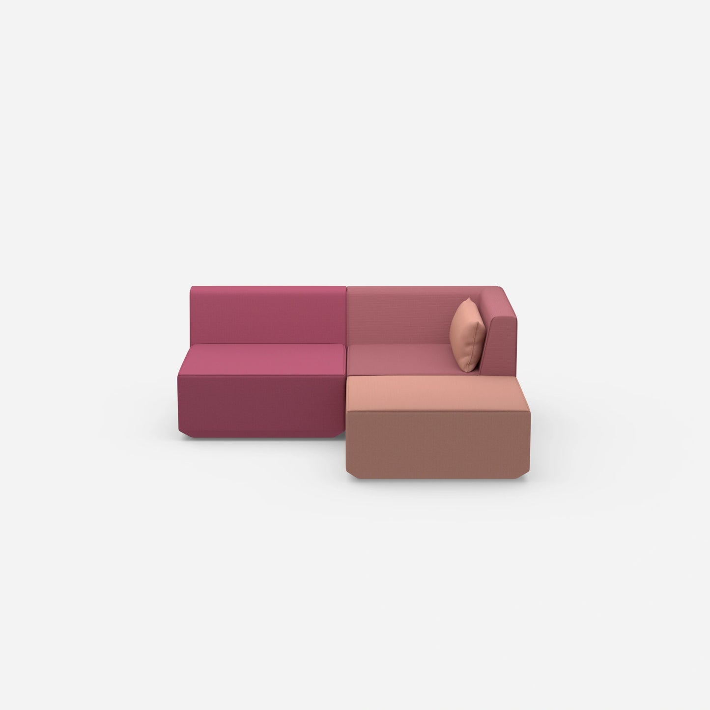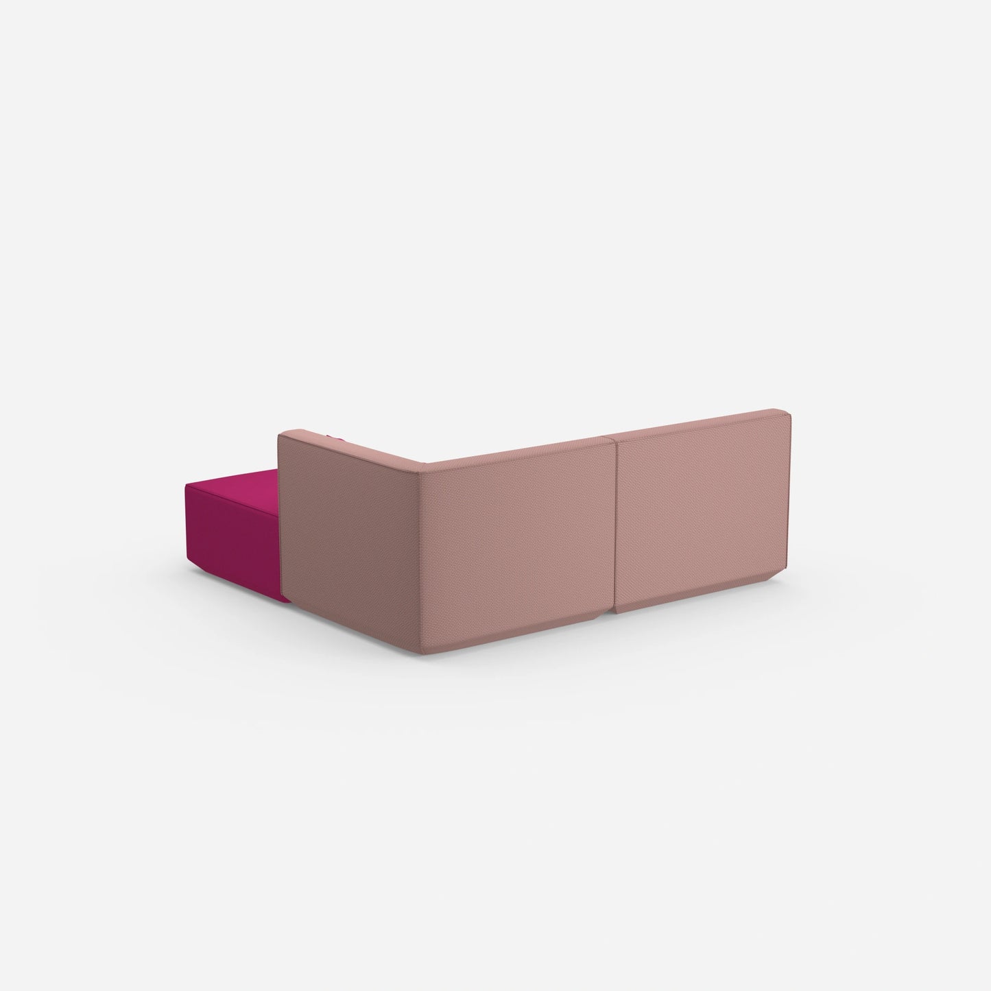 Die Eckcouch rosa bringt frischen Wind in die Welt der Ecksofas. Mit ihrer modularen Struktur aus drei Teilen – einem Rückenmodul, einem rechten Eckmodul und einem Poufmodul – bietet sie Flexibilität und Komfort. Ein passendes Kissen rundet das Arrangement ab und sorgt für Gemütlichkeit.