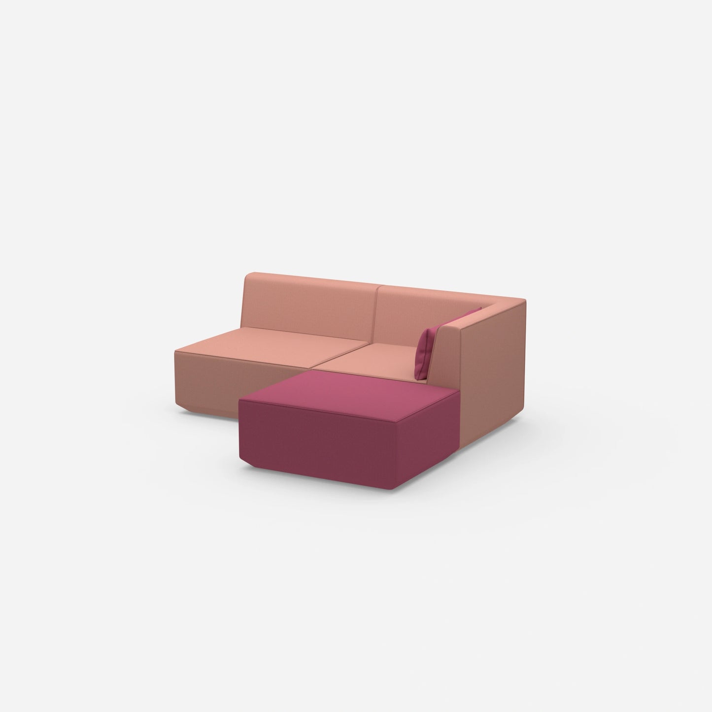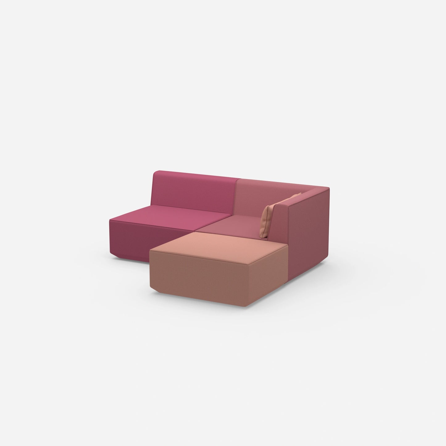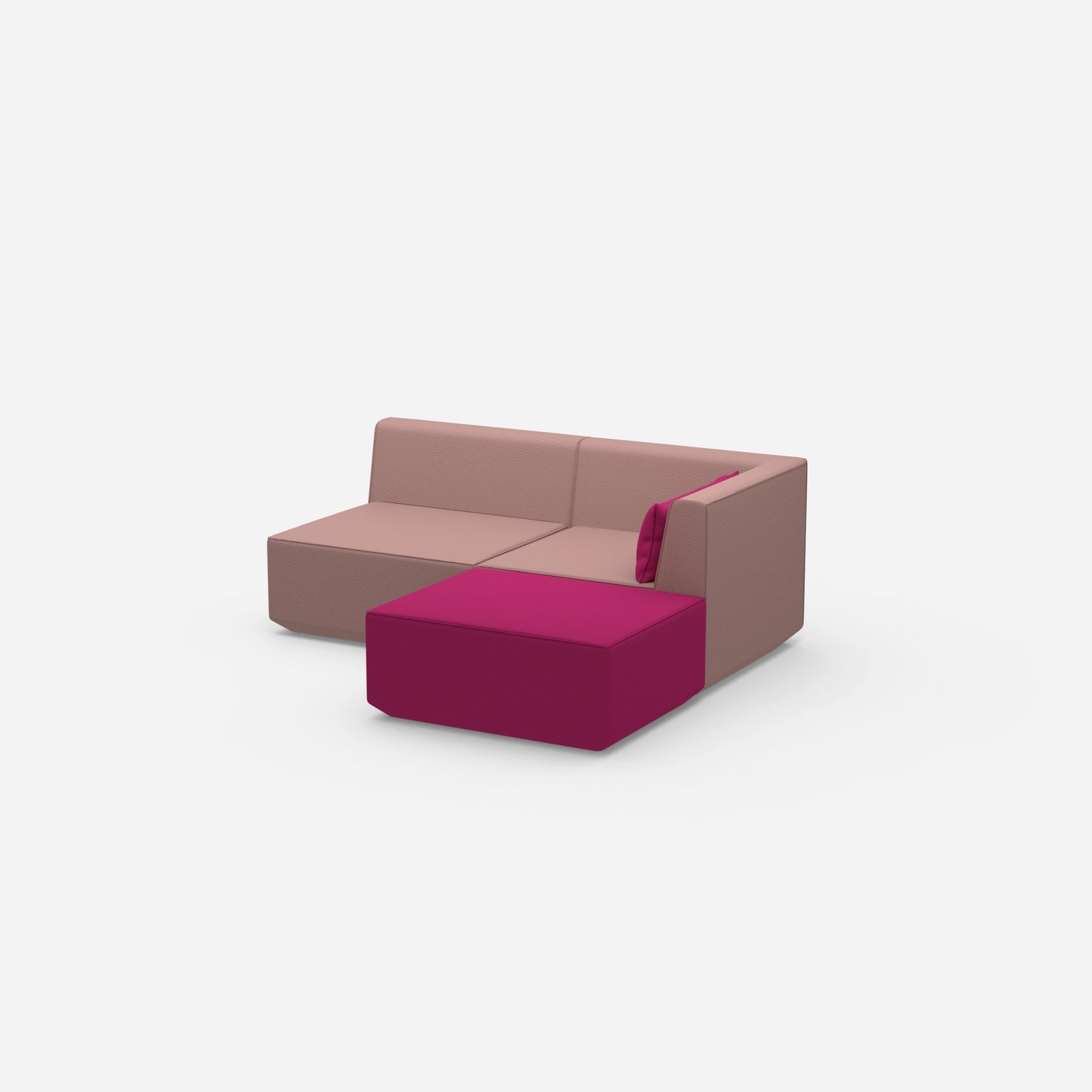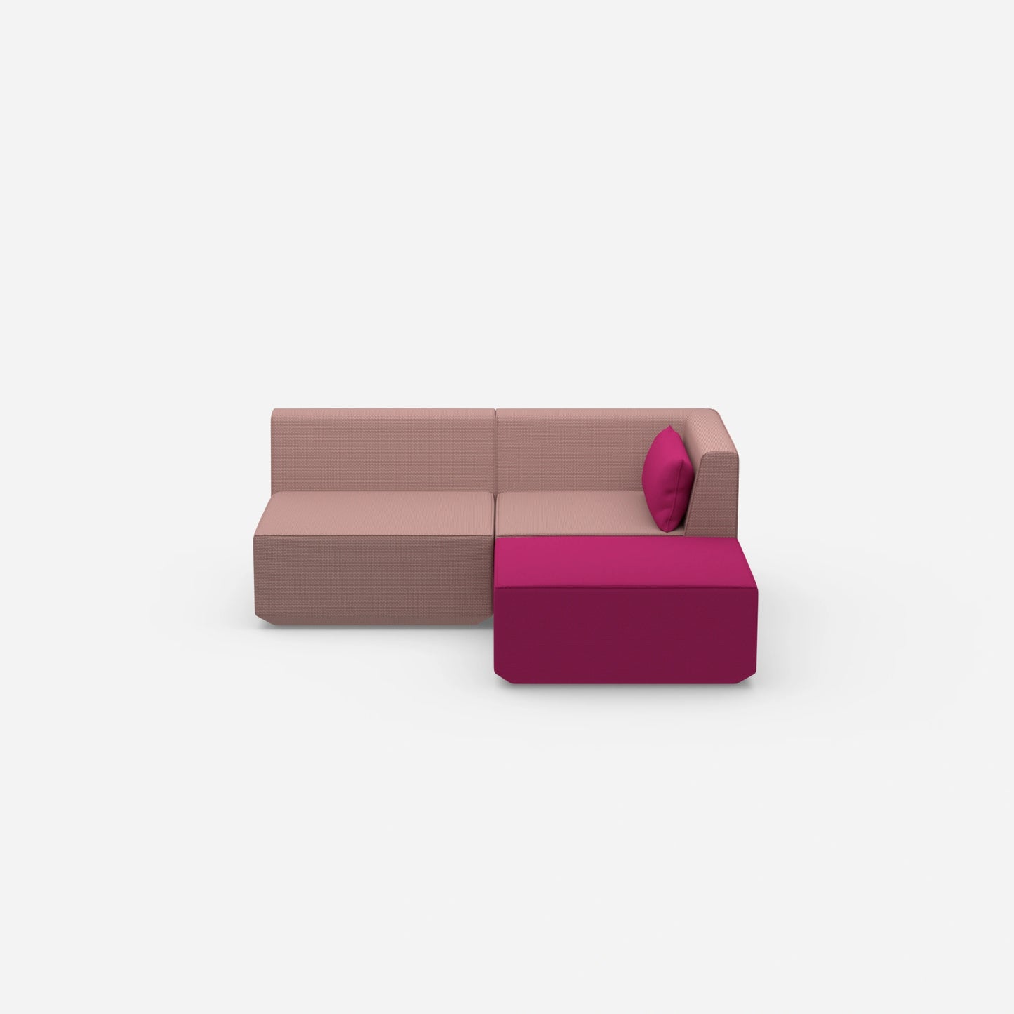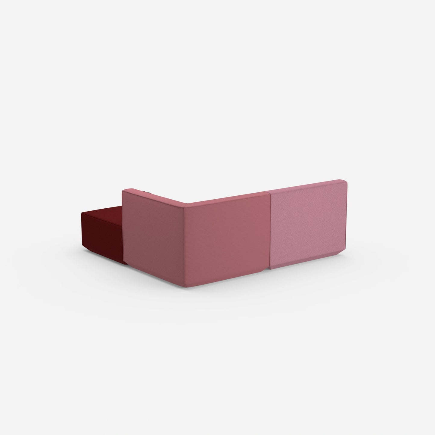 Die Eckcouch rosa bringt frischen Wind in die Welt der Ecksofas. Mit ihrer modularen Struktur aus drei Teilen – einem Rückenmodul, einem rechten Eckmodul und einem Poufmodul – bietet sie Flexibilität und Komfort. Ein passendes Kissen rundet das Arrangement ab und sorgt für Gemütlichkeit.
