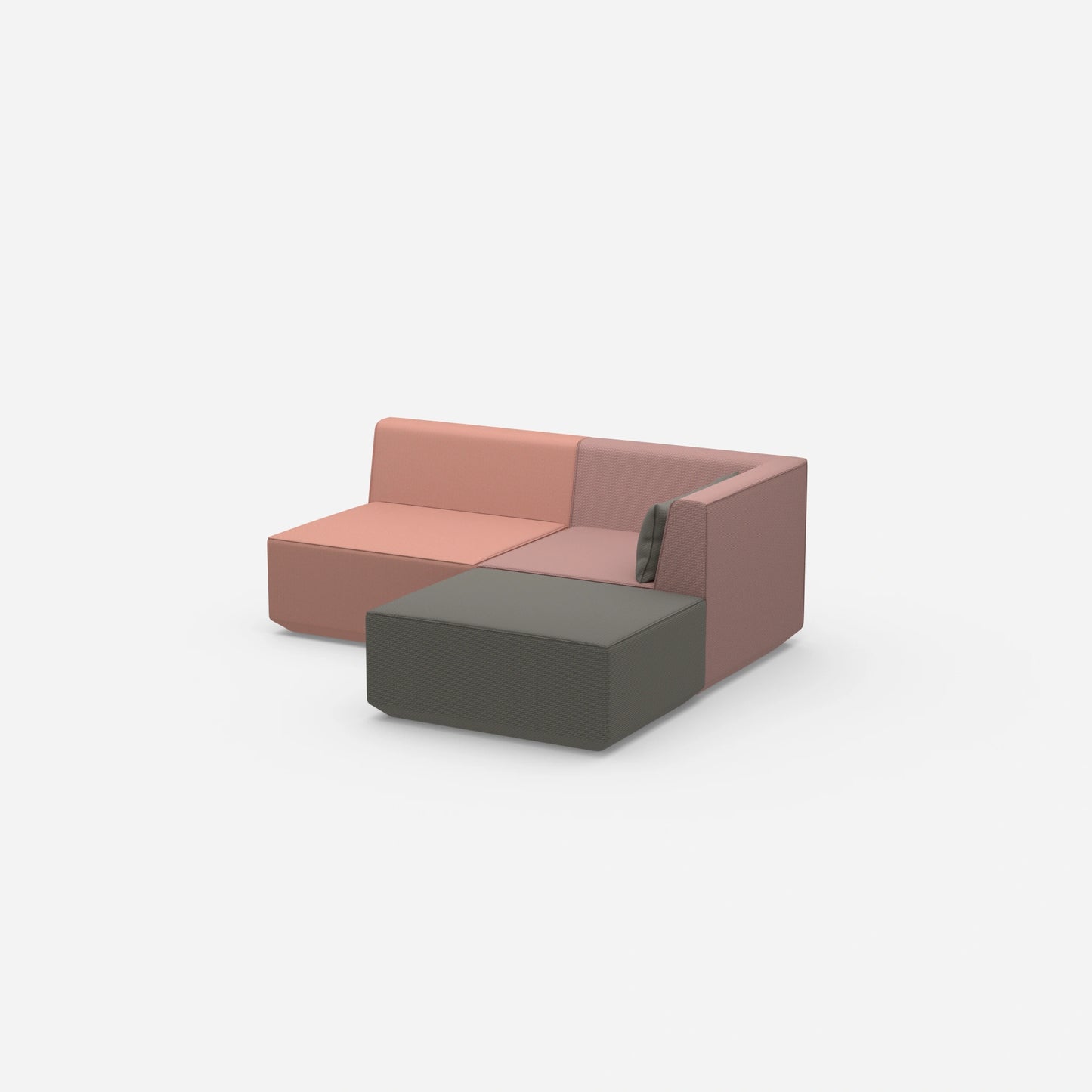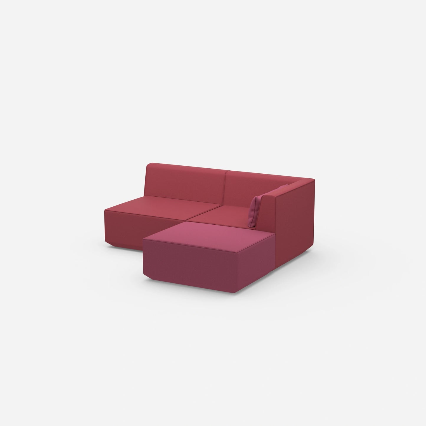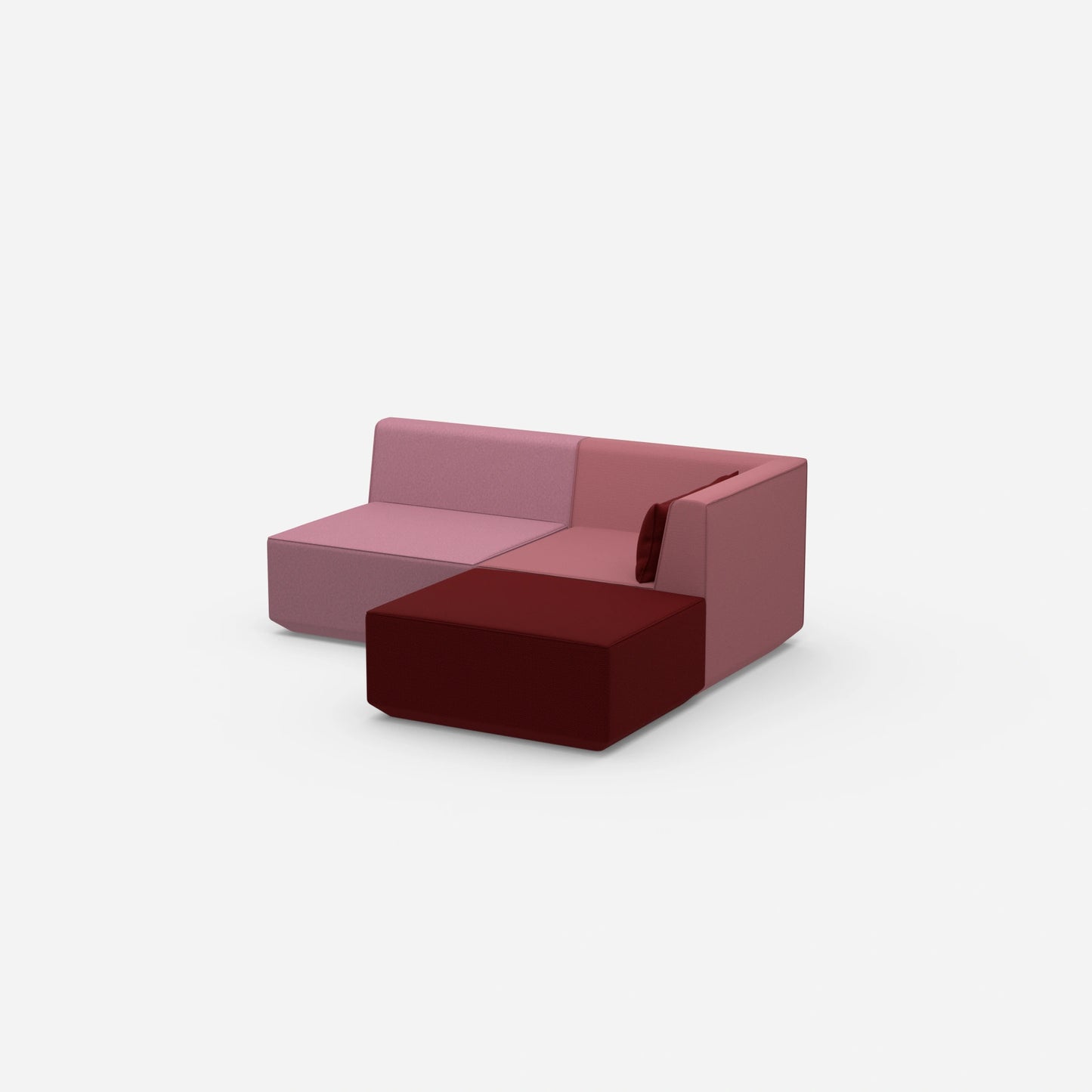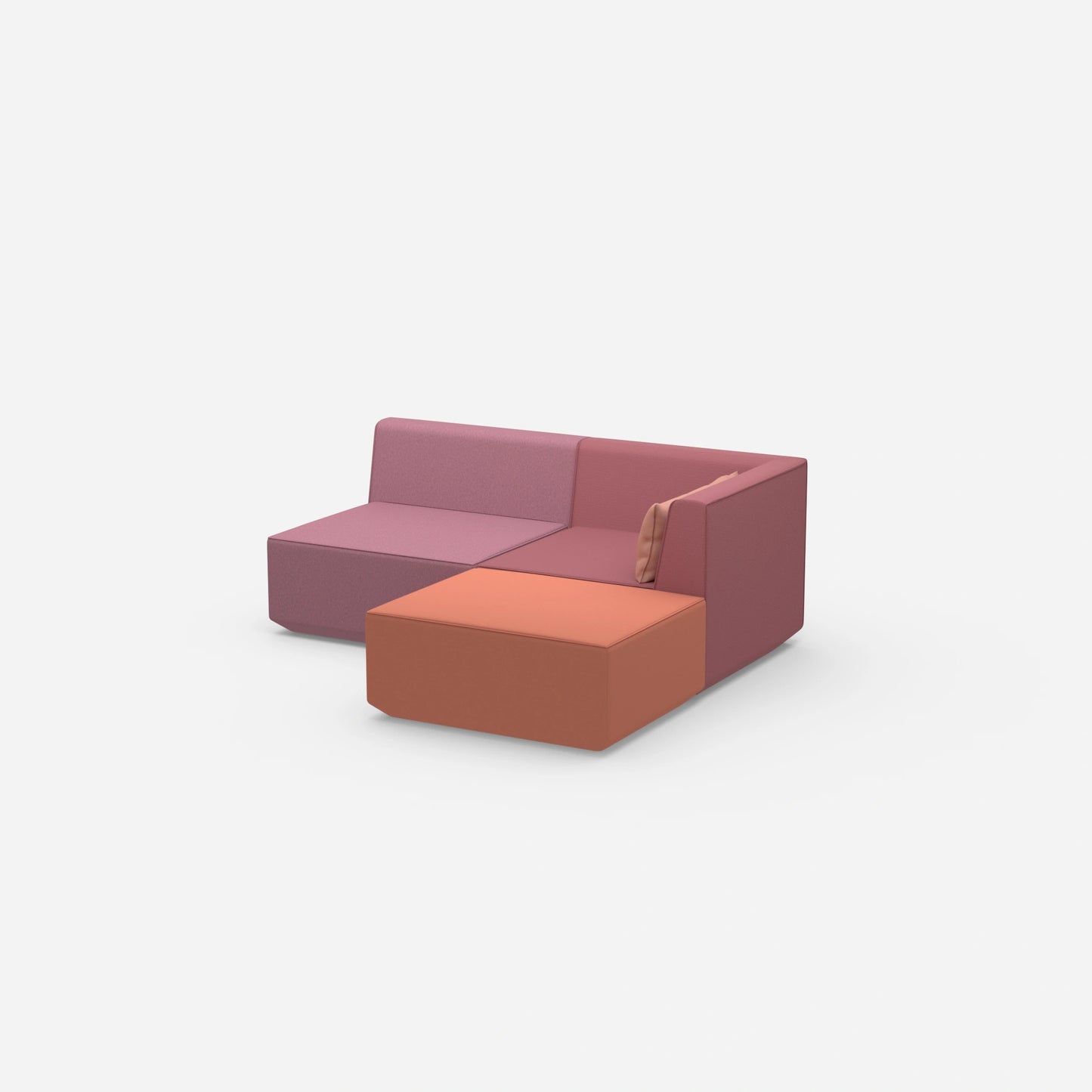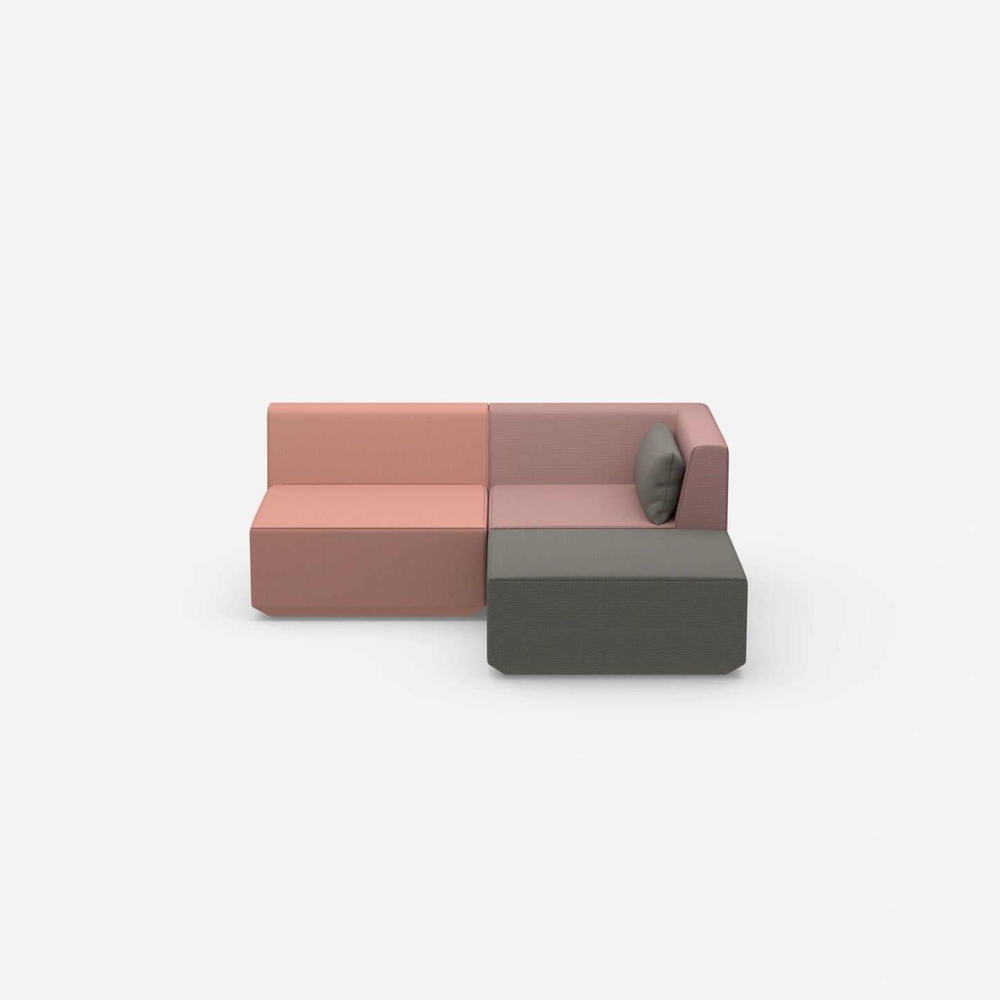 Die Eckcouch rosa bringt frischen Wind in die Welt der Ecksofas. Mit ihrer modularen Struktur aus drei Teilen – einem Rückenmodul, einem rechten Eckmodul und einem Poufmodul – bietet sie Flexibilität und Komfort. Ein passendes Kissen rundet das Arrangement ab und sorgt für Gemütlichkeit.