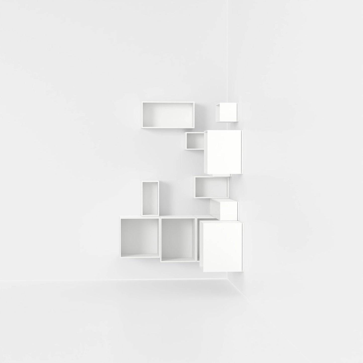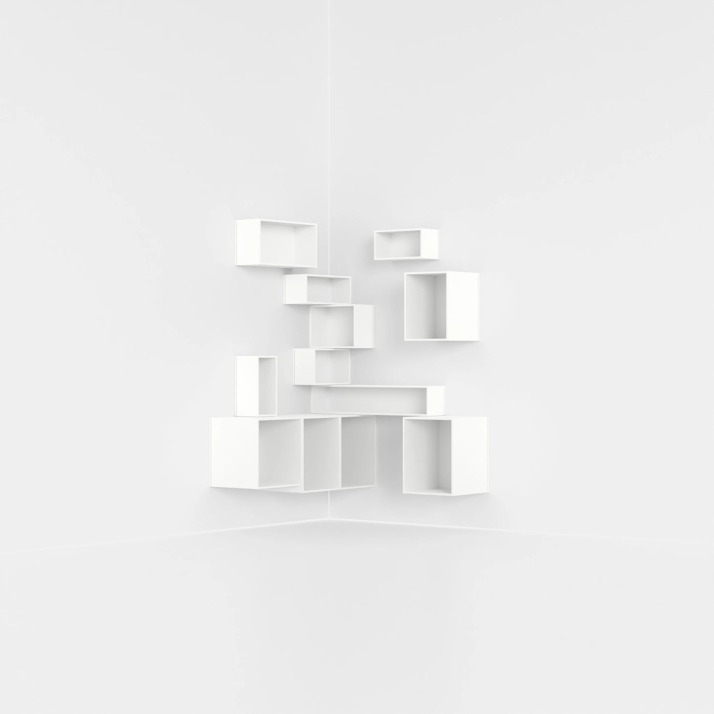 Entdecken Sie das Cubit Regalsystem: Werkzeugfreier Aufbau, dank Nut und Feder-Prinzip.
