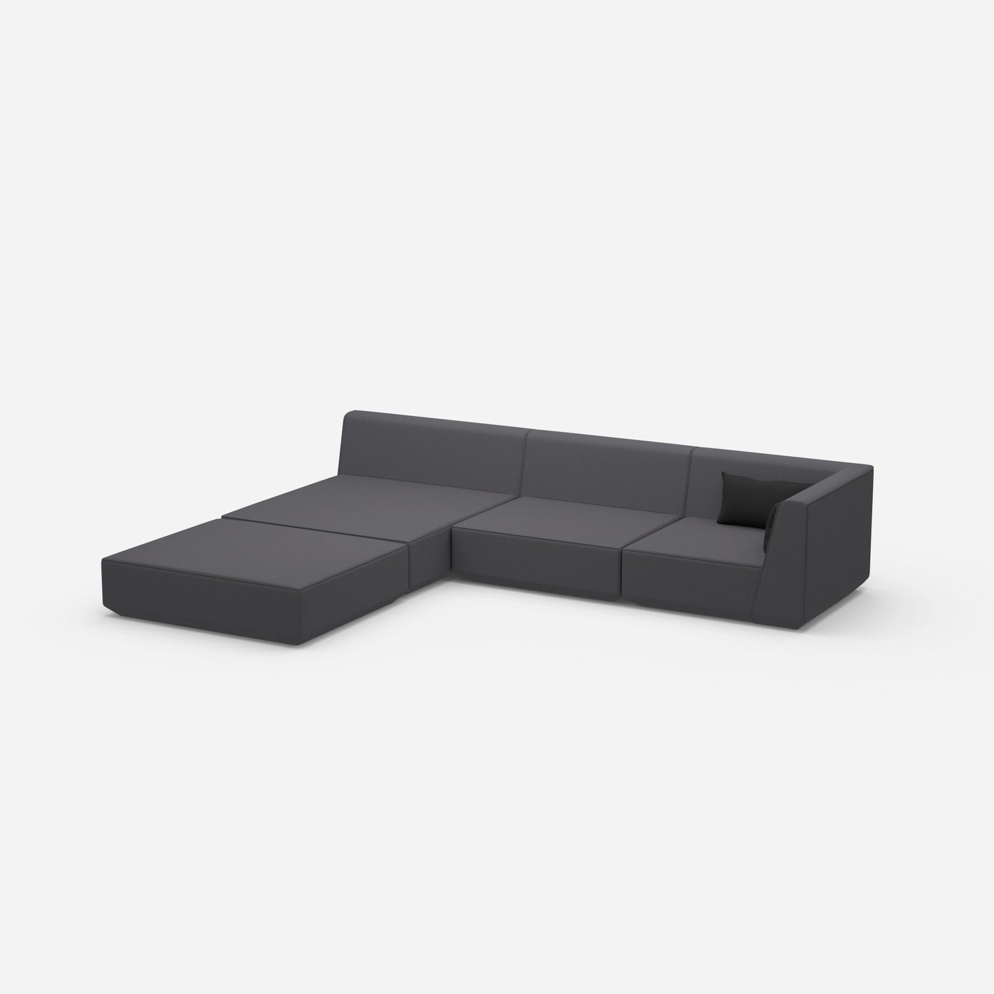 Das Ecksofa breite Liegefläche bietet mehr als nur Sitzgelegenheit. Es ist ein Ecksofa, das sich durch seine modulare Struktur auszeichnet. Mit vier Sofamodulen, darunter zwei Rückenmodule, ein Poufmodul und ein rechtes Eckmodul, passt es sich flexibel an Ihre Bedürfnisse an. Ein Doppelkissen ergänzt das Ensemble und sorgt für zusätzlichen Komfort.