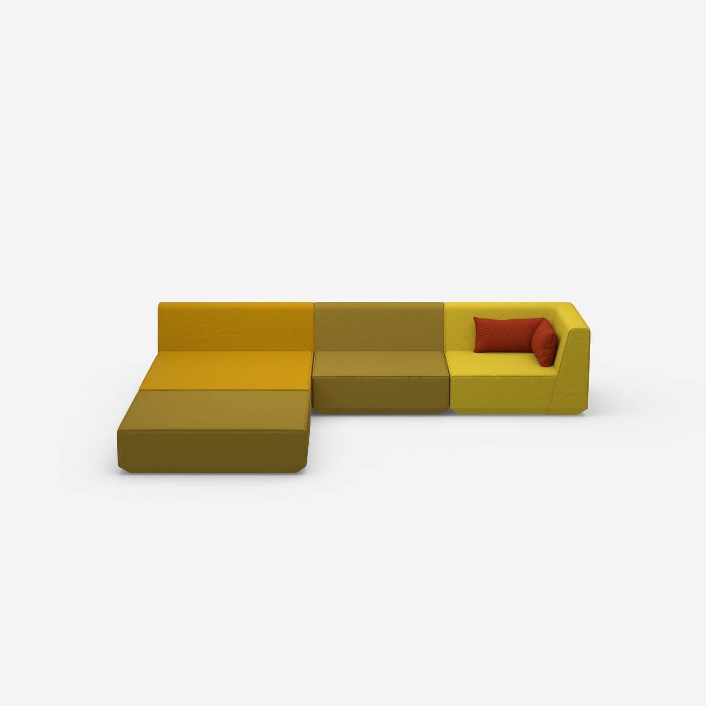 Modulares Cubit Sofa mit zwei nebeneinander stehenden Sitzelementen in kräftigem Gelb und Blau