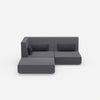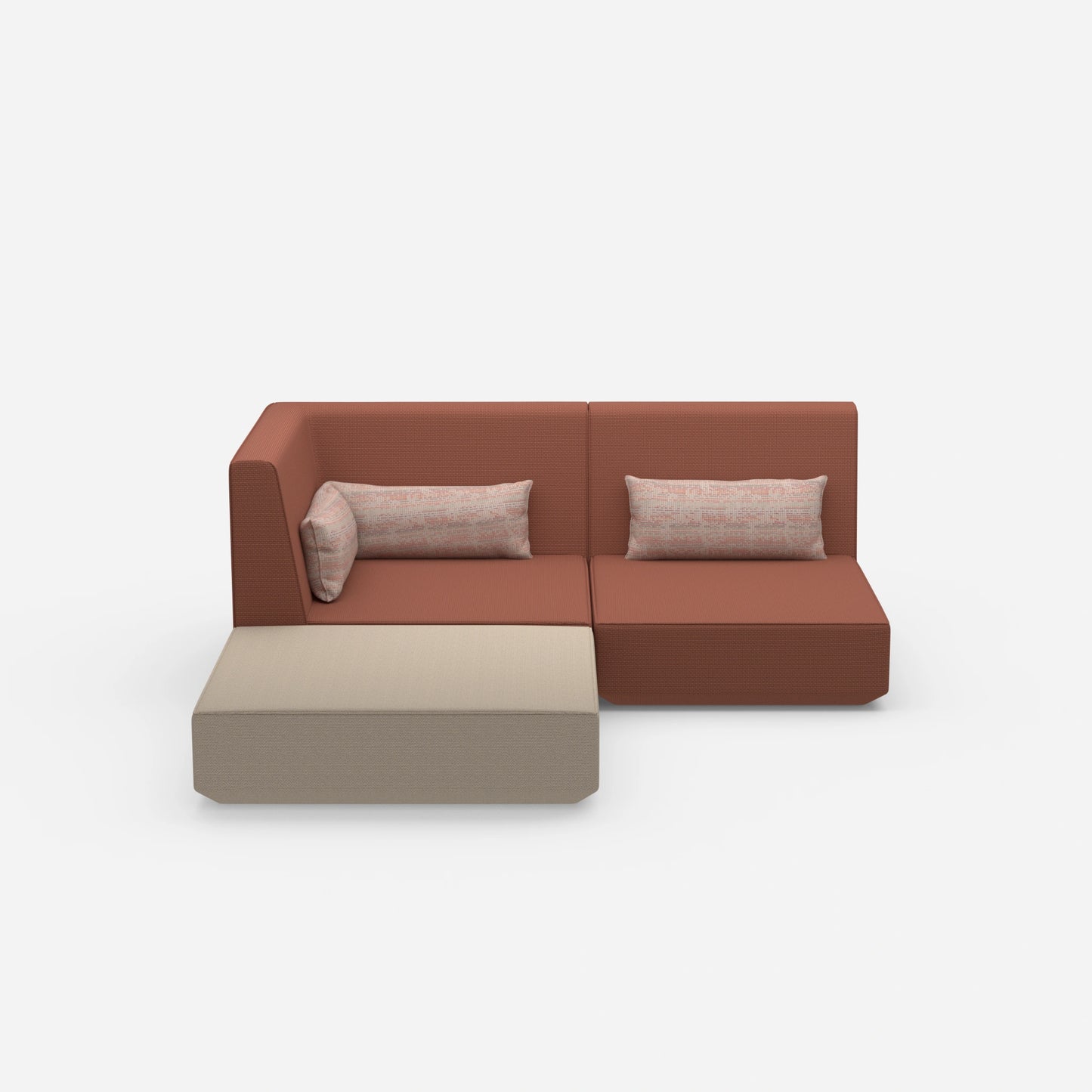 Dieses Sofa überzeugt durch seine modulare Struktur. Ein Poufmodul und ein Doppelkissen schaffen flexible Sitzmöglichkeiten. Das Eckmodul links verbindet sich harmonisch mit dem Rückenmodul. Diese Kombination sorgt für eine kompakte und dennoch offene Gestaltung. Die Vielseitigkeit dieses Sofas passt sich jeder Wohnsituation an.