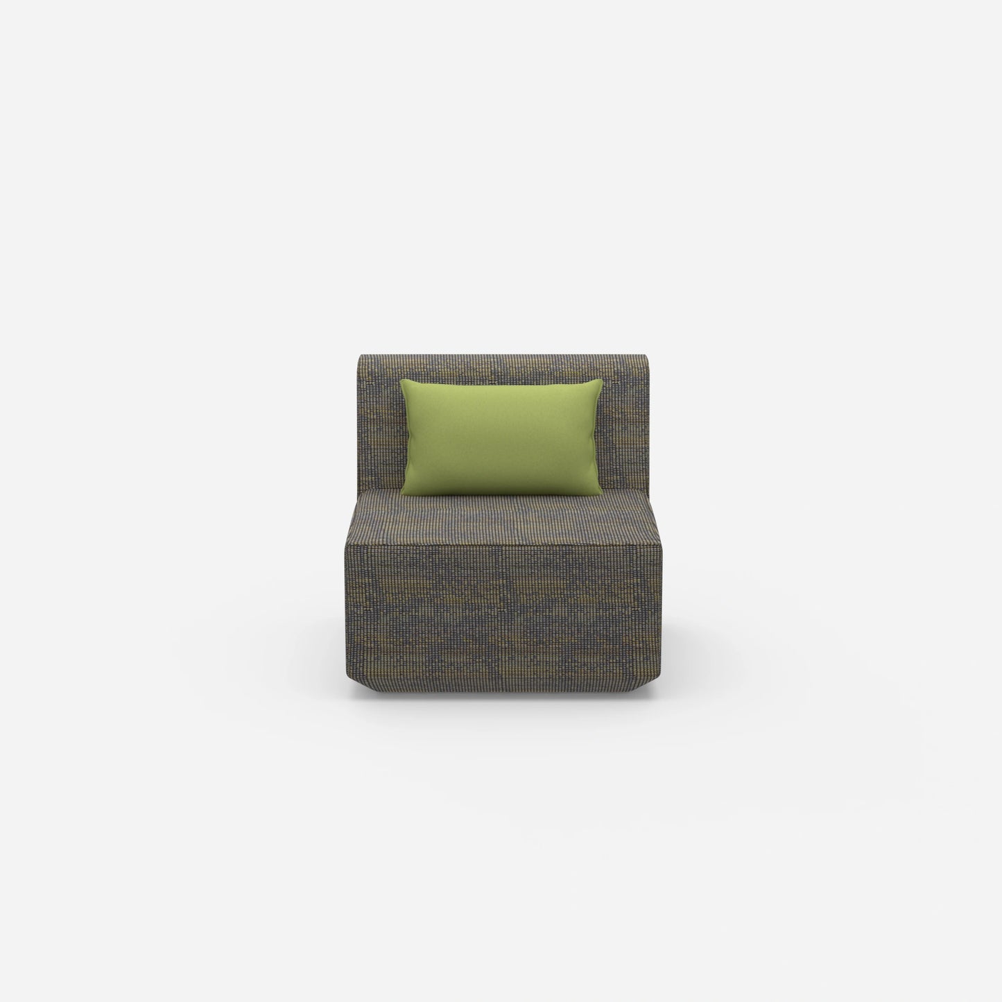 Verschieden konfigurierte Cubit Sofa Module in einem großen, offenen Raum – zeigt die Vielfalt an Kombinationsmöglichkeiten und Farben