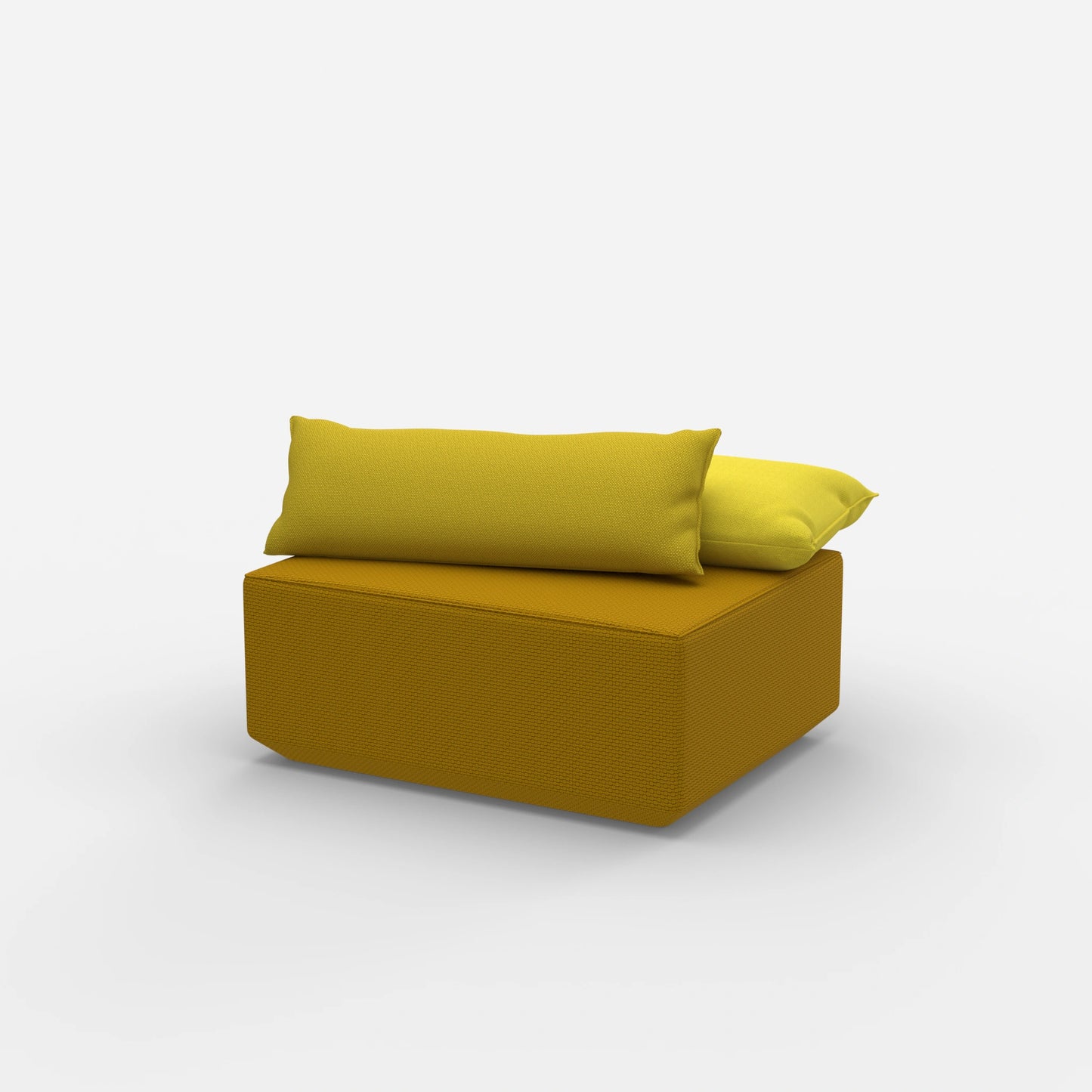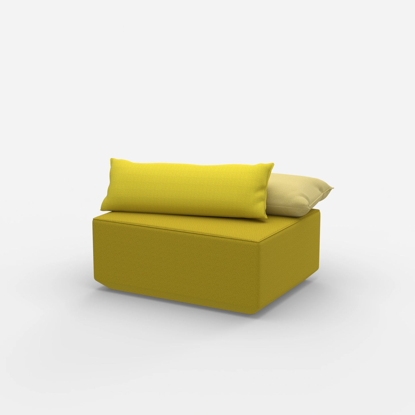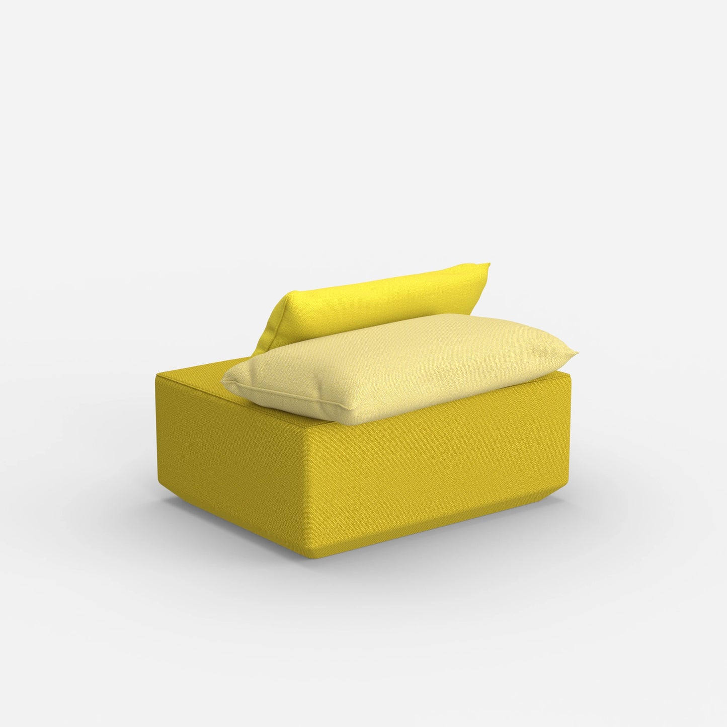 Der moderne gelbe Pouf ist ein vielseitiges Möbelstück aus der Kategorie der Poufs. Es besteht aus einem einzigen Modul, das zwei Kissen und ein Poufmodul vereint. Diese modulare Struktur ermöglicht flexible Platzierungsmöglichkeiten. Du kannst es offen arrangieren oder kompakt zusammenstellen.