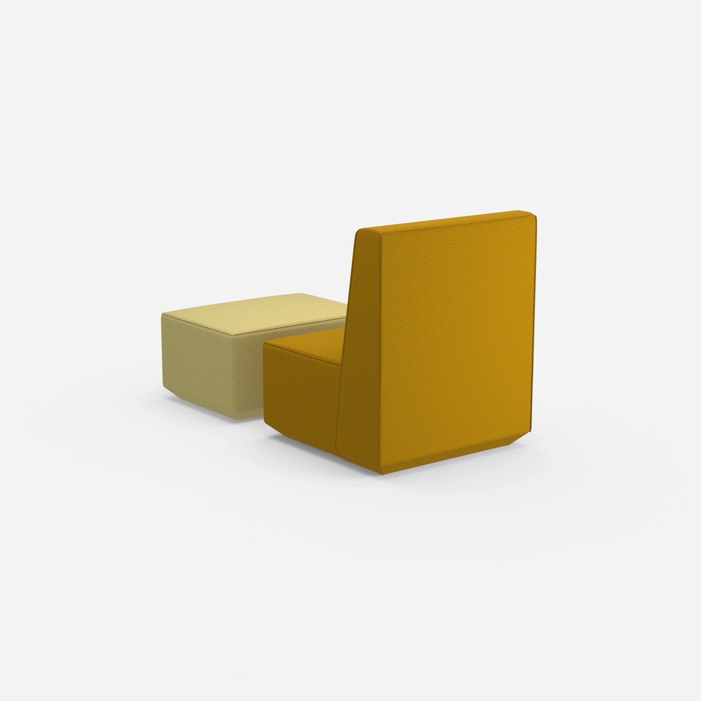 Modulares Cubit Sofa mit zwei nebeneinander stehenden Sitzelementen in kräftigem Gelb und Blau