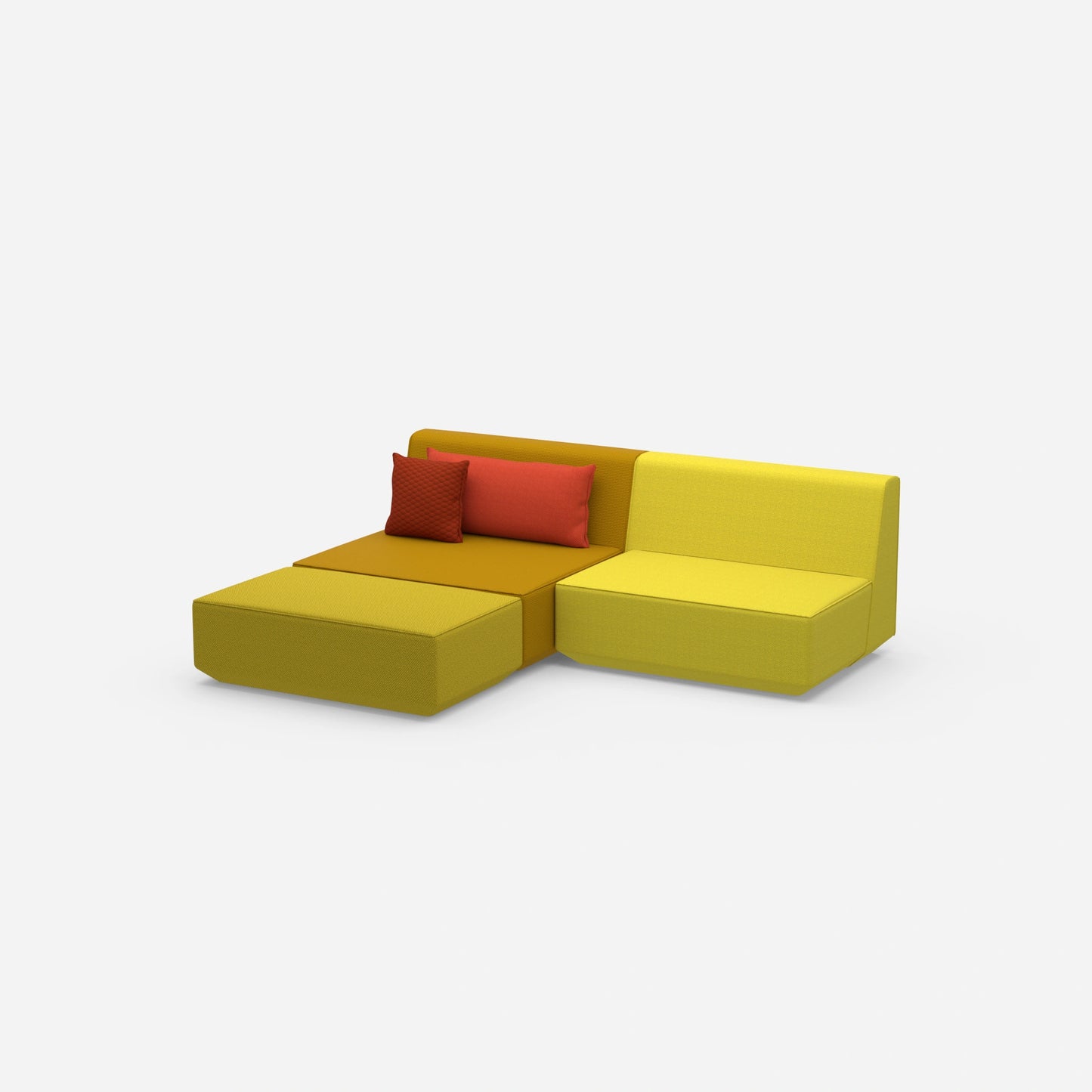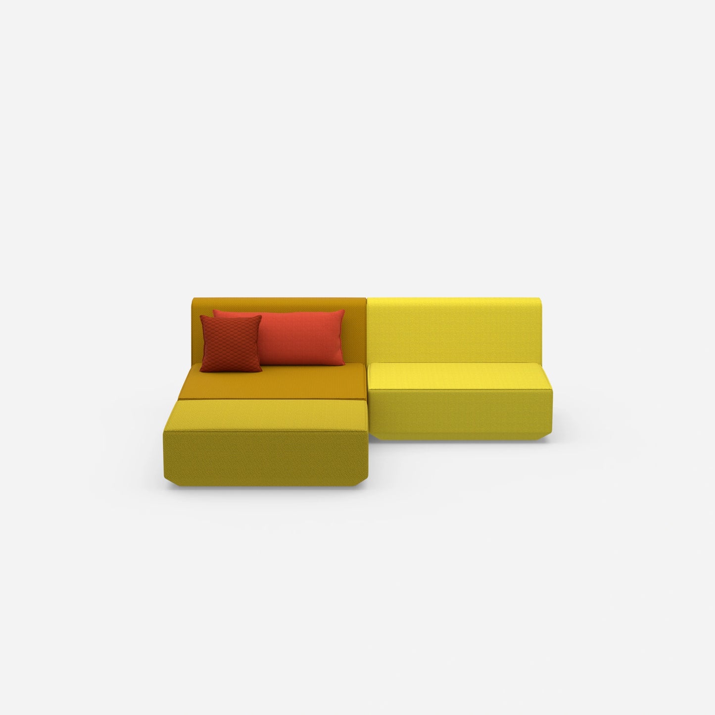 Modulares Cubit Sofa mit zwei nebeneinander stehenden Sitzelementen in kräftigem Gelb und Blau