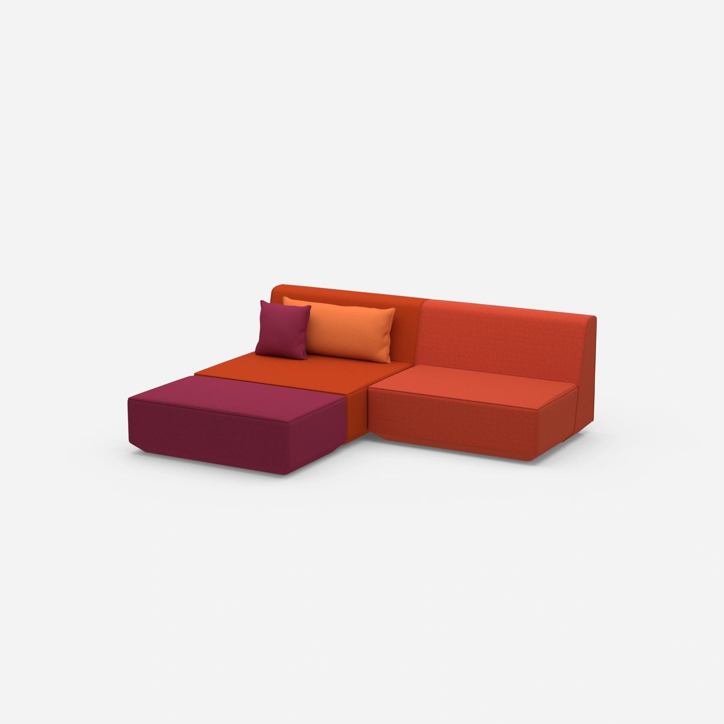 Das Modulare Ecksofa ohne Armlehne bringt frischen Wind in Ihre Wohnlandschaft. Dieses vielseitige Sofa kombiniert ein Poufmodul mit zwei Kissen und Rückenmodulen. Die modulare Struktur ermöglicht flexible Anordnungen, die sich mühelos an Ihre Bedürfnisse anpassen.