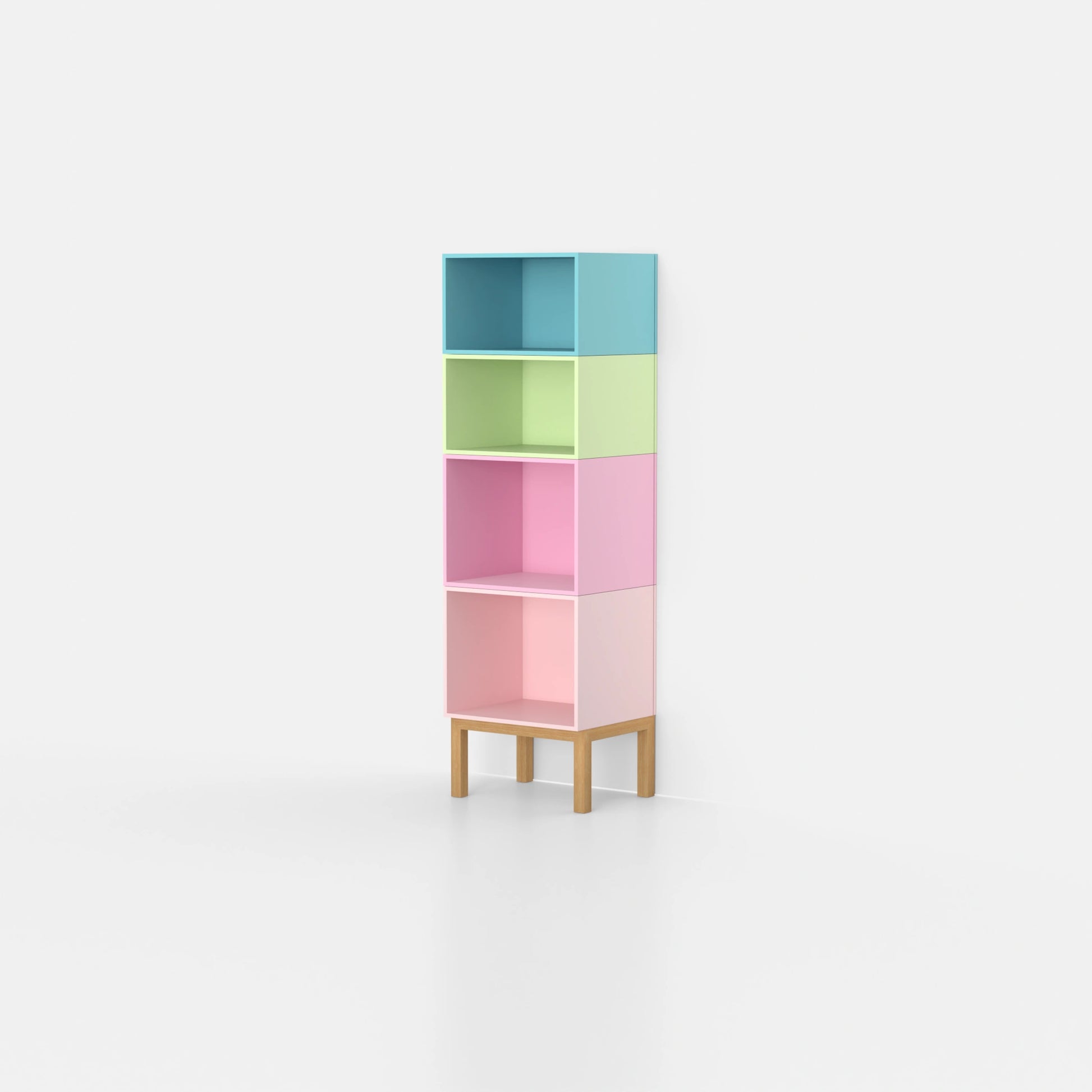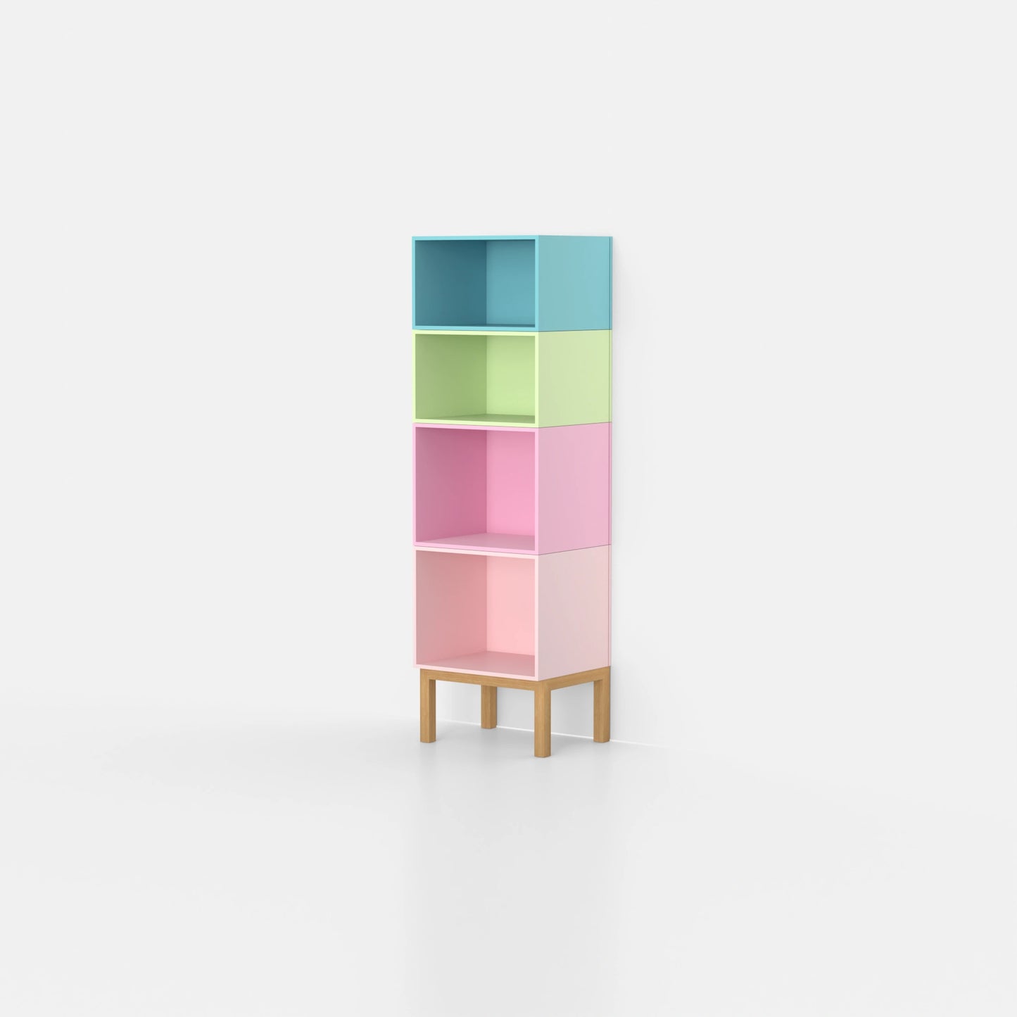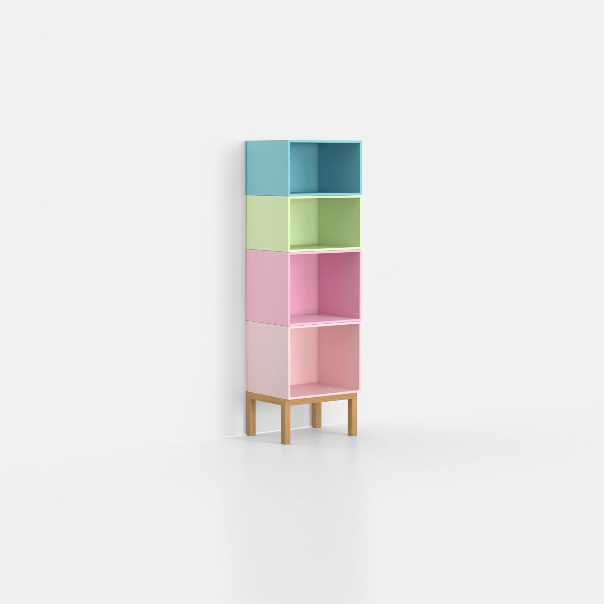 Regalaufbau mit verschiedenen Cubit Modulen in Rosa- und Naturtönen, kombiniert mit Türmodulen und offenen Modulen