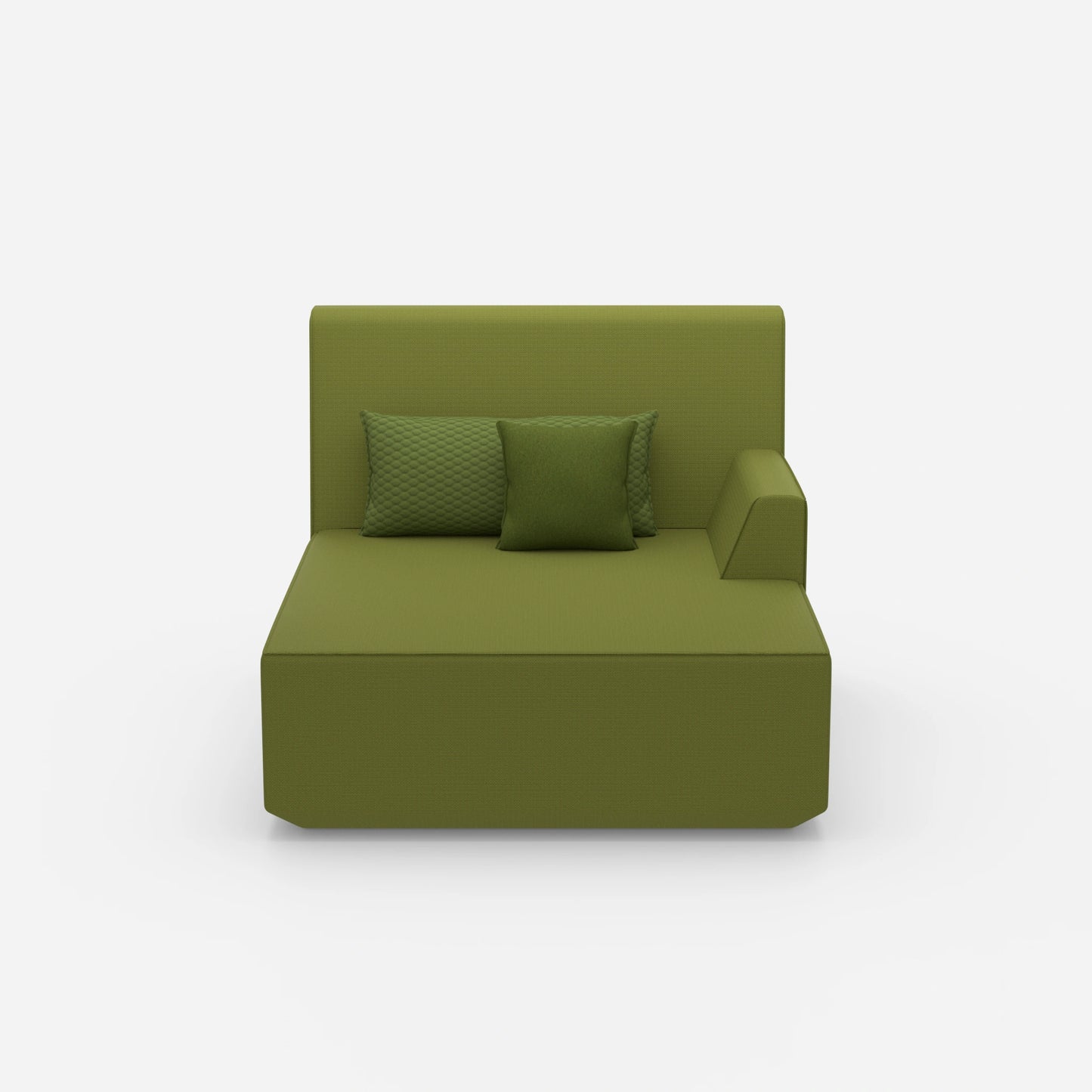Die Recamiere für zwei Personen verwandelt Ihr Wohnzimmer in eine stilvolle Oase. Dieses Möbelstück kombiniert ein elegantes Recamierenmodul mit zwei komfortablen Kissen. Die Struktur ist kompakt und lädt zum Entspannen ein.
