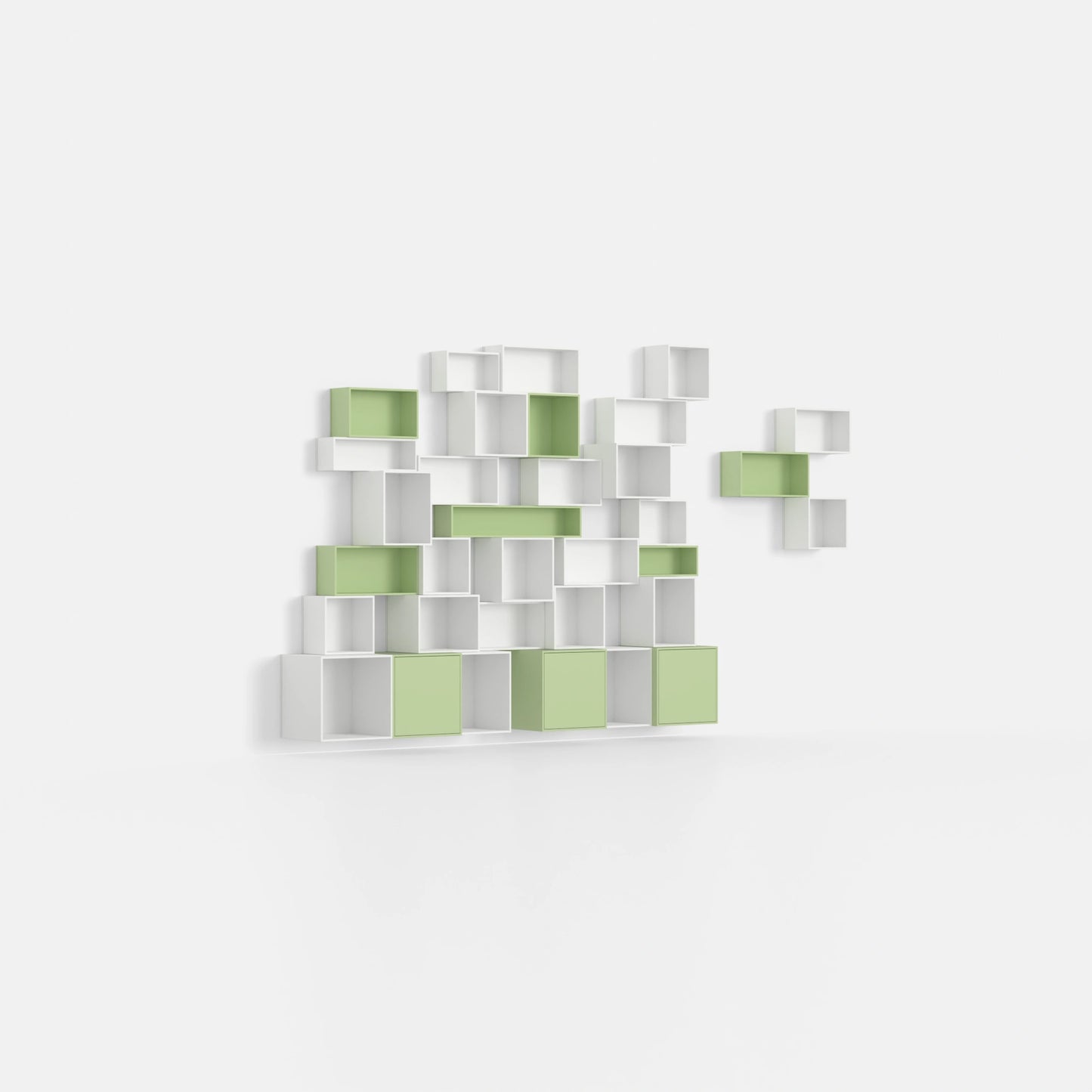 Weiß schafft Klarheit, während Pfefferminz Hell lebendige Akzente setzt. Brauchen Sie mehr Ordnung? Dieses Regalsystem kombiniert Stauraum mit ästhetischem Reiz. Es fügt sich diskret in minimalistische Räume ein, bringt aber auch Schwung in bunte Einrichtungen.