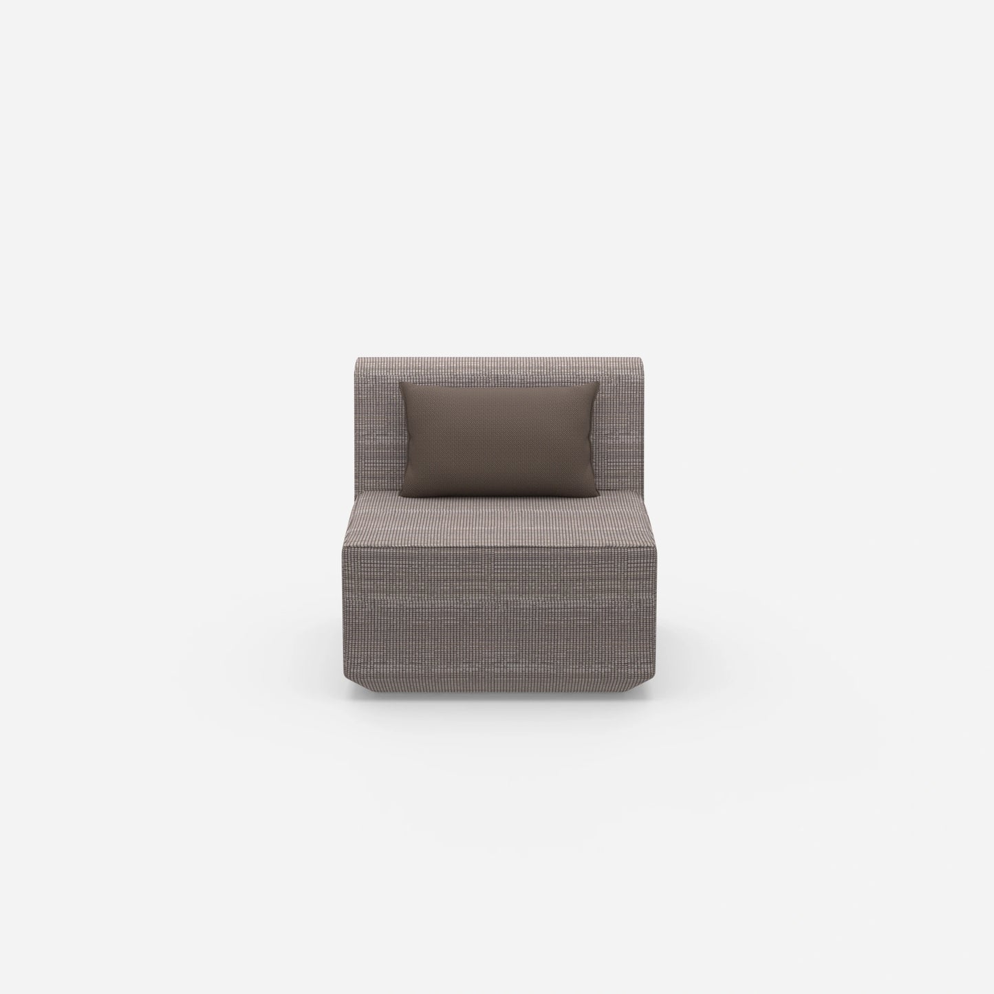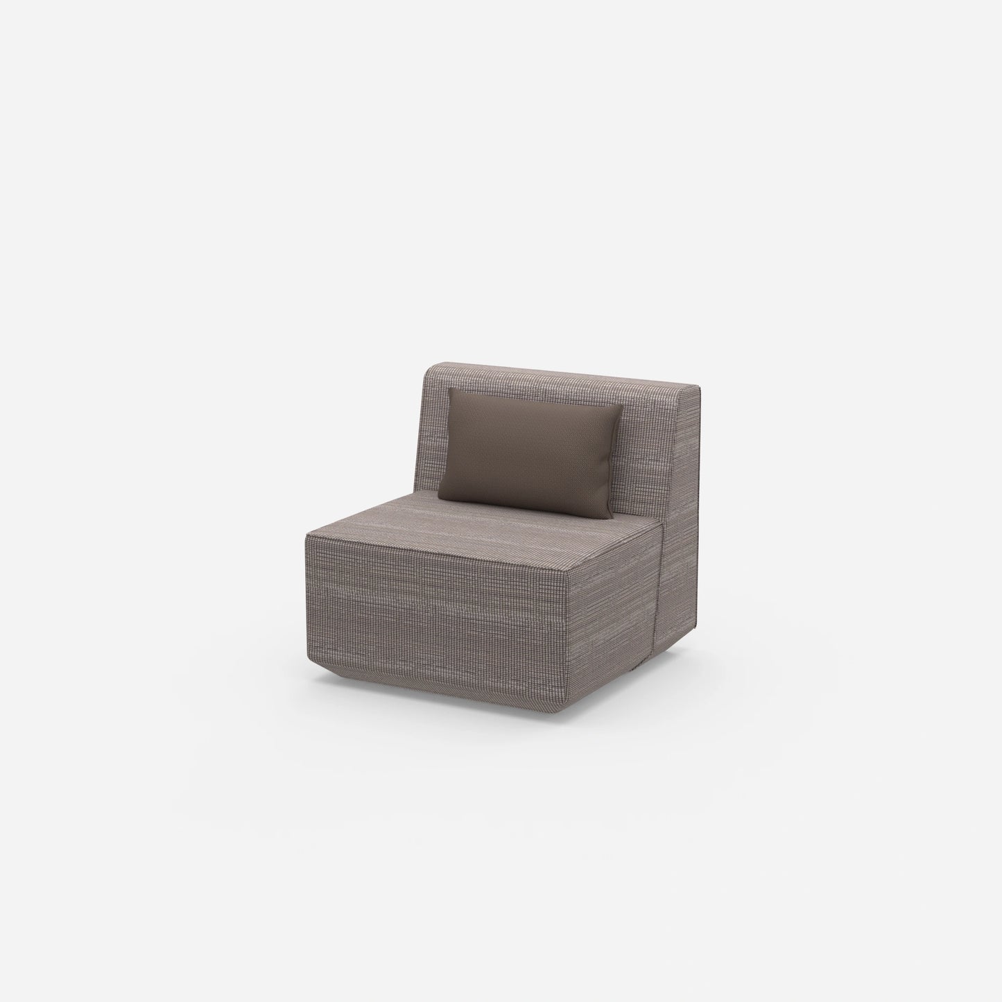Der Sessel für Raum klein präsentiert sich als vielseitiges Möbelstück in der Kategorie der Sessel. Mit einem einzigen Modul, bestehend aus einem Kissen und einem Rückenmodul, passt er sich jeder Umgebung an. Die kompakte Struktur ermöglicht flexible Anordnungsmöglichkeiten.