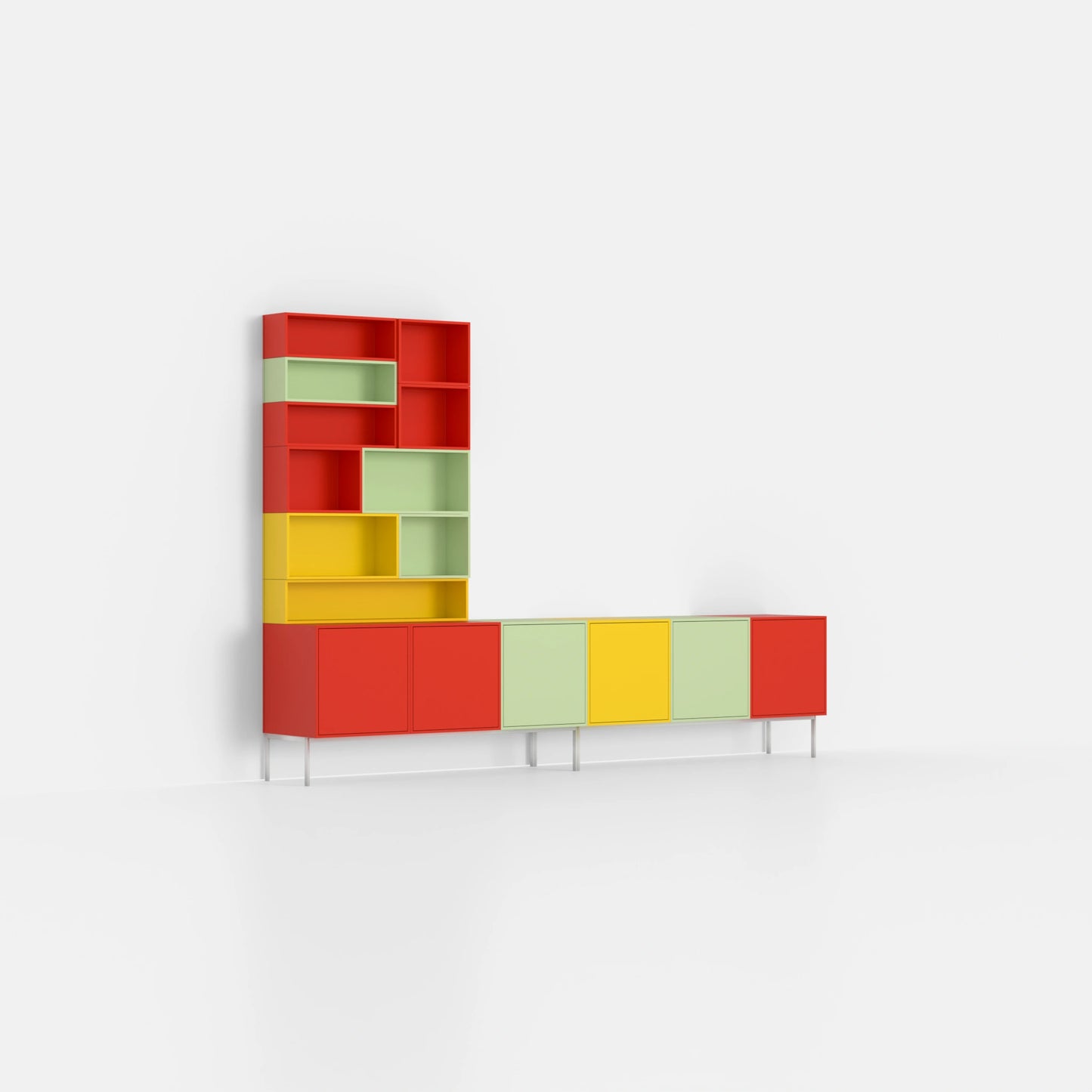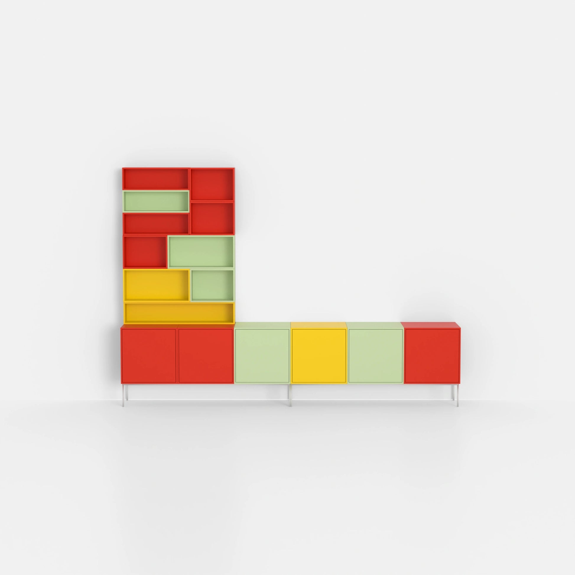 Das Sideboard RK1104 verwandelt Ihren Raum. Es bietet 18 Module auf 240 cm Breite, 172 cm Höhe und 37 cm Tiefe. Brauchen Sie mehr Stauraum? Hier finden Sie ihn. Die lebendigen Farben – Weiß, Korallen-Rot, Kanarien-Gelb und Pfefferminz hell – eröffnen stilvolle Gestaltungsmöglichkeiten. Weiß bringt Helligkeit, während Korallen-Rot und Kanarien-Gelb Energie und Freude ausstrahlen. Pfefferminz hell beruhigt und balanciert. Ob im Wohnzimmer, Schlafzimmer oder Büro – das Sideboard RK1104 ist flexibel und stark. Wählen Sie es für Funktion und Stil, um Ihren Raum einzigartig zu machen.