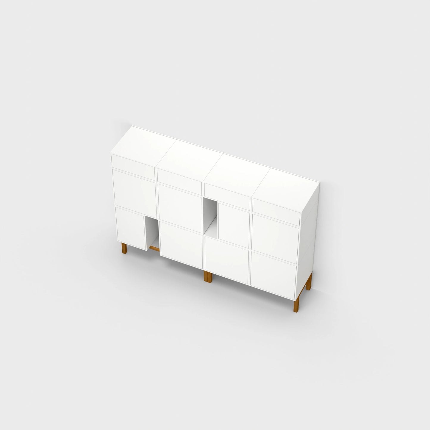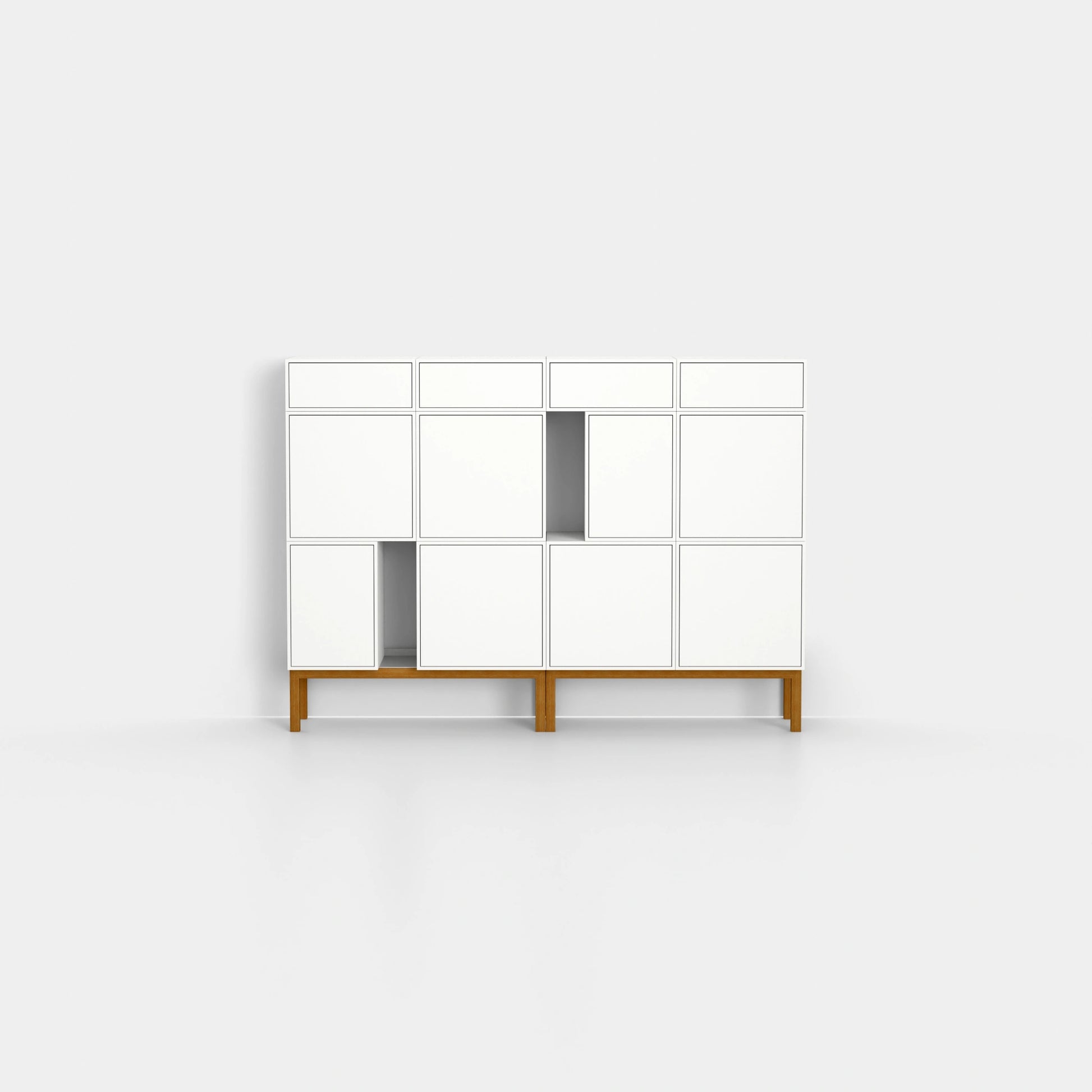 Brauchen Sie mehr Ordnung? Die 14 Module des Sideboards RK1115 bieten Platz für Bücher, Dekorationen und Alltagsgegenstände. Sein klares Design harmoniert mit verschiedenen Farbschemata und Materialien und macht ihn vielseitig einsetzbar.