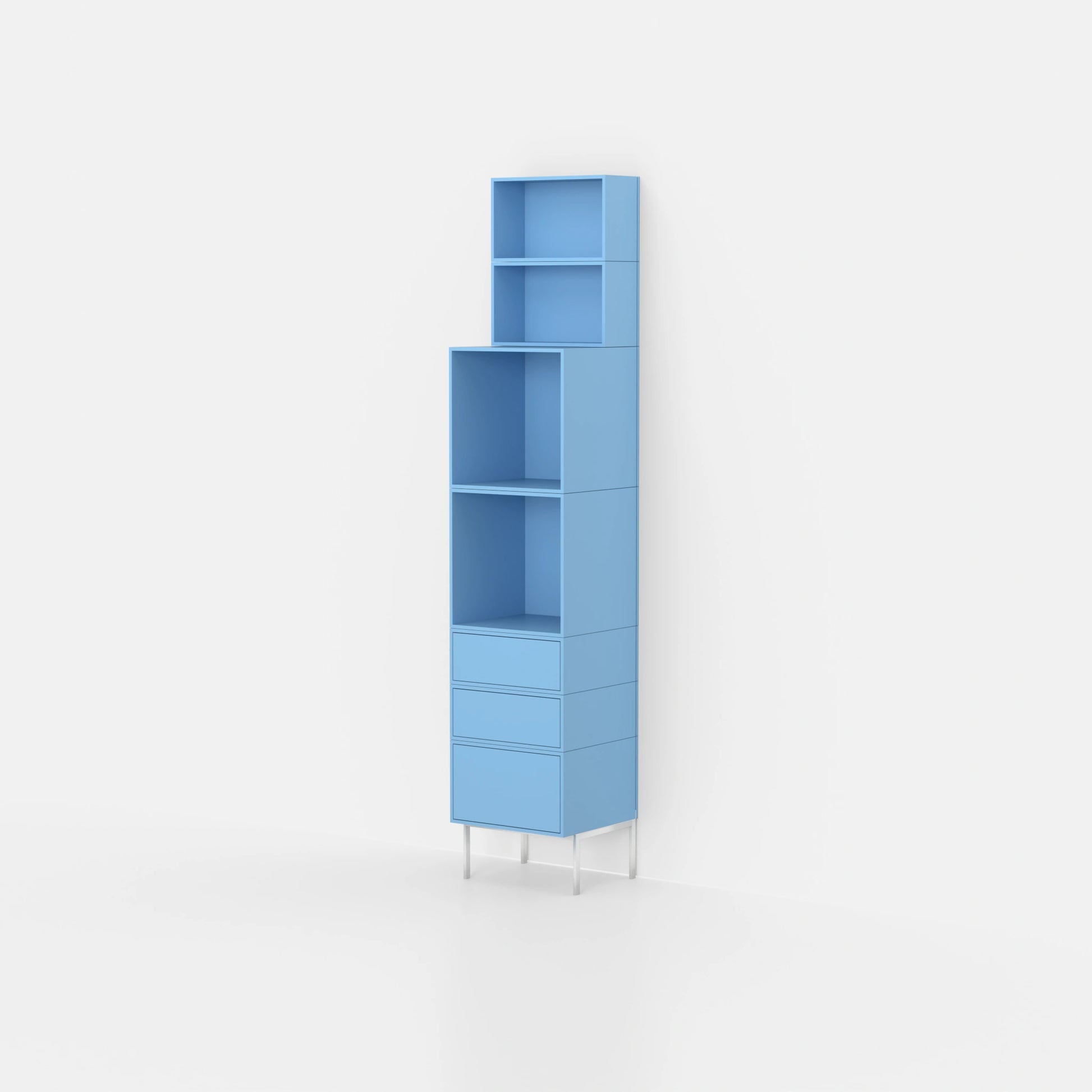 Das Sideboard RK1156 überzeugt durch modernes Design und clevere Aufteilung. Acht Module bieten vielseitigen Stauraum. Mit 37 cm Tiefe, 188 cm Höhe und 40 cm Breite passt es sich flexibel Ihrem Wohnraum an. Verfügbar in Weiß und Eis-Blau bringt es Frische und Ruhe in Ihr Zuhause.