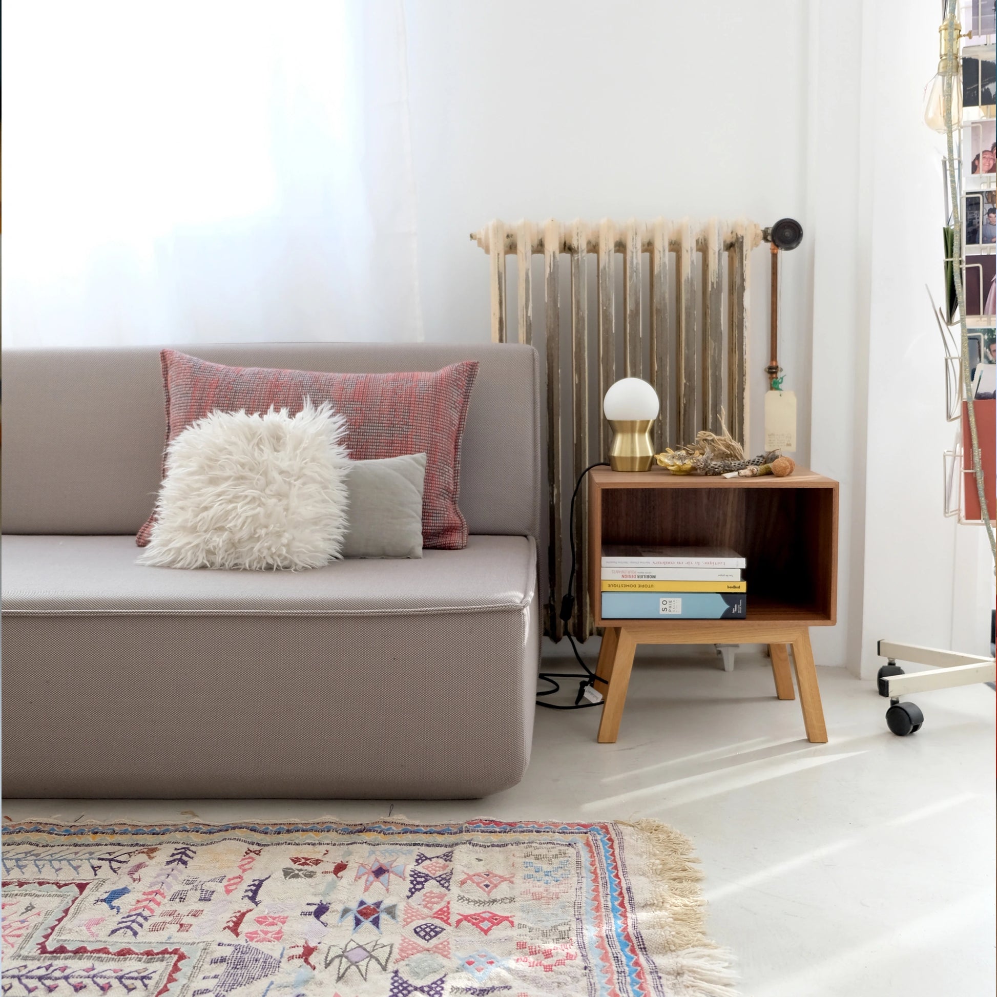 Die Regalmodule orientieren sich an den gängigen Literatur- und Musikformaten, z.B. Din A4, A5, Aktenordnern, Atlanten, Bildbänden & Schallplatten. Dieses vom Inhalt kommende Größen-Raster ermöglicht einen einzigartigen skulpturalen Look.