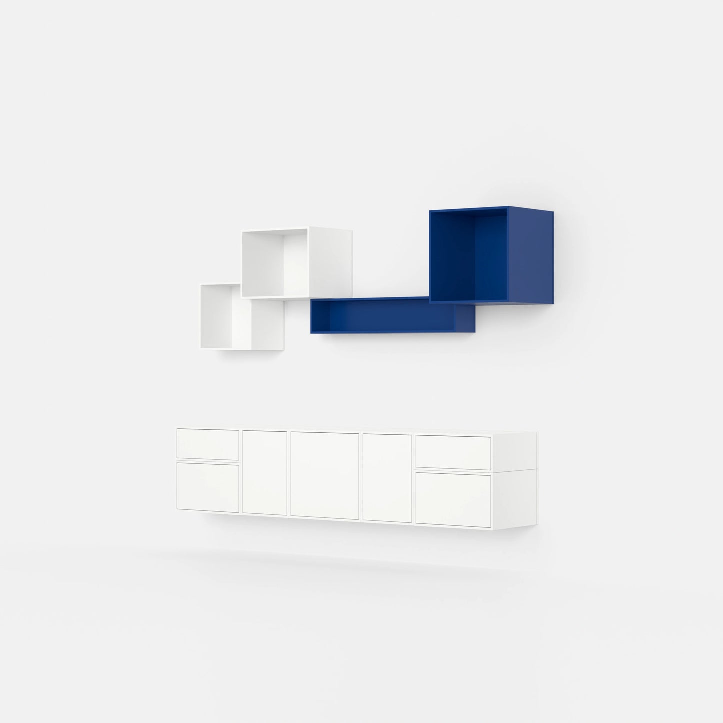 Das Sideboard RK250 bietet eine moderne Stauraumlösung mit optimalen Proportionen: 184 cm breit, 136 cm hoch und 37 cm tief. Elf funktionale Module garantieren effizienten Stauraum und bestechen durch Design. Erhältlich in Weiß und Atlantik-Blau, passt es sich Ihrem Stil an.