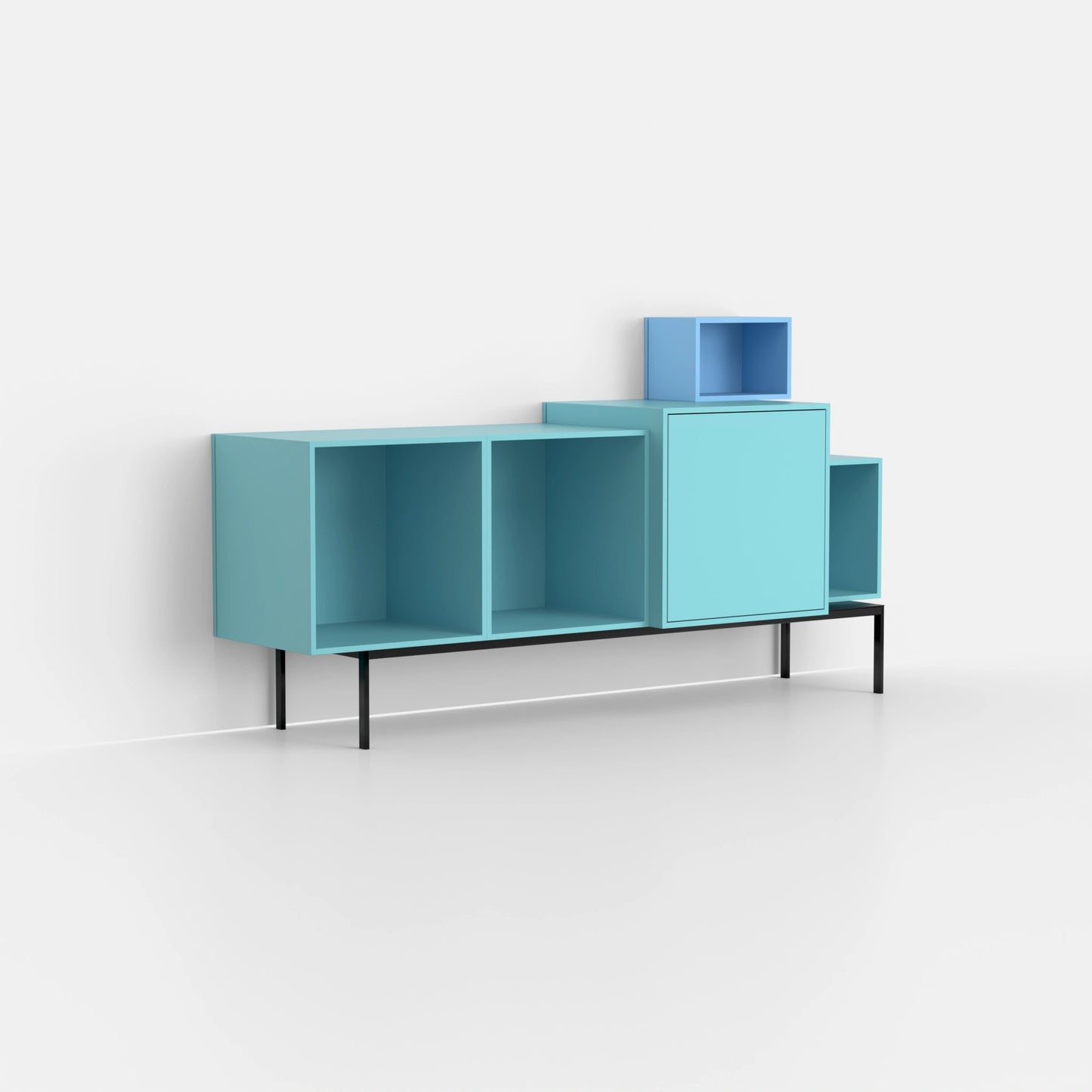 Die Regalmodule orientieren sich an den gängigen Literatur- und Musikformaten, z.B. Din A4, A5, Aktenordnern, Atlanten, Bildbänden & Schallplatten. Dieses vom Inhalt kommende Größen-Raster ermöglicht einen einzigartigen skulpturalen Look.
