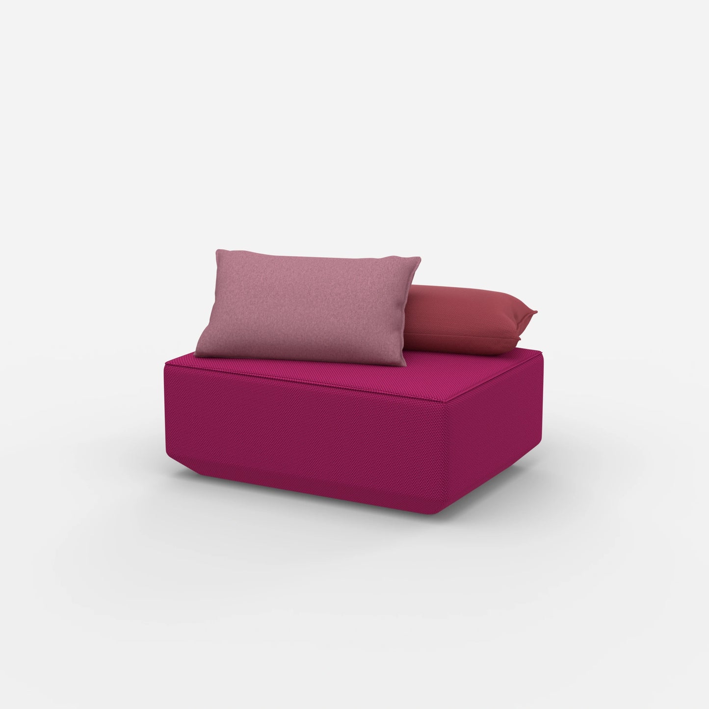 Der Sitzpouf in Rosa bringt frischen Wind in Ihre Einrichtung. Als vielseitiges Mitglied der Pouf-Kategorie bietet er Flexibilität und Stil. Seine modulare Struktur besteht aus zwei Kissen und einem Poufmodul.