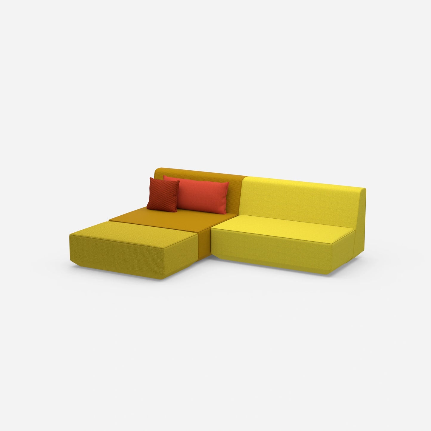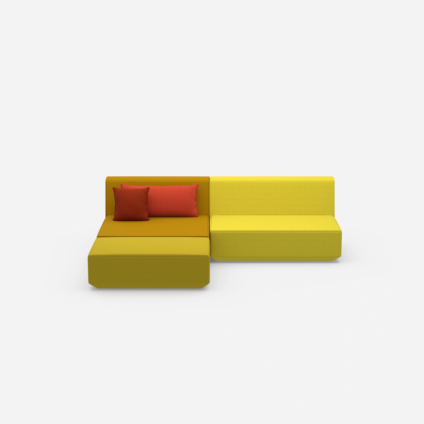 Modulares Cubit Sofa mit zwei nebeneinander stehenden Sitzelementen in kräftigem Gelb und Blau