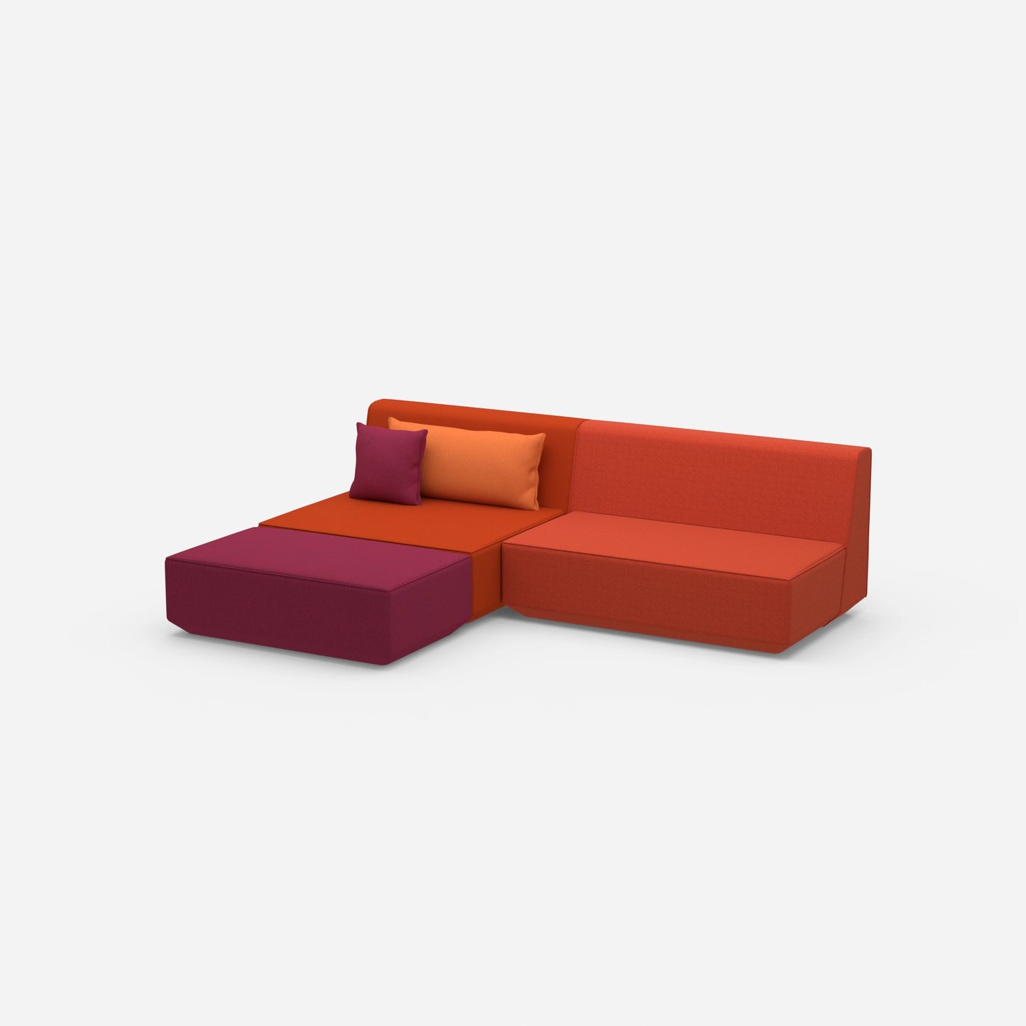 Die Sofaecke ohne Armlehne vereint stilvolle Funktionalität mit dem Charme eines Ecksofas. Drei Module formen die Basis: ein Poufmodul und zwei Rückenmodule, abgerundet durch weiche Kissen. Diese Elemente bieten Flexibilität. Kombinieren Sie sie für eine kompakte Einheit oder gestalten Sie eine offene Sitzlandschaft. Die modulare Struktur passt sich Ihrem Wohnraum an.