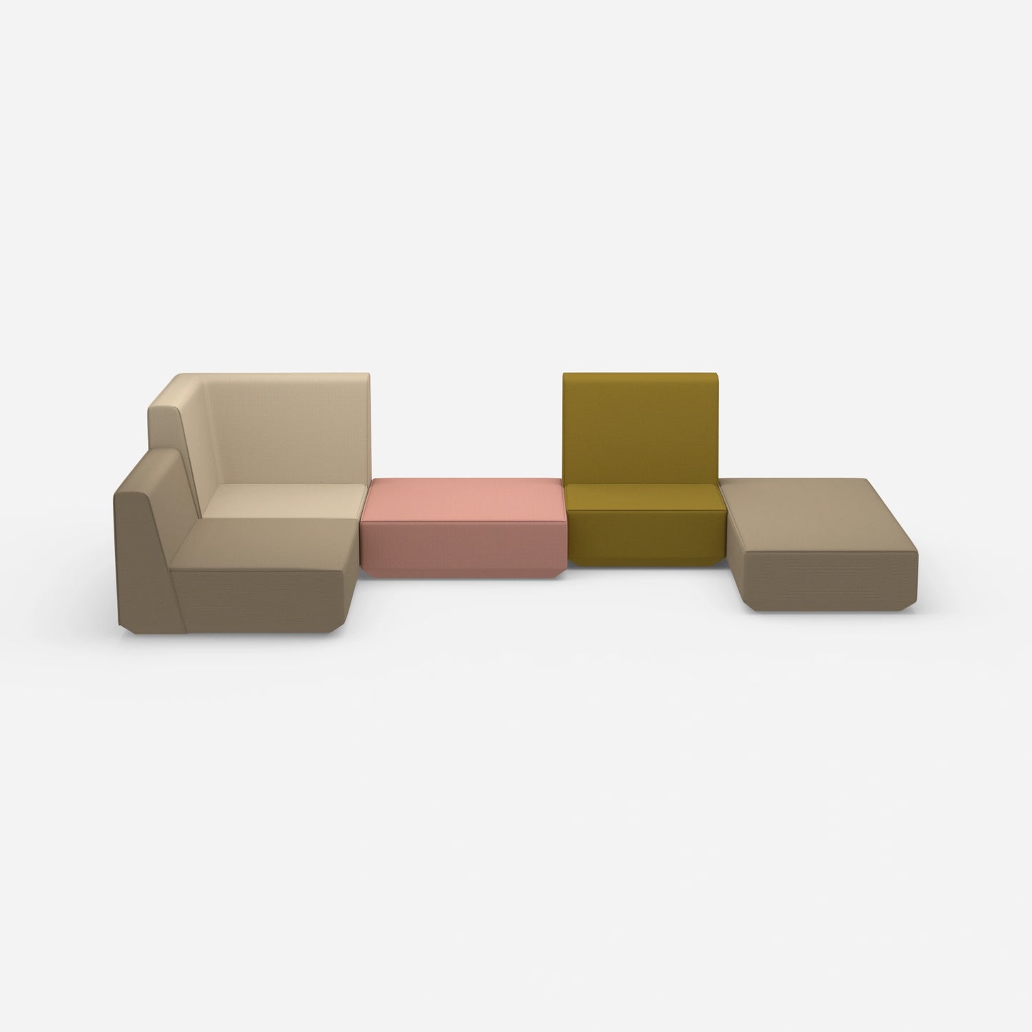 Verschieden konfigurierte Cubit Sofa Module in einem großen, offenen Raum – zeigt die Vielfalt an Kombinationsmöglichkeiten und Farben
