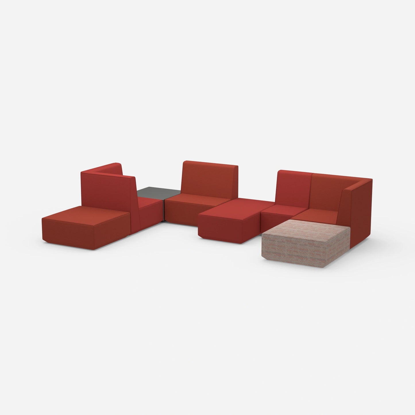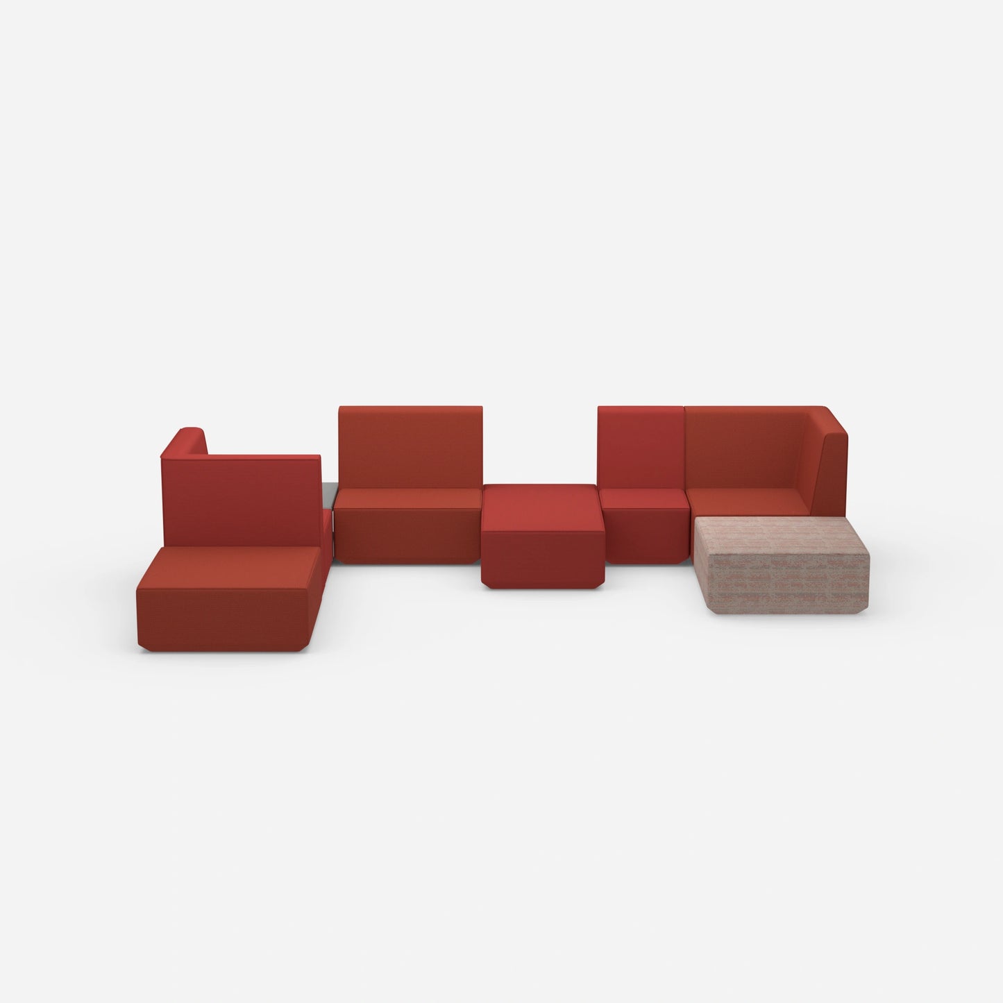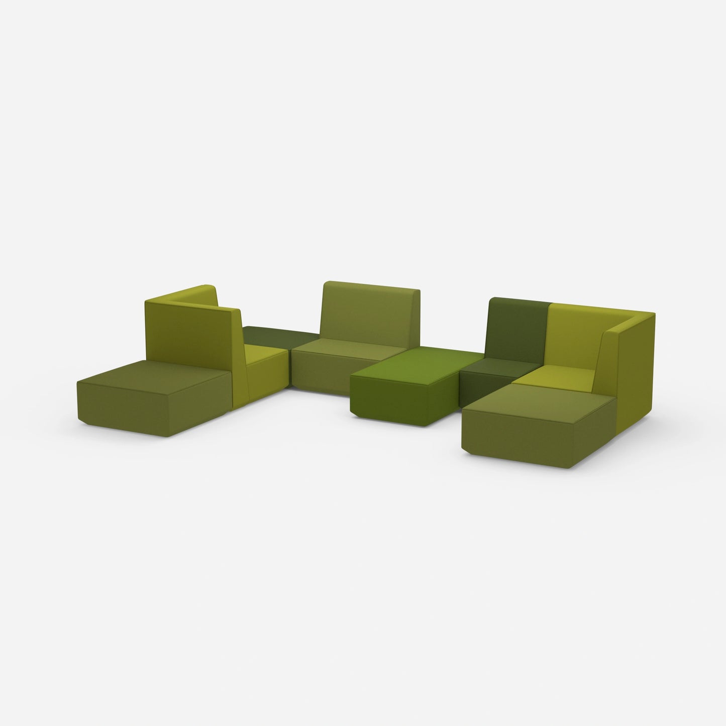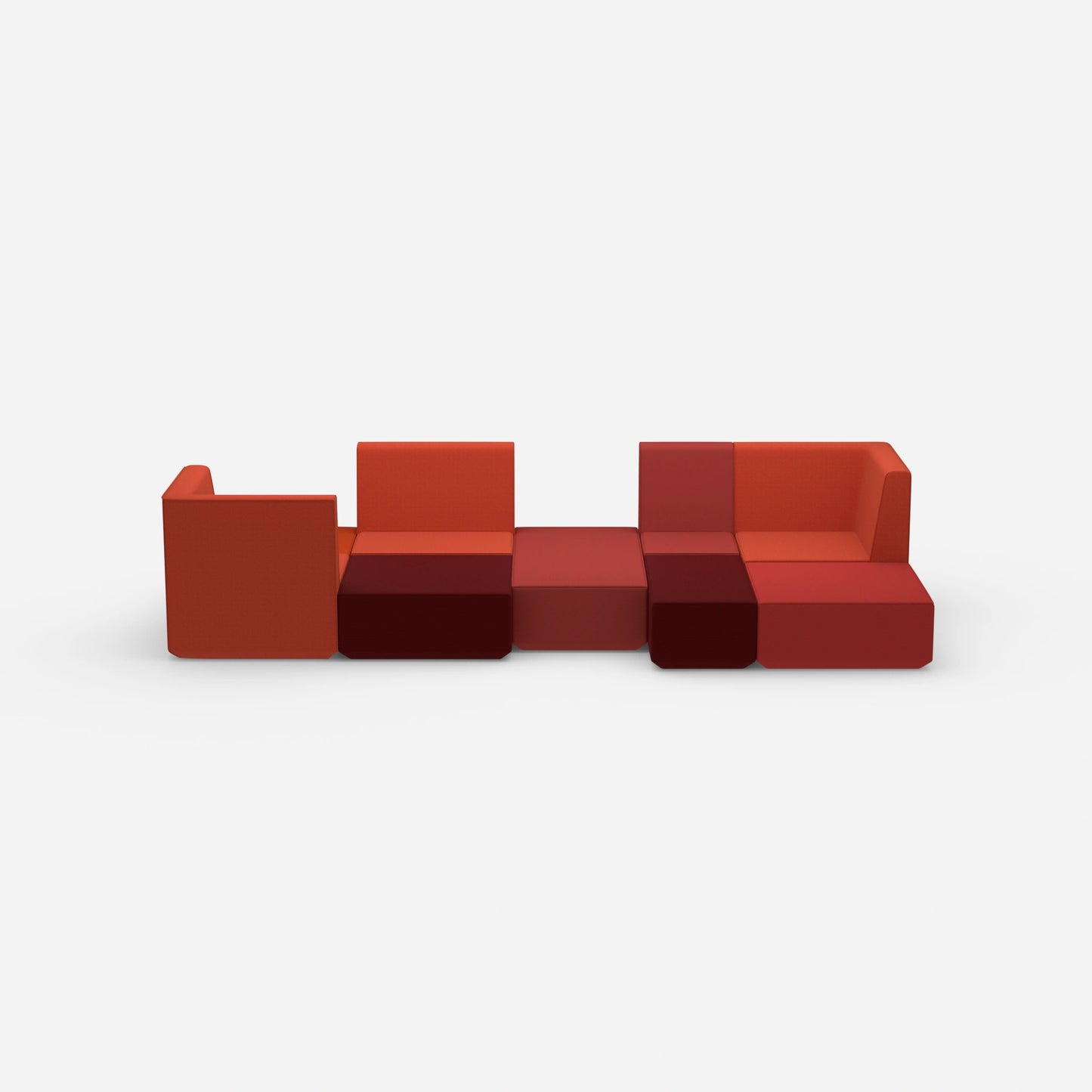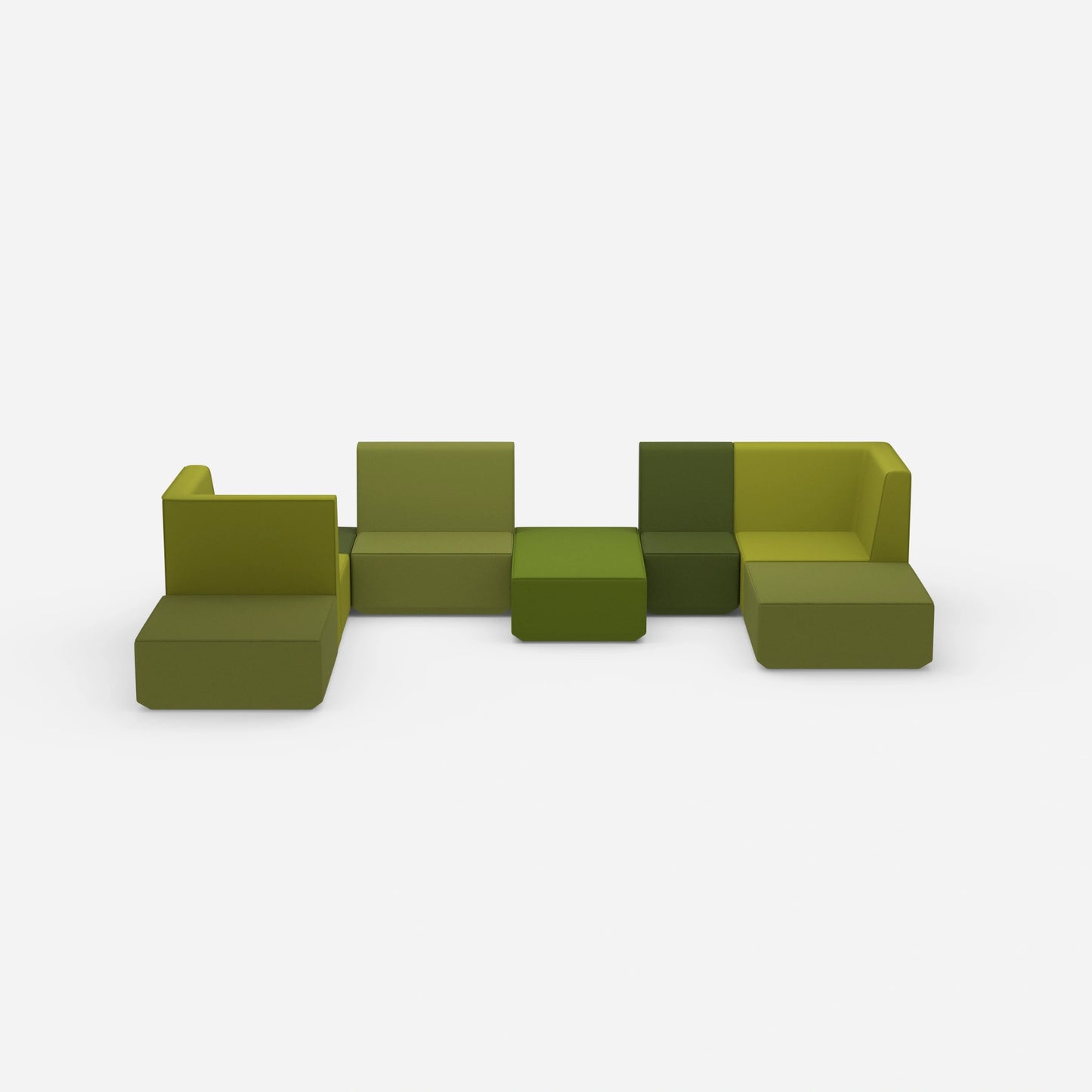 Verschieden konfigurierte Cubit Sofa Module in einem großen, offenen Raum – zeigt die Vielfalt an Kombinationsmöglichkeiten und Farben