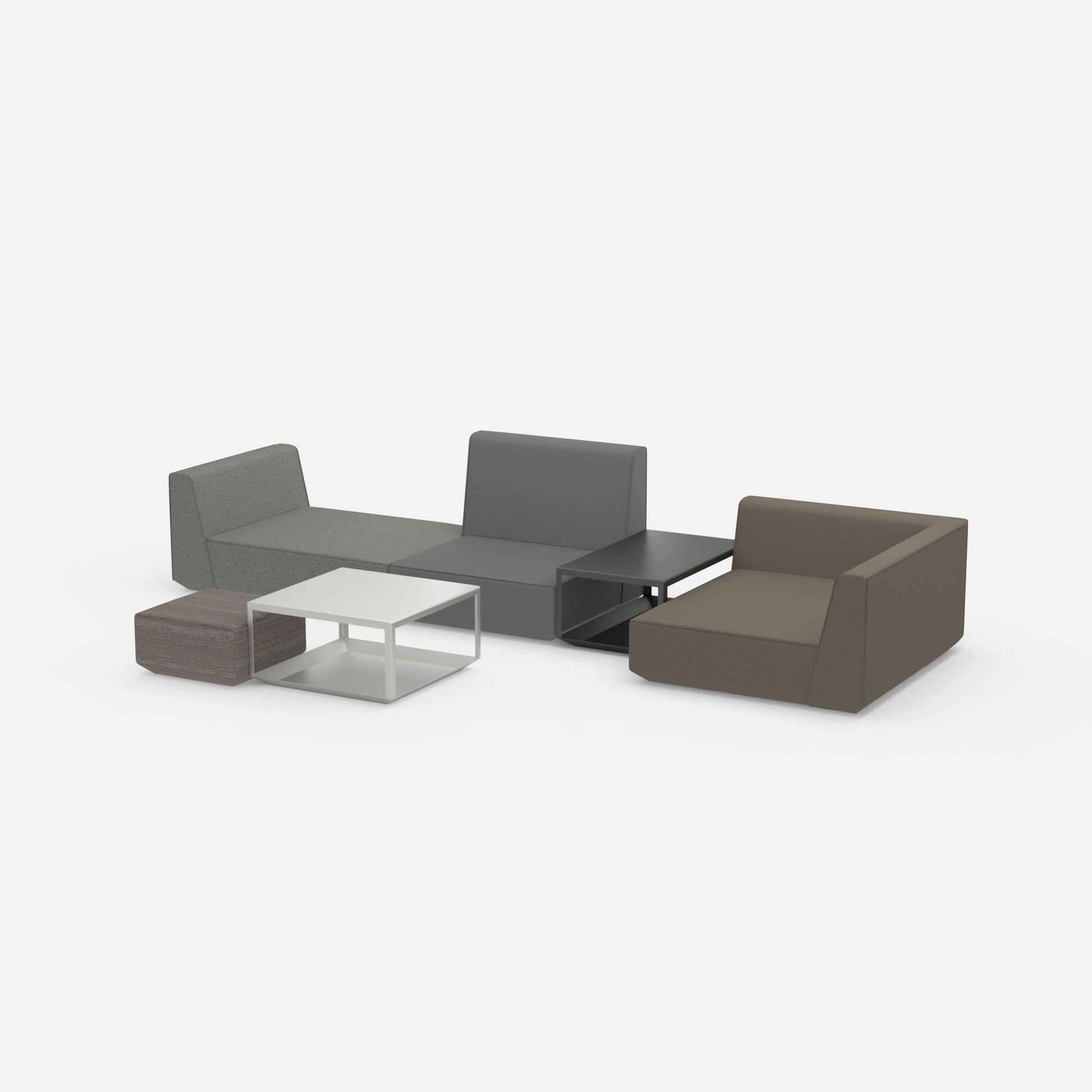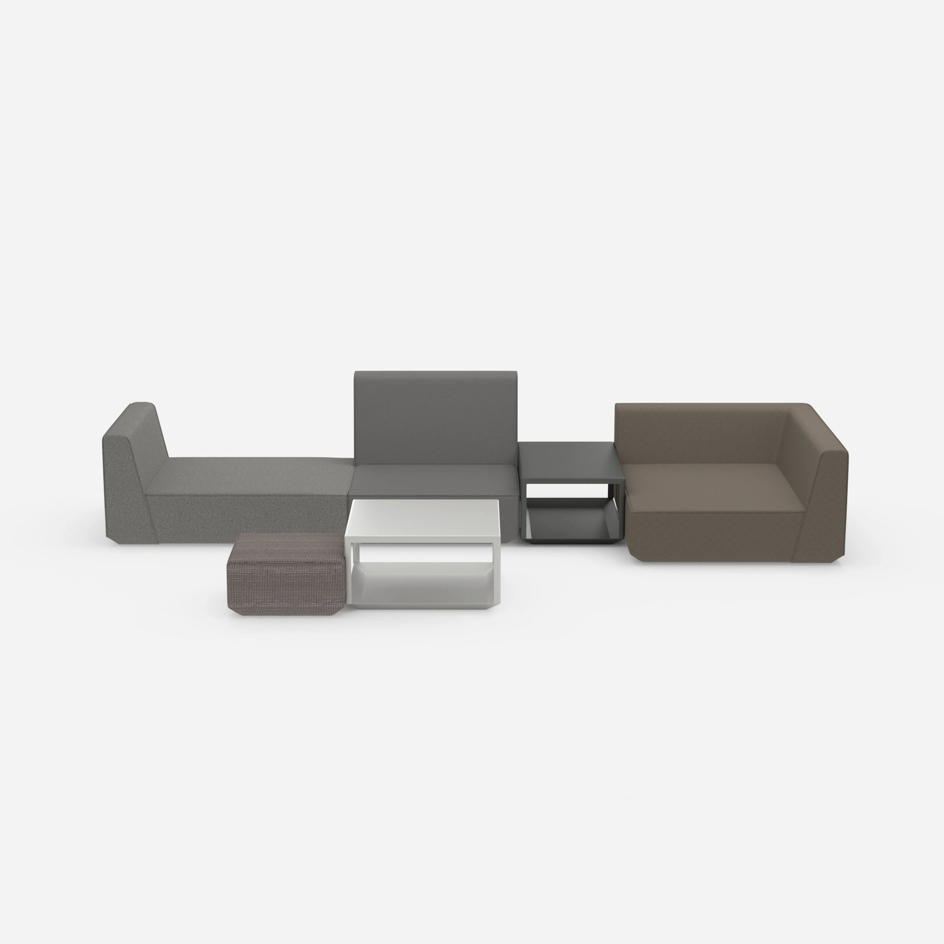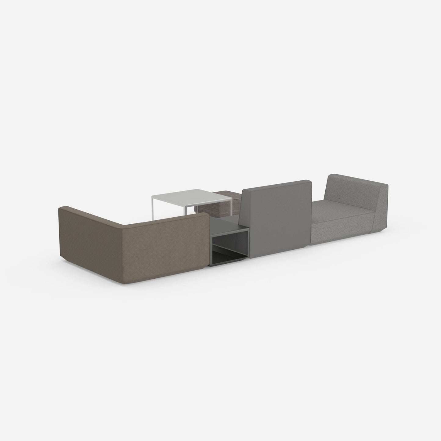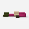 Verschieden konfigurierte Cubit Sofa Module in einem großen, offenen Raum – zeigt die Vielfalt an Kombinationsmöglichkeiten und Farben