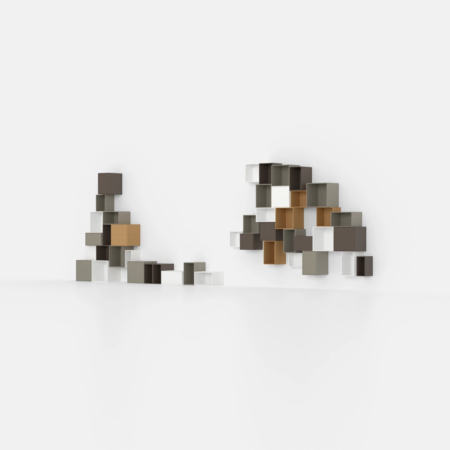 Entdecken Sie das Cubit Regalsystem: Werkzeugfreier Aufbau, dank Nut und Feder-Prinzip.