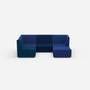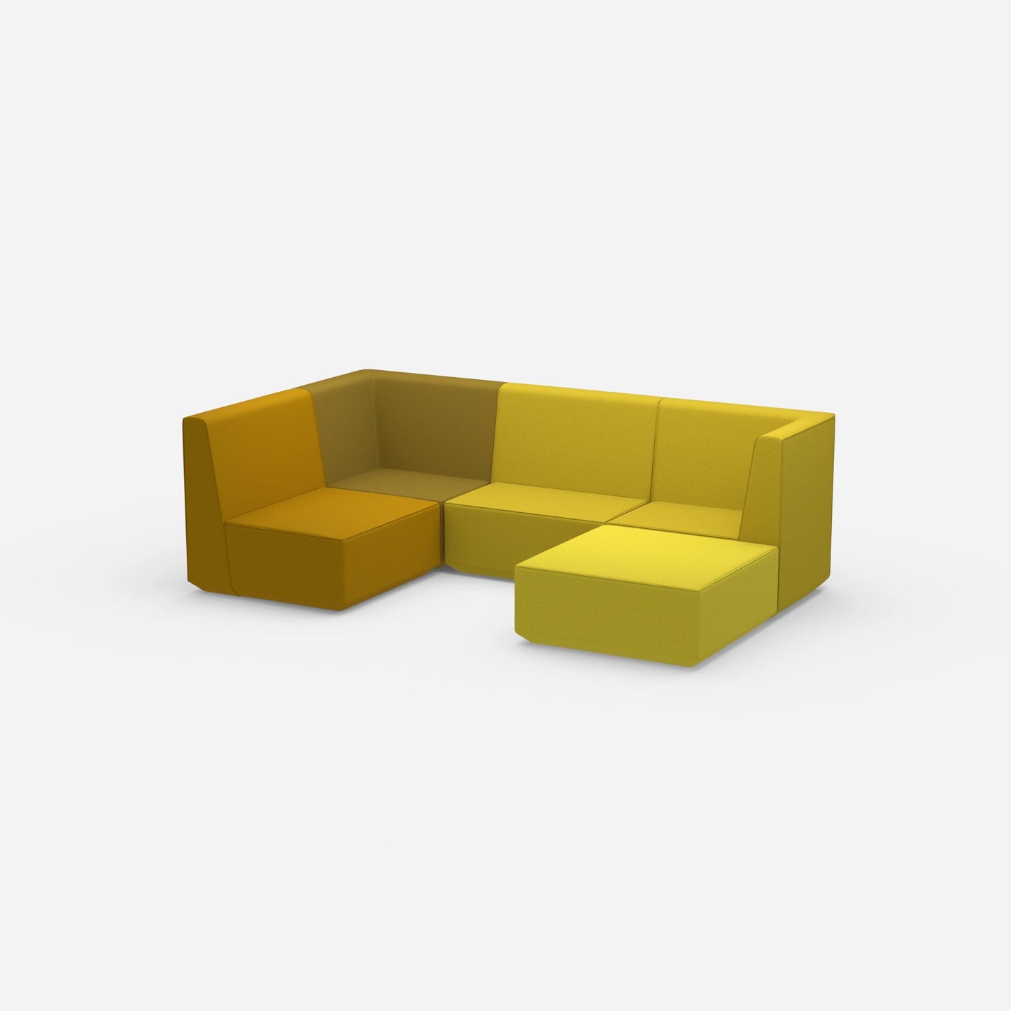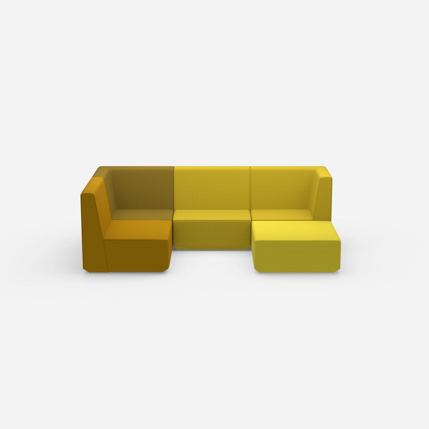 Modulares Cubit Sofa mit zwei nebeneinander stehenden Sitzelementen in kräftigem Gelb und Blau